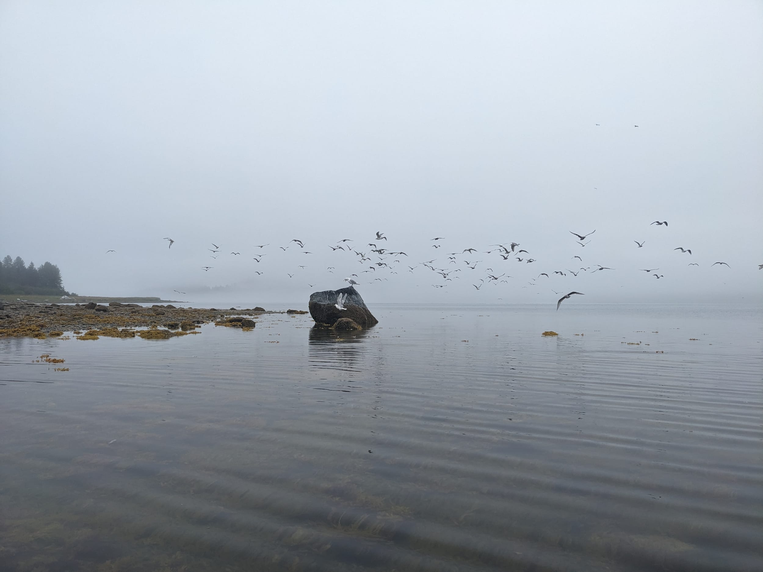 We woke up to dense fog this morning - thankfully we weren’t planning to go anywhere until noon today to catch the outgoing tide. I ate my breakfast pie with coffee - which was amazing - and got cozy and undertook our intentionally very slow start to the morning. Dawn was gracious enough to accommodate a “Charlie and the Chocolate Factory” intro scene and the whole crew got to be cozy together.