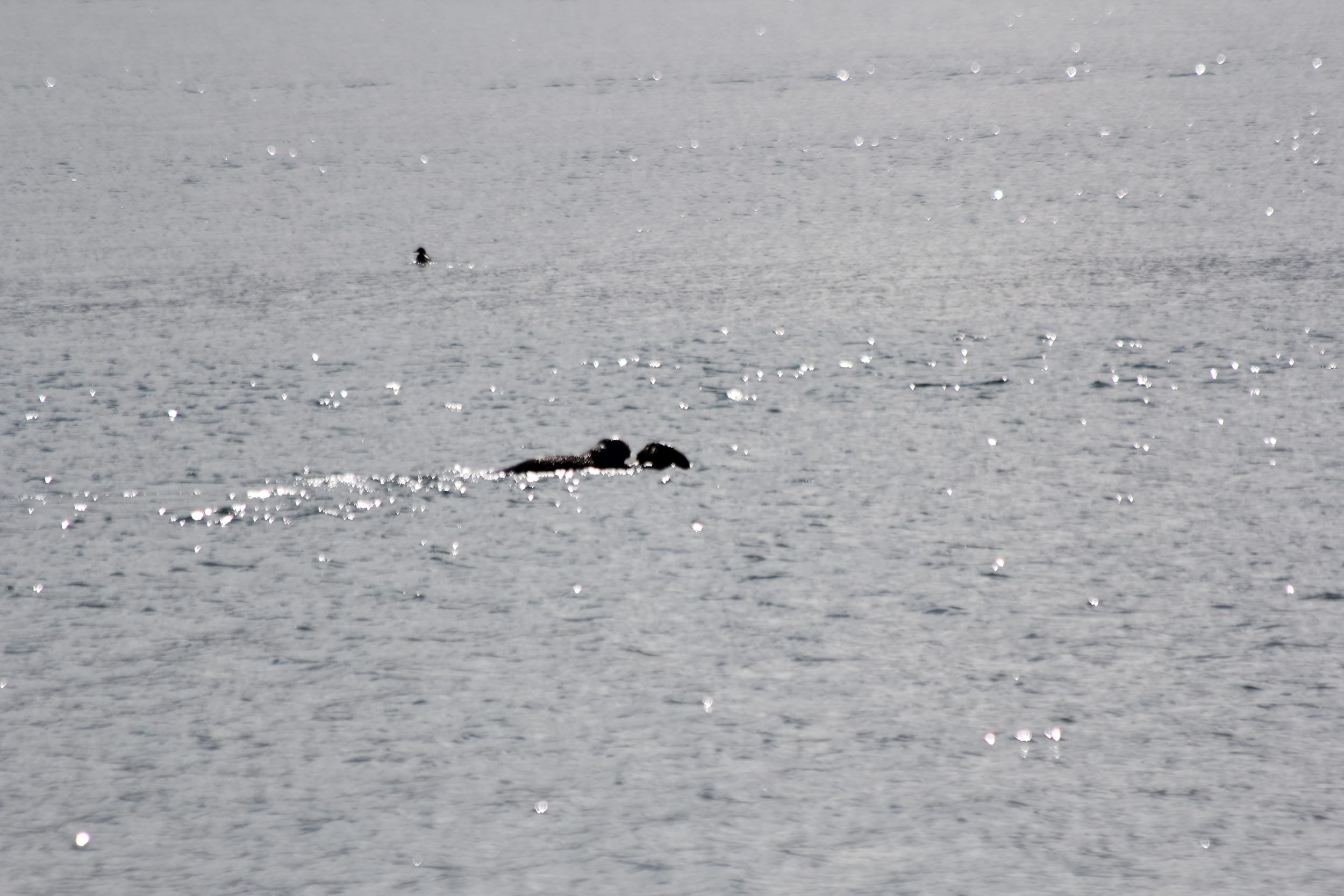 As we continued, we saw a sea otter with a pup on it’s belly. This was the 3rd or 4th time we have seen this, they seem to be much more skittish with a pup so we rarely see them closely. I didn’t get a great picture, but you can kind of make out the pup here.