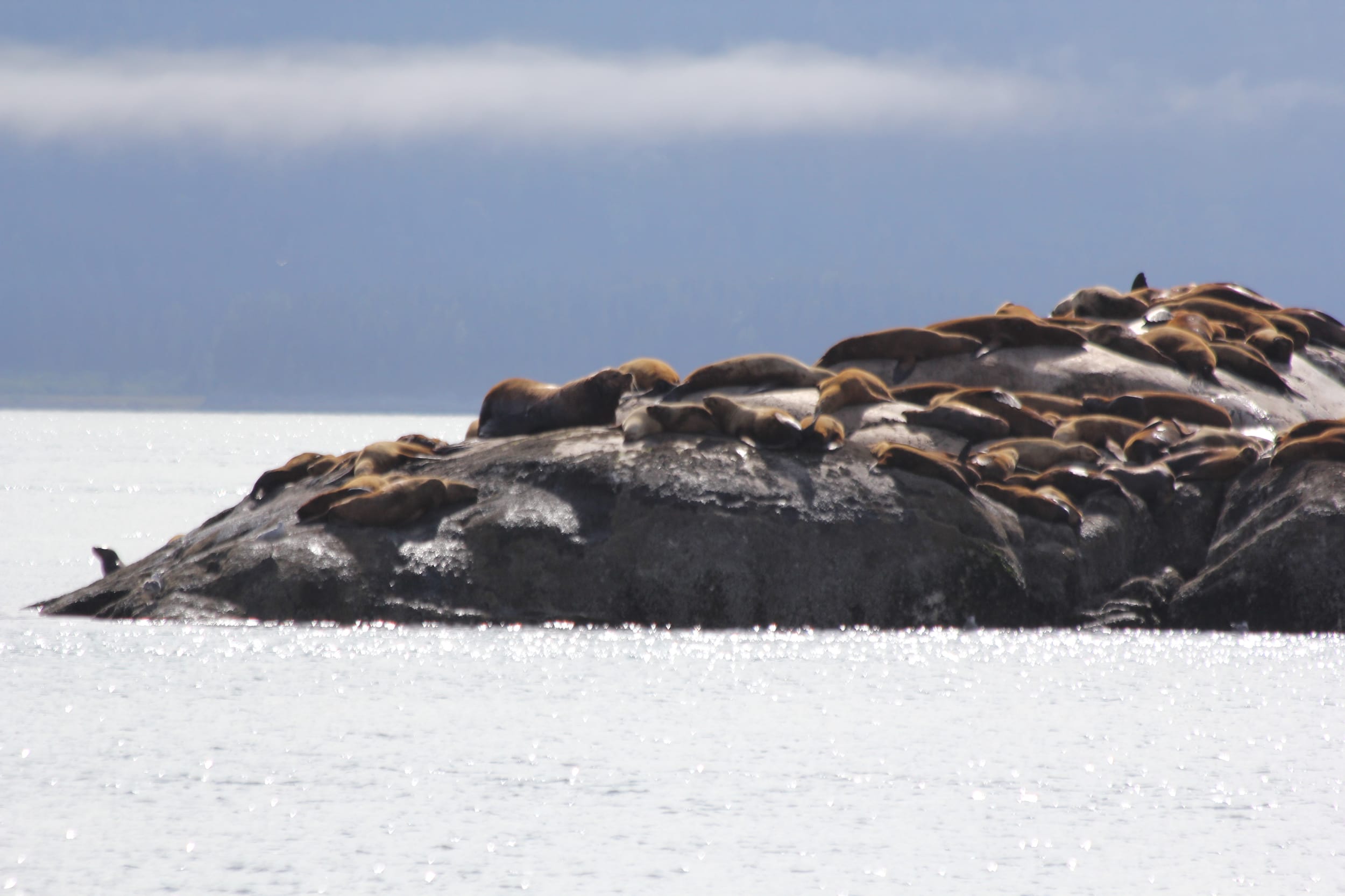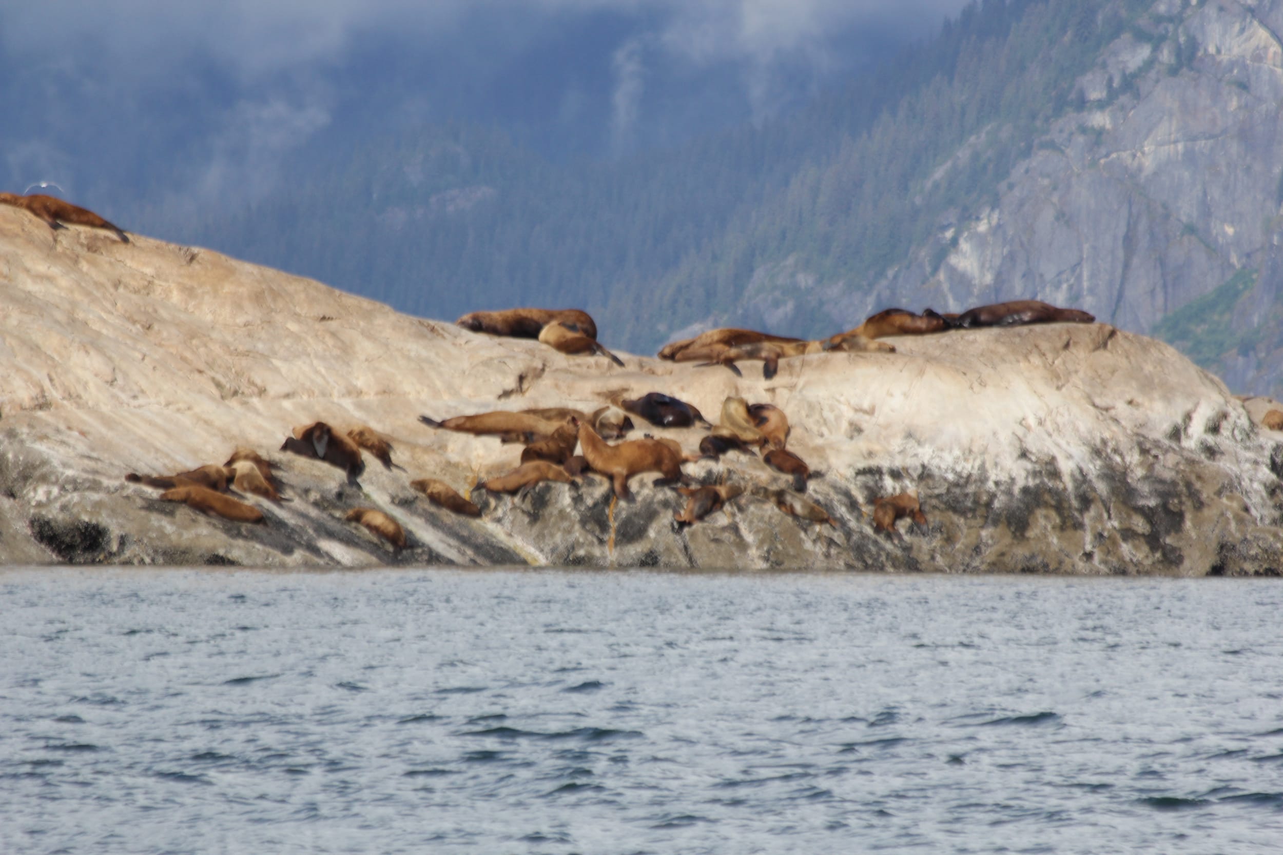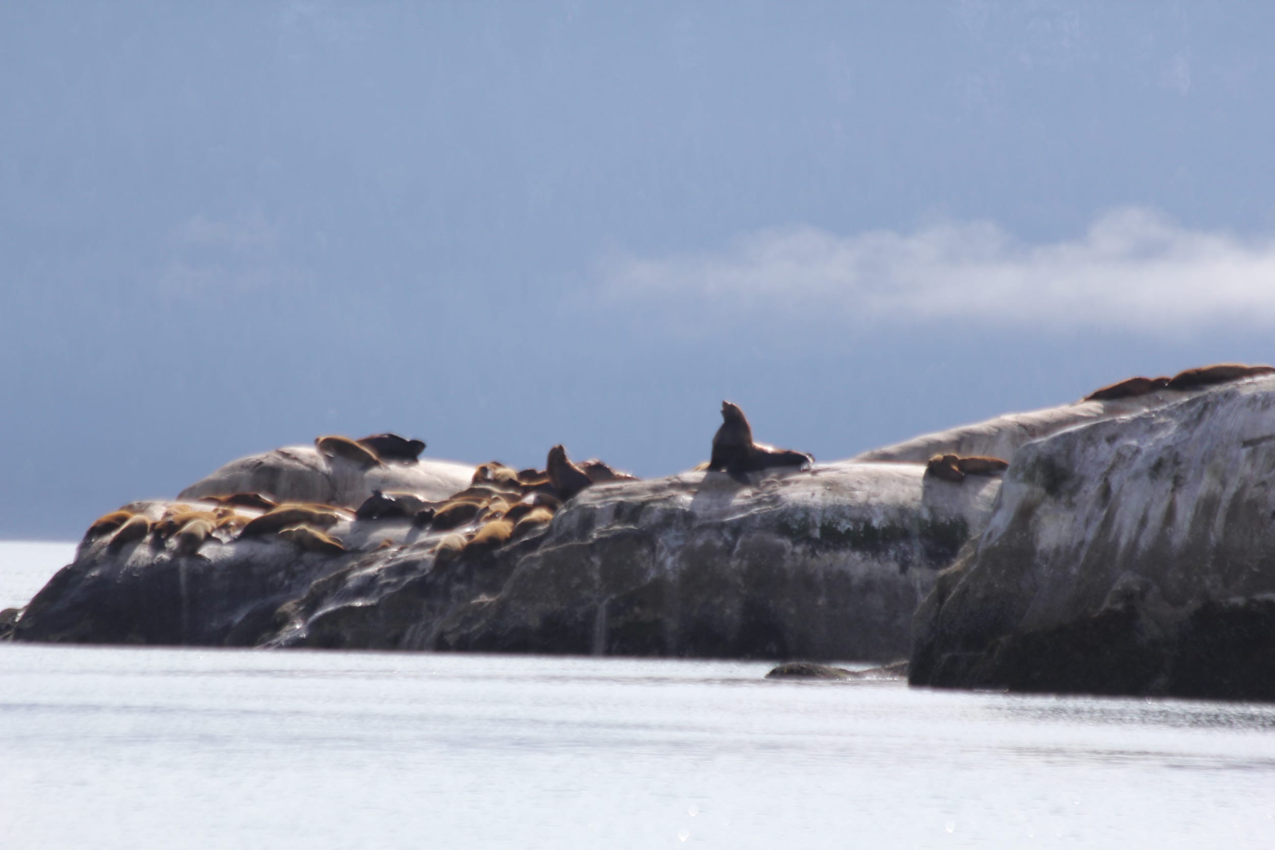 Around the south side of the island, we found the colony of resting sea lions. It was quite the sight - hundreds of them lounging out in the sun on the marble colored rocks. We slowed down to watch them for a minute - and quicky discovered what hundreds of Stellar Sea Lions smell like… Even from 500 feet away. We also got to experience the sounds of these sea lions - the barking, slapping, fighting, and playing. It was quite the multi-sensory experience. These are the things you can’t (and the smell you probably wouldn’t want to) capture in pictures.