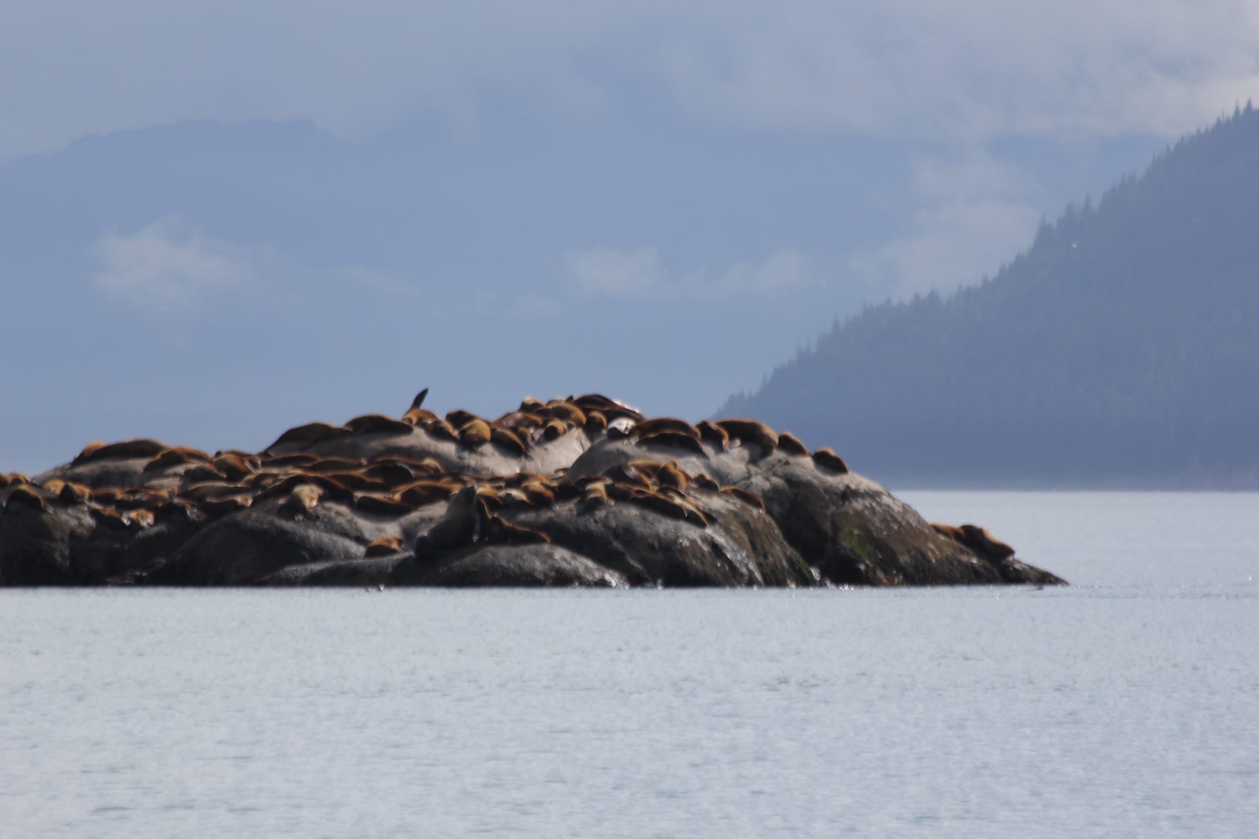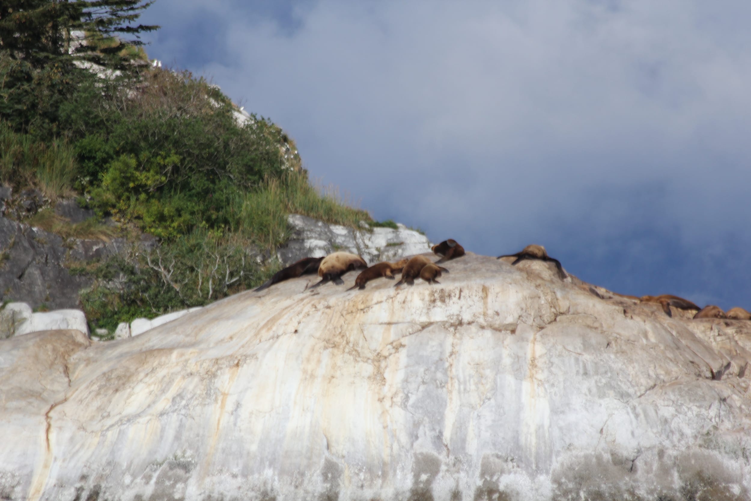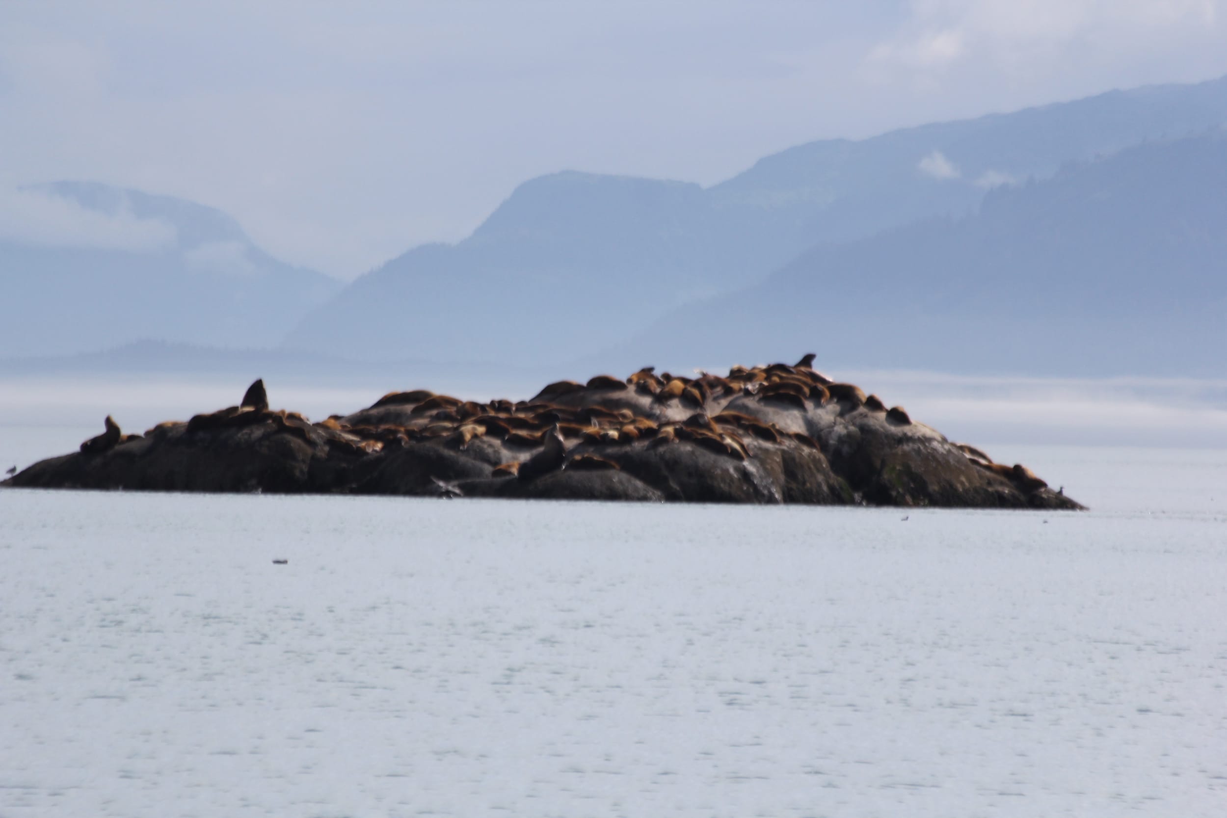 Around the south side of the island, we found the colony of resting sea lions. It was quite the sight - hundreds of them lounging out in the sun on the marble colored rocks. We slowed down to watch them for a minute - and quicky discovered what hundreds of Stellar Sea Lions smell like… Even from 500 feet away. We also got to experience the sounds of these sea lions - the barking, slapping, fighting, and playing. It was quite the multi-sensory experience. These are the things you can’t (and the smell you probably wouldn’t want to) capture in pictures.
