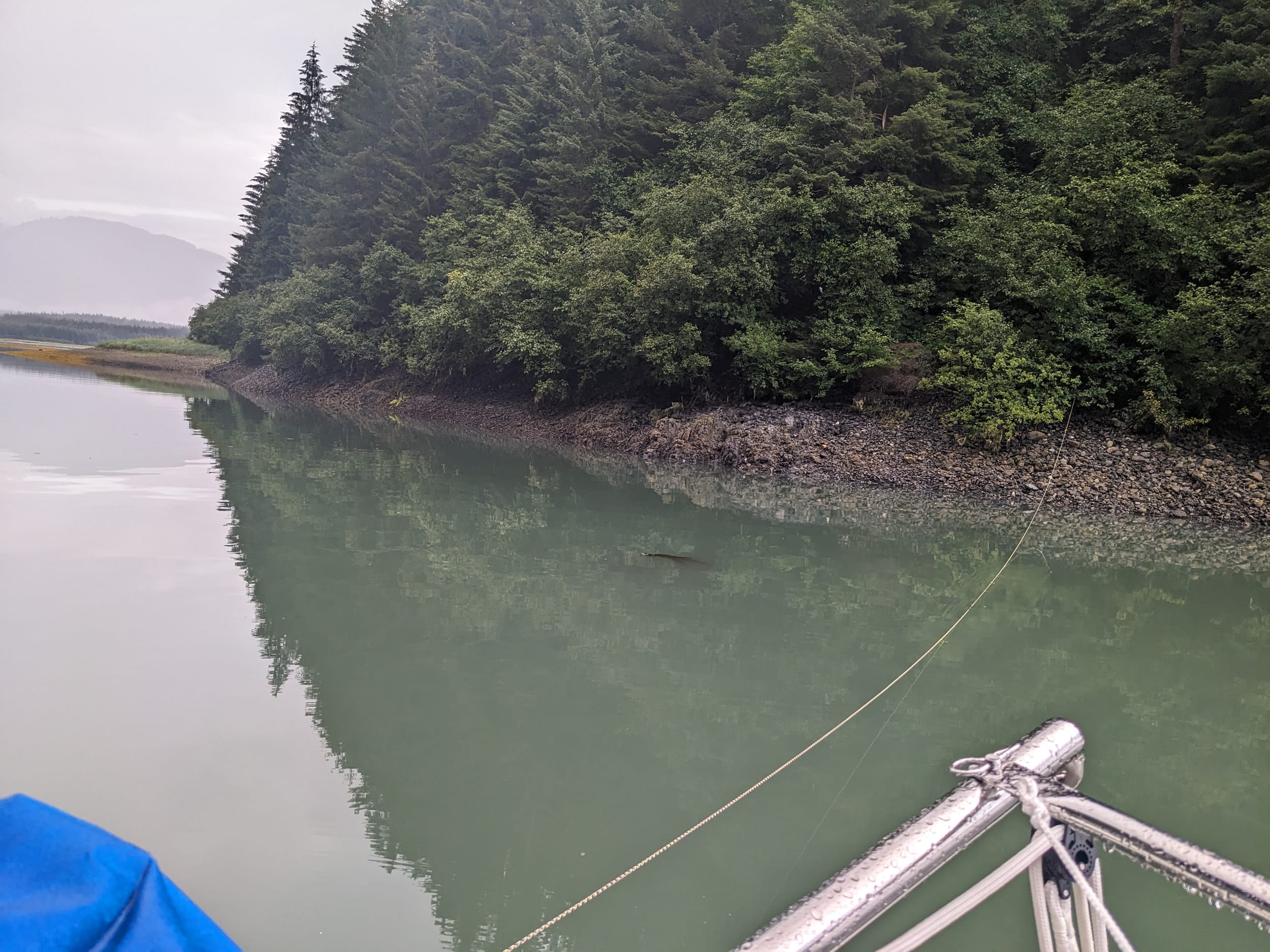 We pulled into our anchorage as the rain really started coming down. We had some aspirations of exploring the cove via dinghy/kayak but the increasing intensity of the rain drove us to the cozy boat instead. With a name like Beartrack Cove, we had hoped to see some bears but I guess they will be waiting for us next time.