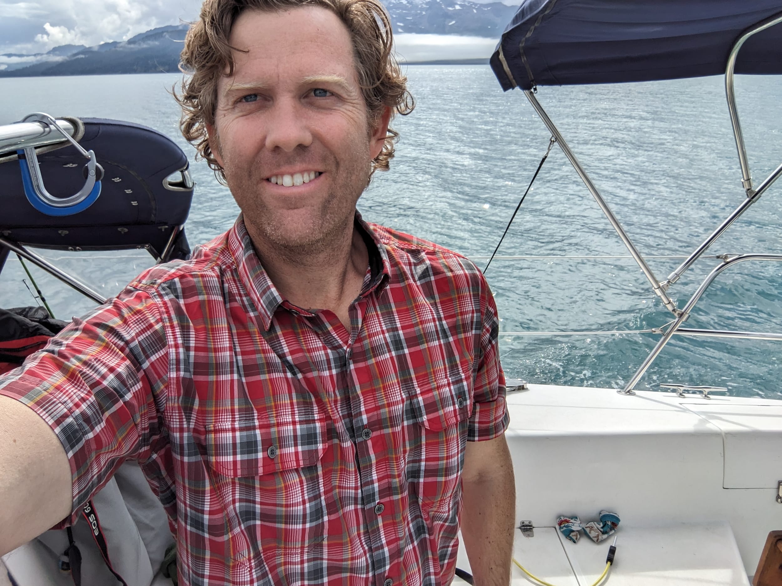 We headed on out of Johns Hopkins Inlet and started to make our way to Blue Mouse Cove - our anchorage for the night. This leg was that weird in between land where there are enough icebergs that you have to be weary, but not enought that you need a bow watch with hooks. It was also really cold, so this called for a new arrragement for our canvas. I unzipped one side of the top and kept the other size zipped. This allowed me to look out for a minute and adjust our course and then step over to the otherside to get the wind protection of the canvas on the other side.