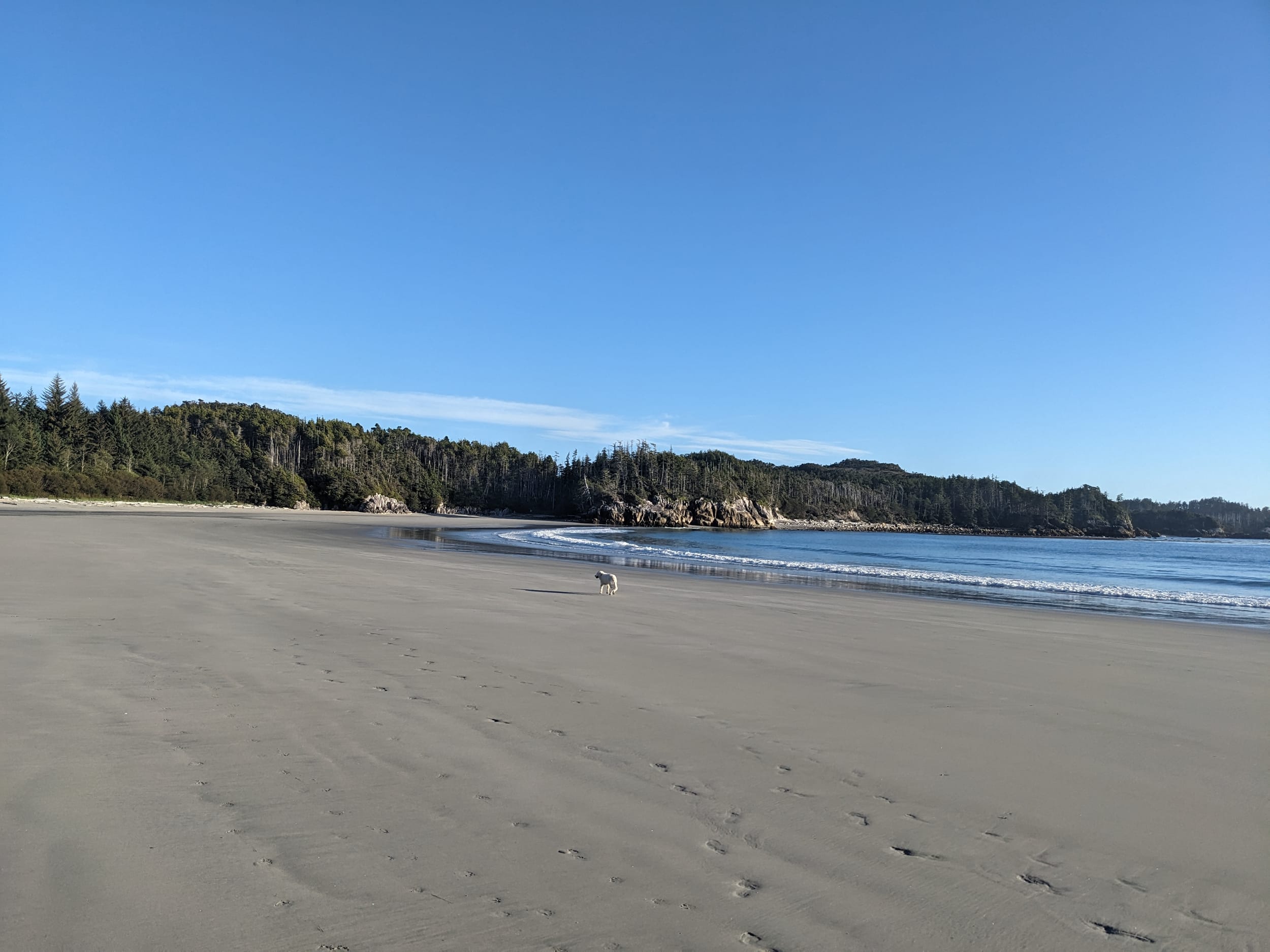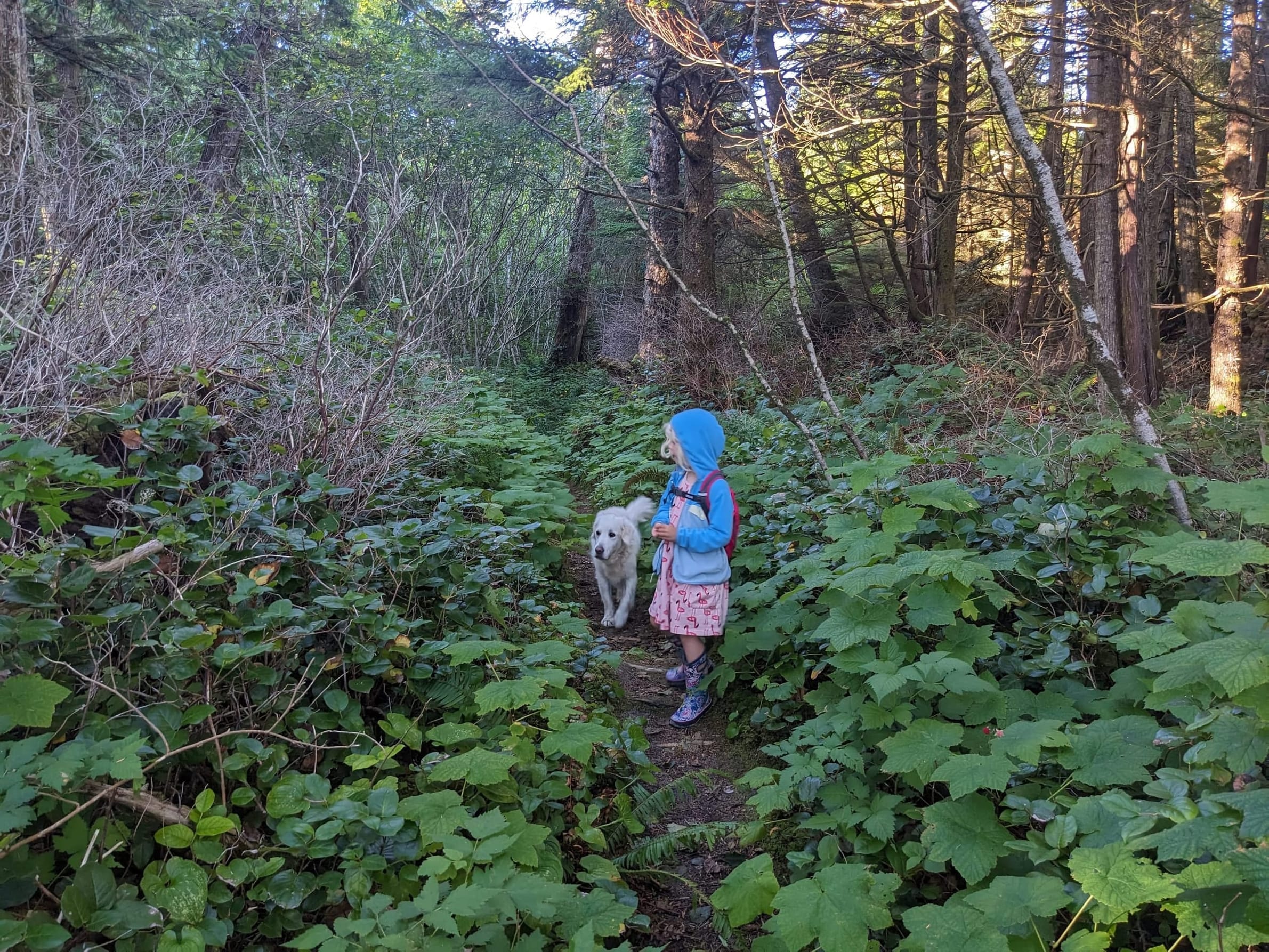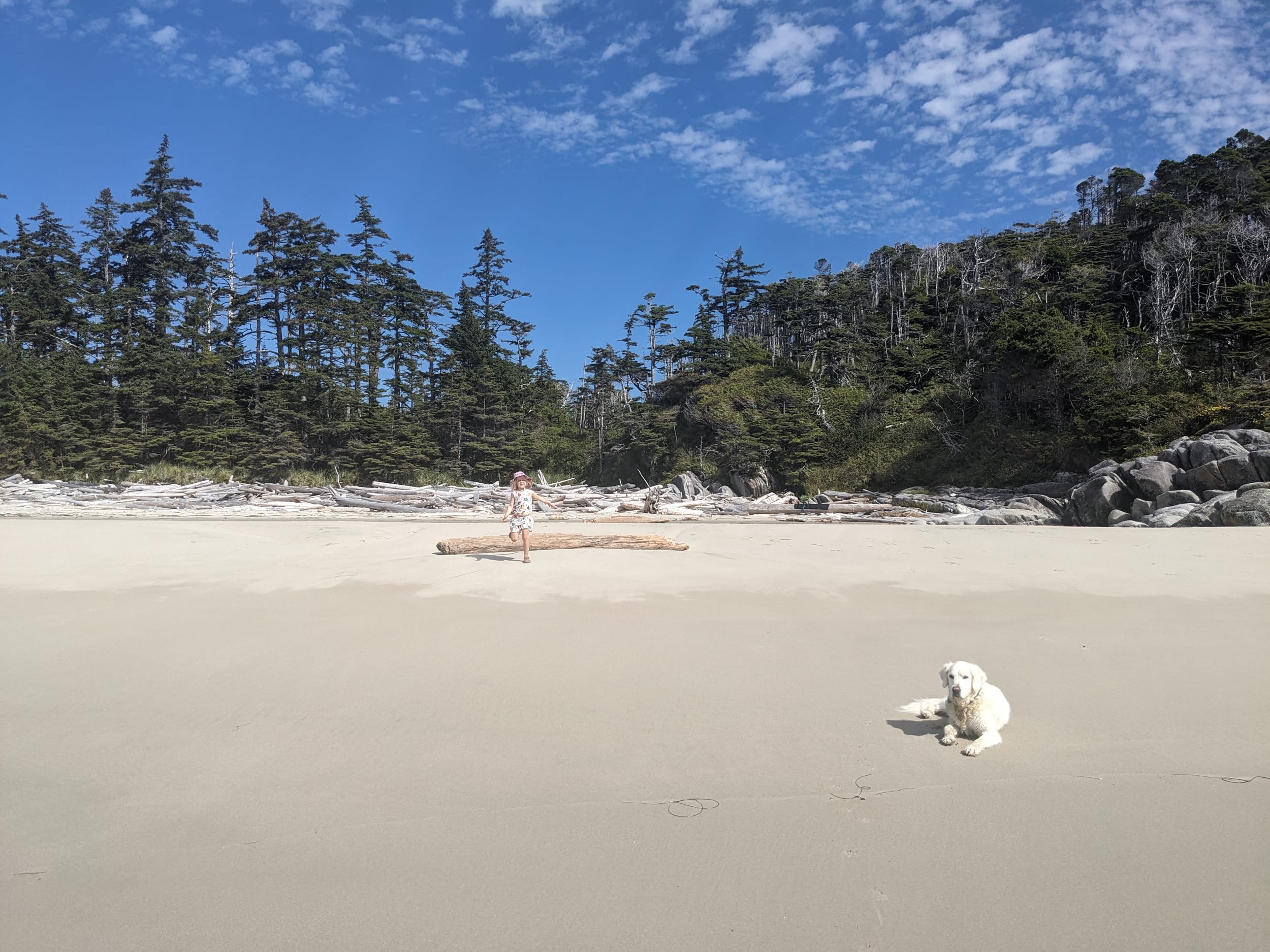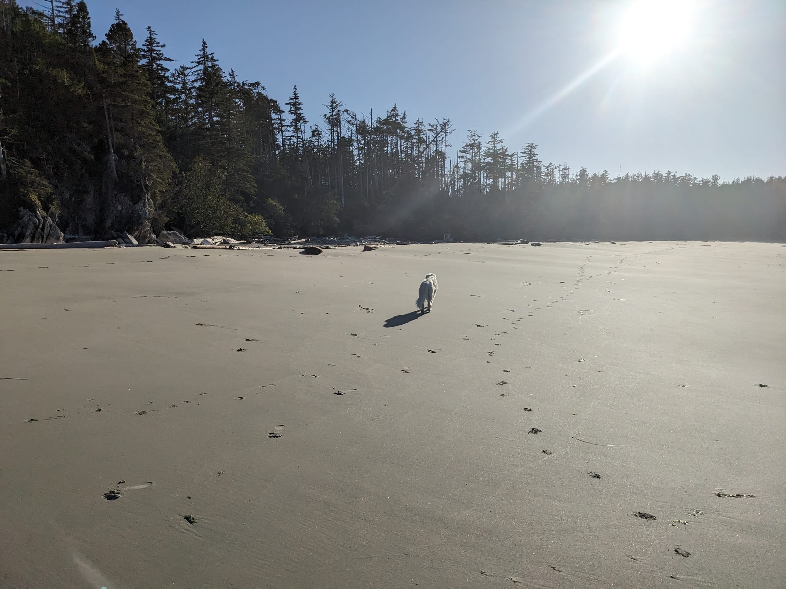 But that’s tomorrow, today we decide to go hiking down to the southern beaches. There are 5 beaches going south and we want to explore them all. Our favorite was horseshoe cove - a smaller beach with a constriction on the entrance that made the beach horseshoe shaped. There was also a small creek that ran into the beach - which was great for Oakley who prefers the freshwater streams to the water we bring along for her.