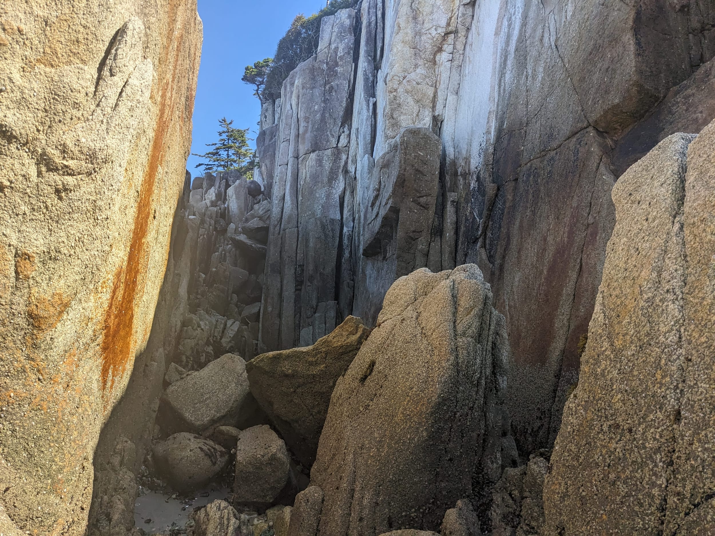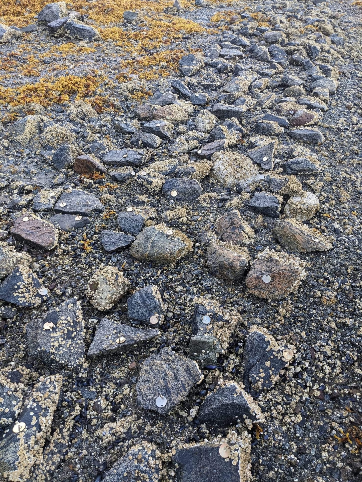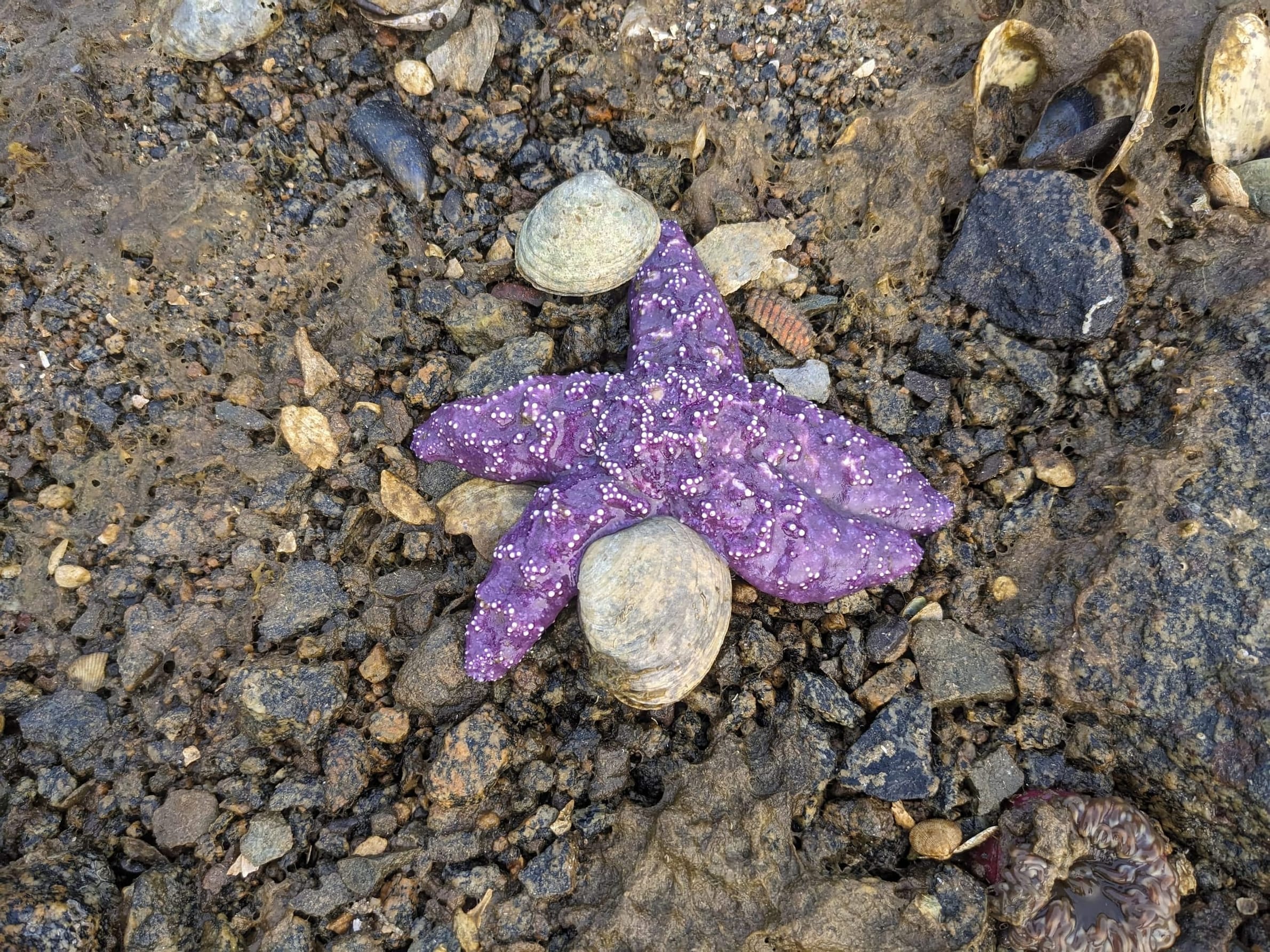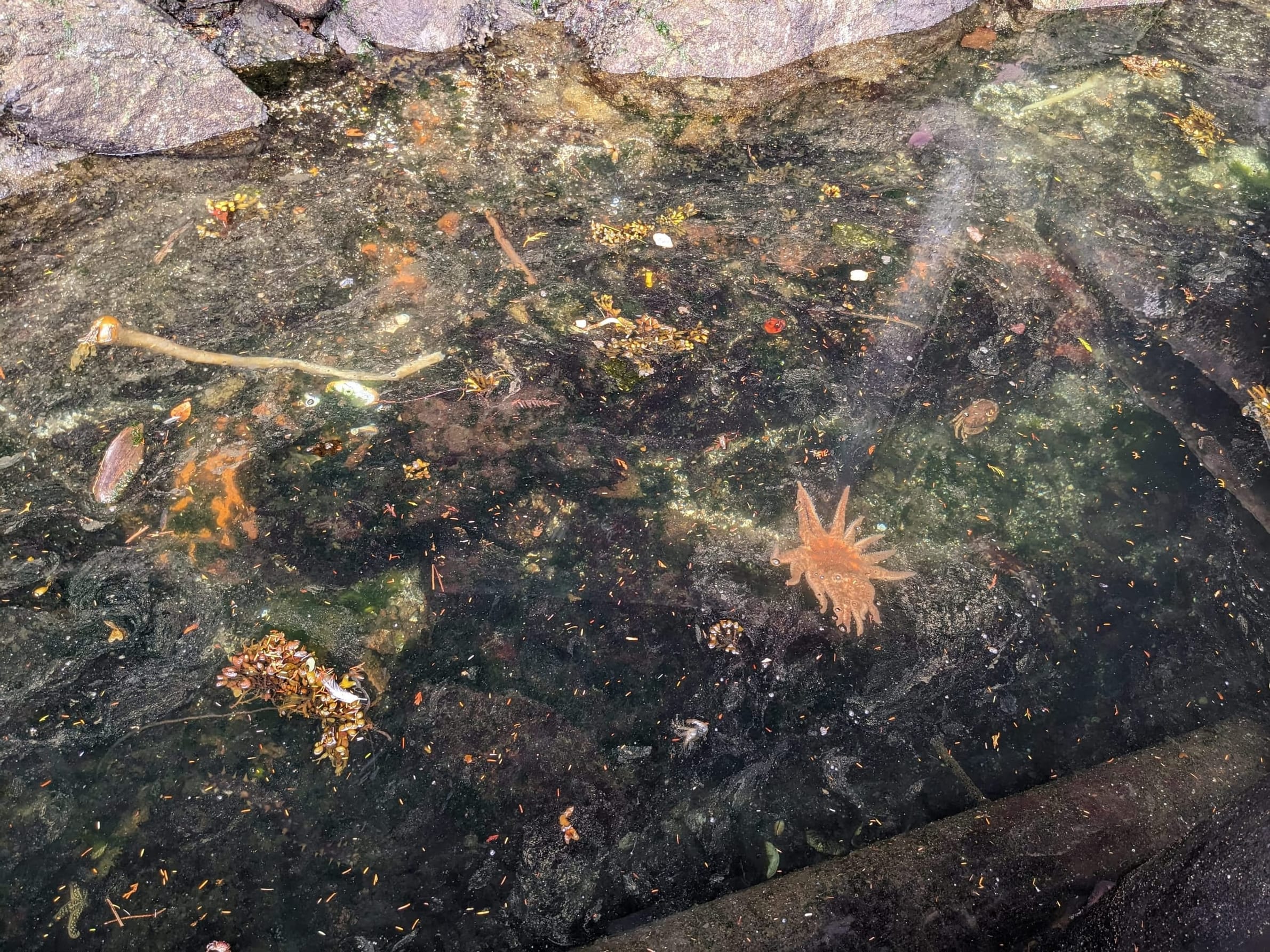 We were ashore for probably 5 minutes before the fog finally started to lift and we could see the boat clearly again. The tide was way out and Angela had a grand time tidepooling - so much so that I had a hard time pulling her away 45 min later. Here’s a few quick pics from the morning.