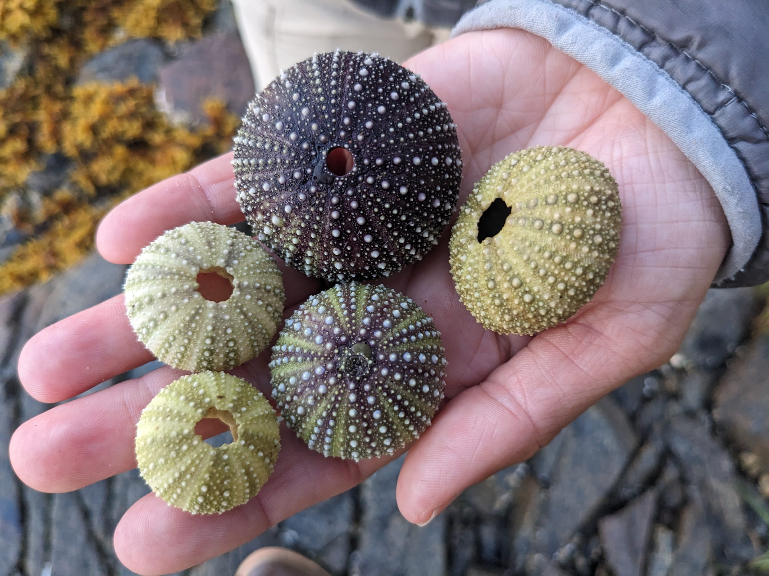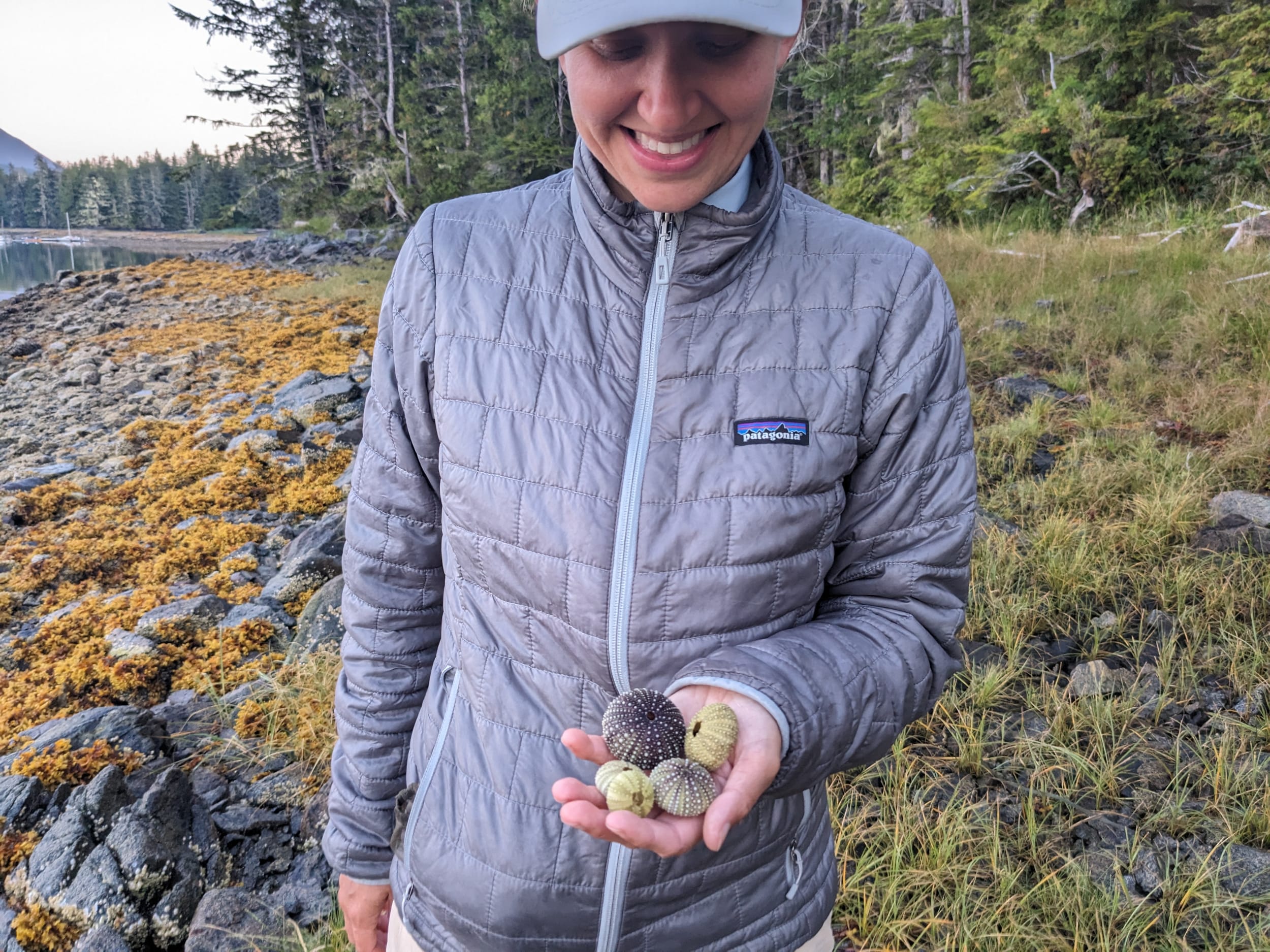 Lizzie cove was a fine place to stay for the night, it appears that there is a public float but with calm seas we opted to anchor in a small bay on the west side of the cove. We had a fun walk ashore - mostly exploring the remenants of prior human habitation. I don’t know this cove’s history, but there was clearly something here that is long gone. Angela was on a sea urchin skeleton hunt after her find last night and she found 6 beautiful shells of all different colors and sizes - they were quite beautiful.