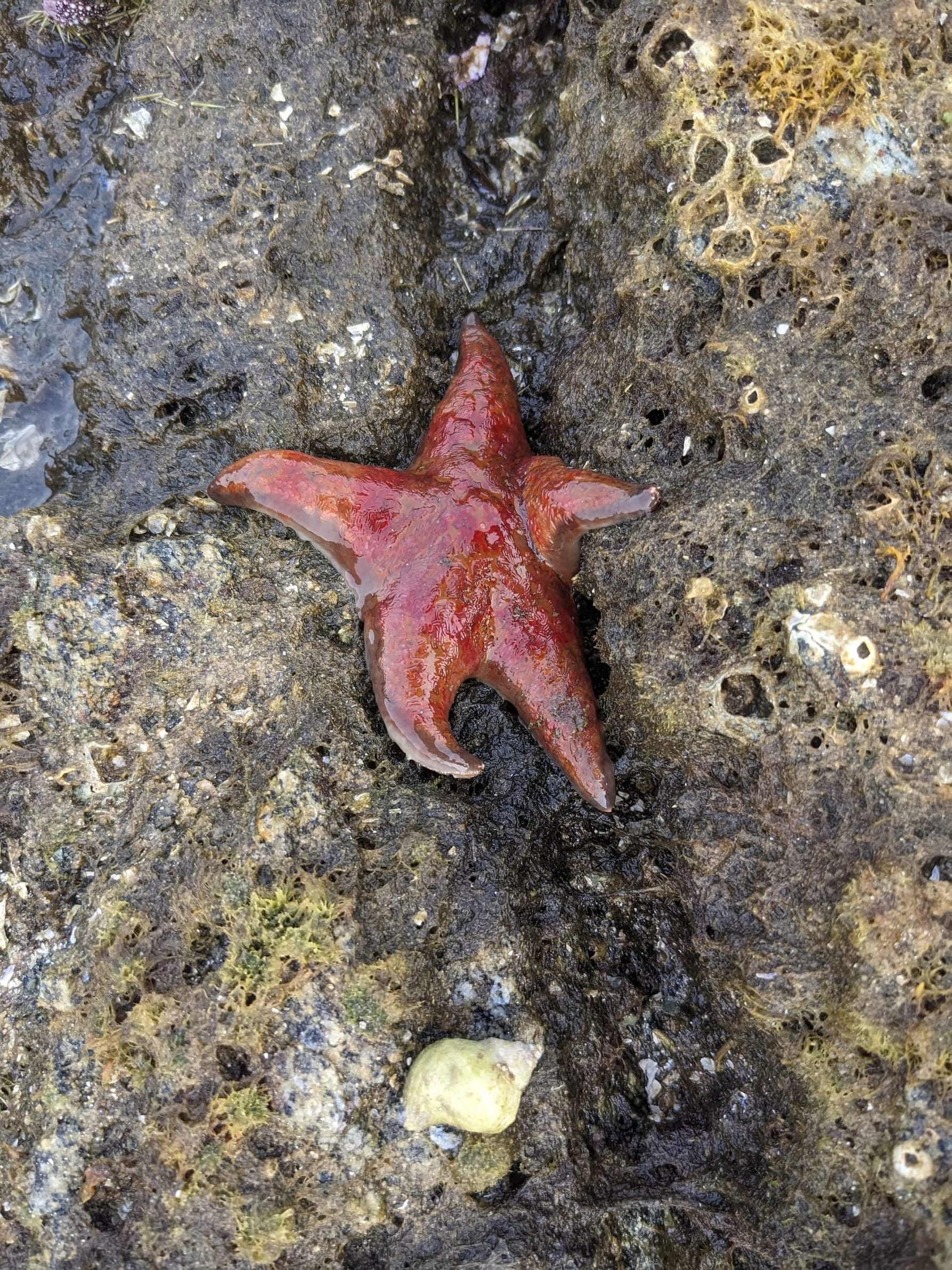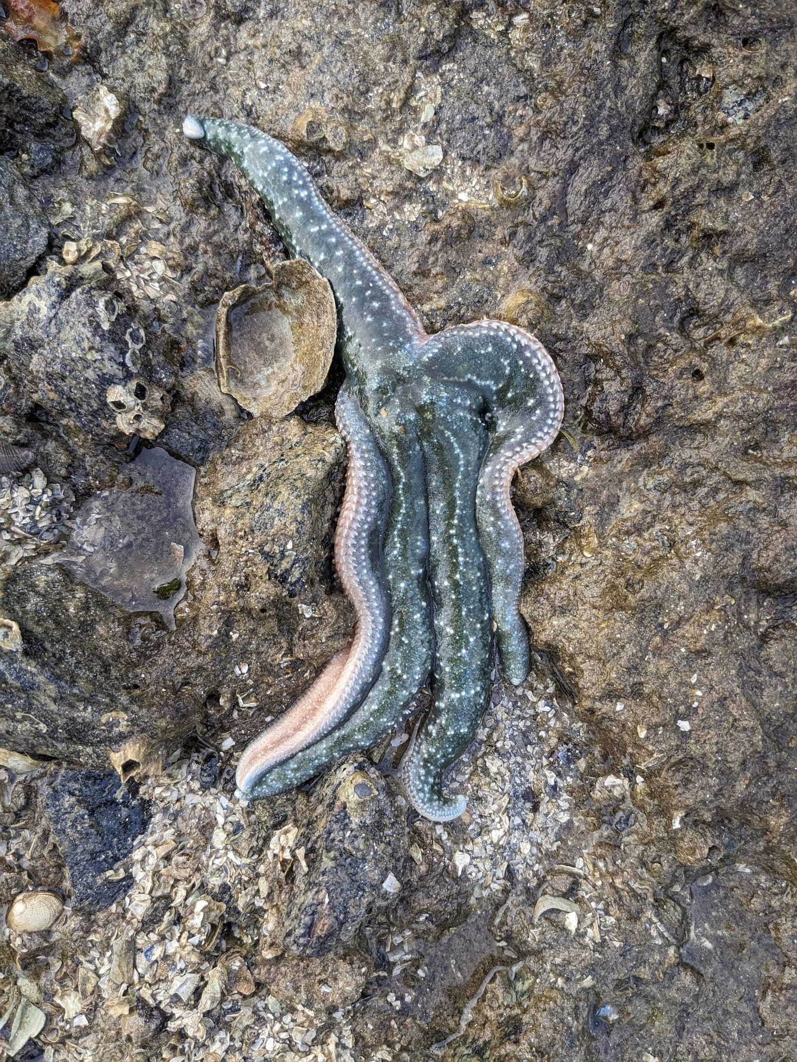 The dock was full of life at the low-low spring tide. We saw a number of sea invertabrates that we rarely see - the rose starfish, sea cucumbers of different types, and several scale/pile worms. Really only exciting to the coastal invertebrates enthusiast - which it turns out all of the Woodard family has become…