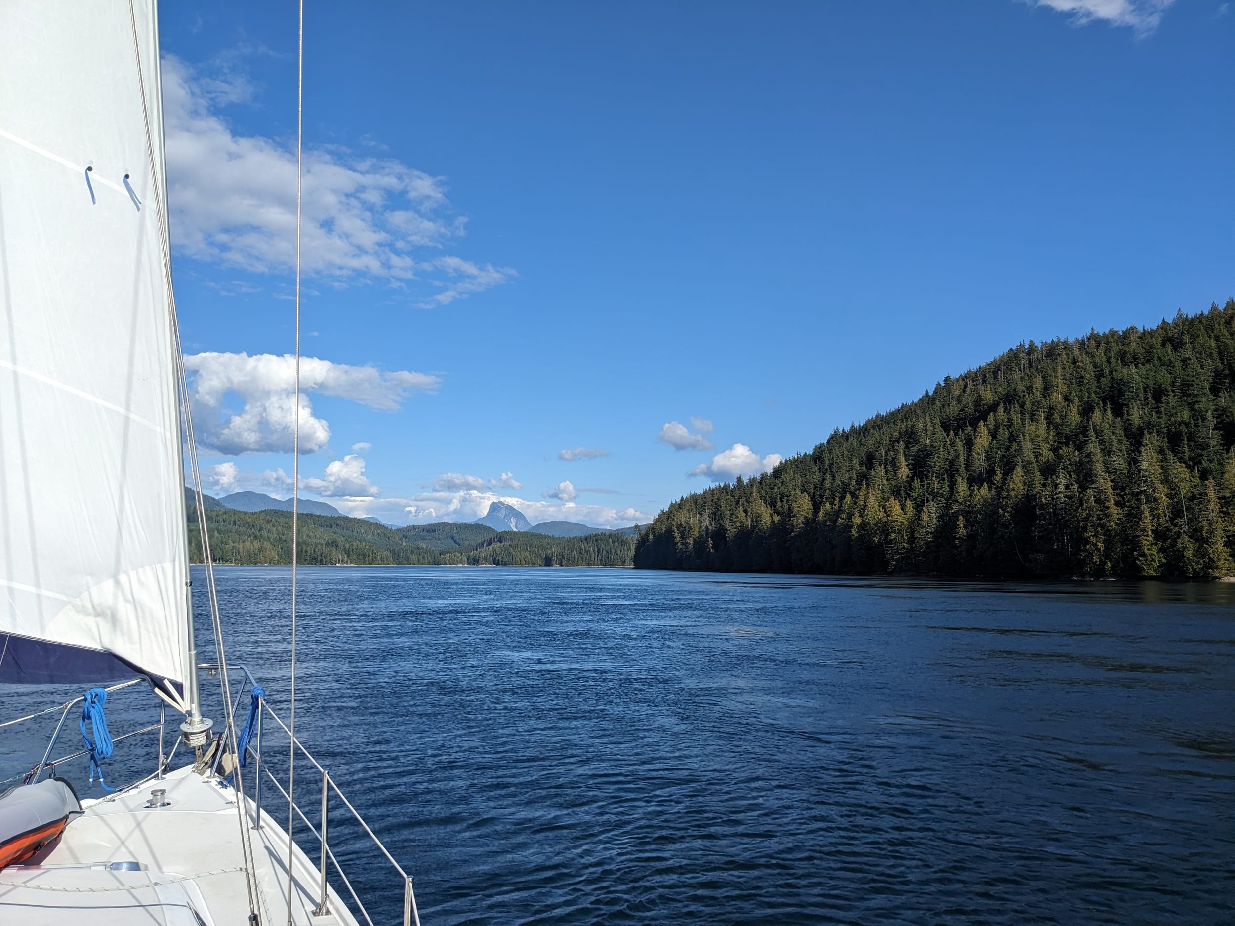 At around 10:30a, the wind finally picked up - about 7 knts over our starboard - which made things much more comfortable and Sara’s stomach started to settle. It wasn’t until about 12:30p that we made it behind Keats island and seas became flat again. We made pretty good time once the wind picked up, about 6 knts, and we made it into Port Hardy by 3p.