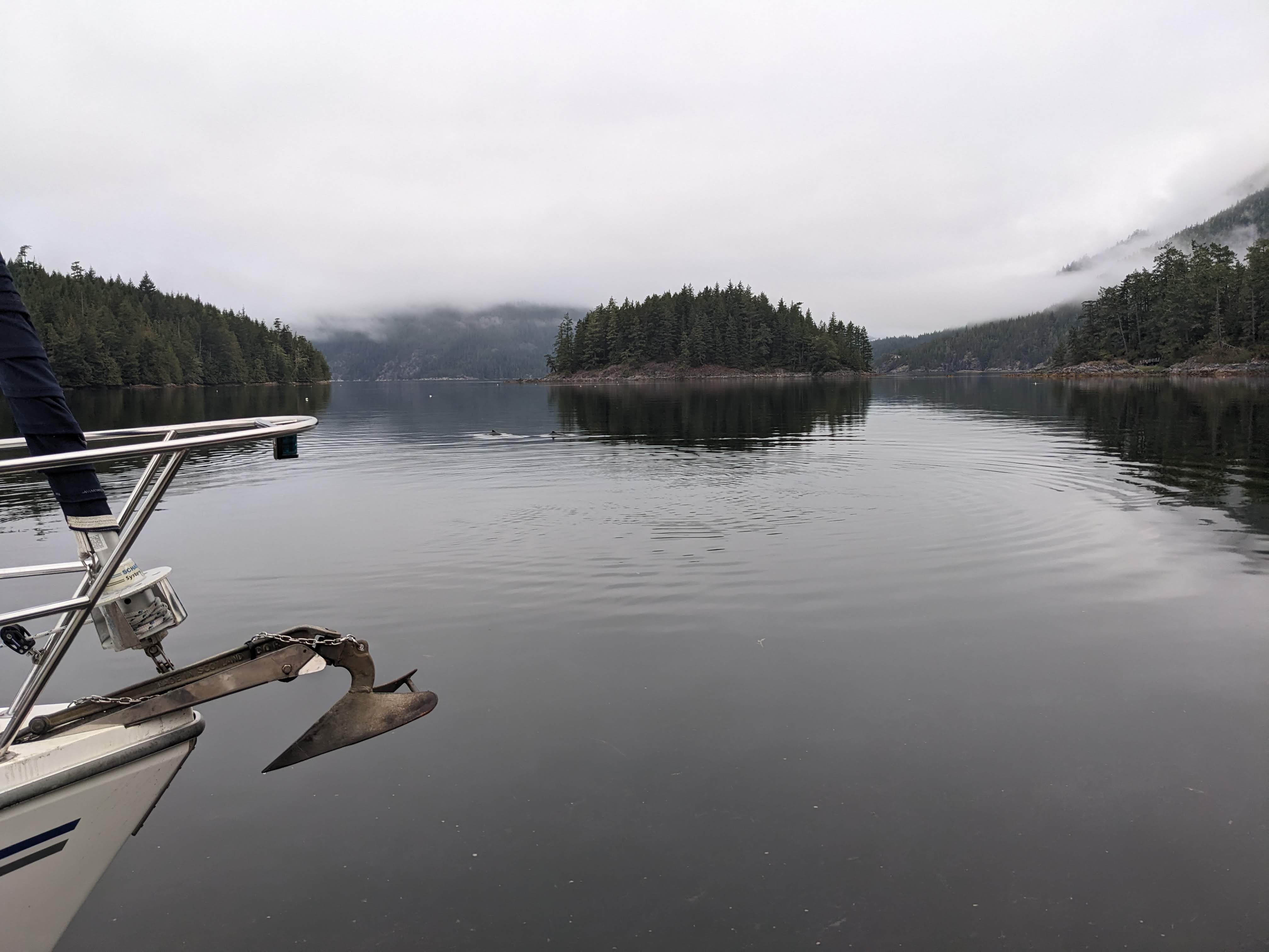 We headed out around 2p - a very late start. We had 30 nm to go today, so with a bit of luck we would get there just before sunset. Our route took us through Blackfish Sound - a well known place for seeing Orca due to the currents trapping salmon there. We didn’t see any Orca (despite Sara and my desperate pleas), but we did see some very active humpbacks breaching, tail flaps, and fin flaps.