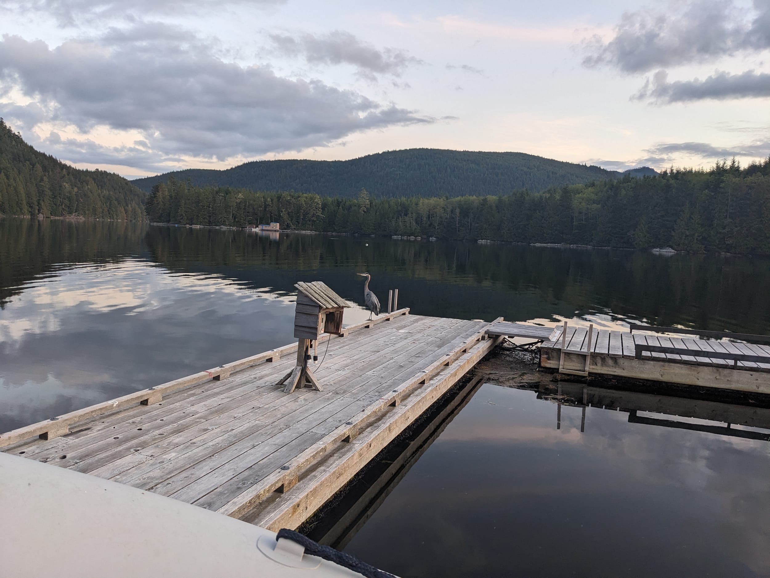 Just as we were pulling out, a heron landed on the dock and some porpoises came right by the dock to say farewell. Just a crescendo to the lovely experience.