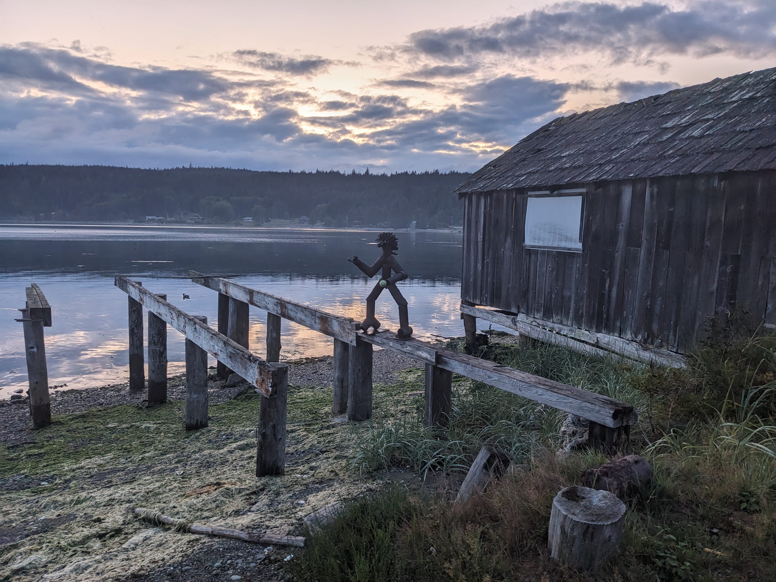 Cliff (from Oasis) gave us a quick overview of the town - apparently everything in town is a co-op. This is a left over from the town’s founding - Finnish miners from Vancouver left to start a utopian (Marxist) community and founded Sointula. The socialism part didn’t work out super well - but the community esprit-de-corp remained, including a coop grocery, hardware, coffee shop, etc. All of the buildings and public spaces were impeccability maintained and the people were super friendly. We bought dinner (a take home and bake thing) and unfortunately the grocery store was closed so we had to come back at 9:30a the next morning to stock up. There was a hike you could take out to Bere point where apparently the Orcas frequent to rub themselves on the pebble beach. Sara and I decided to take this one on - 6 miles, not a small hike for the little lady.