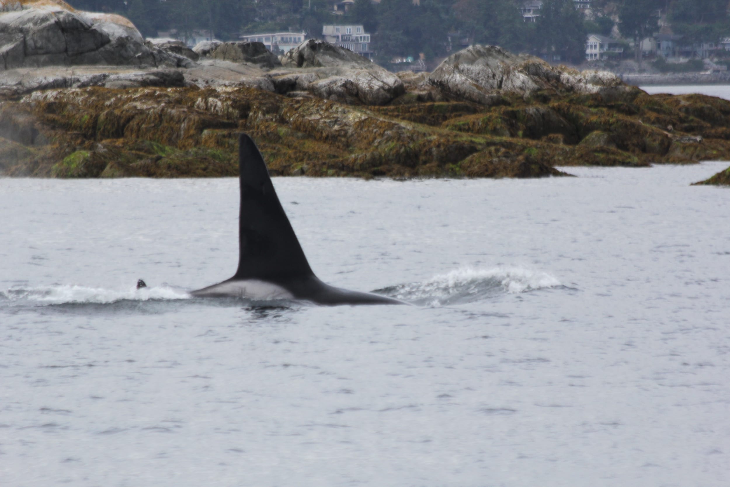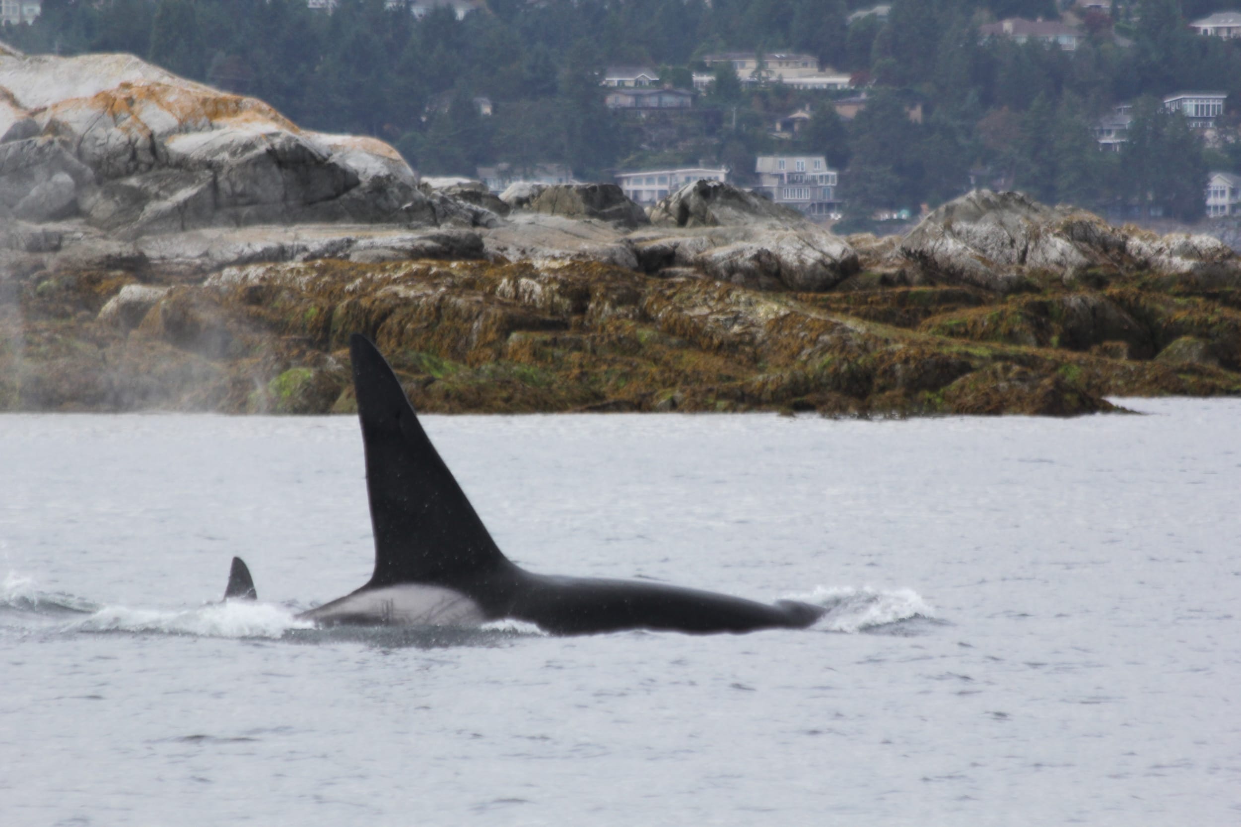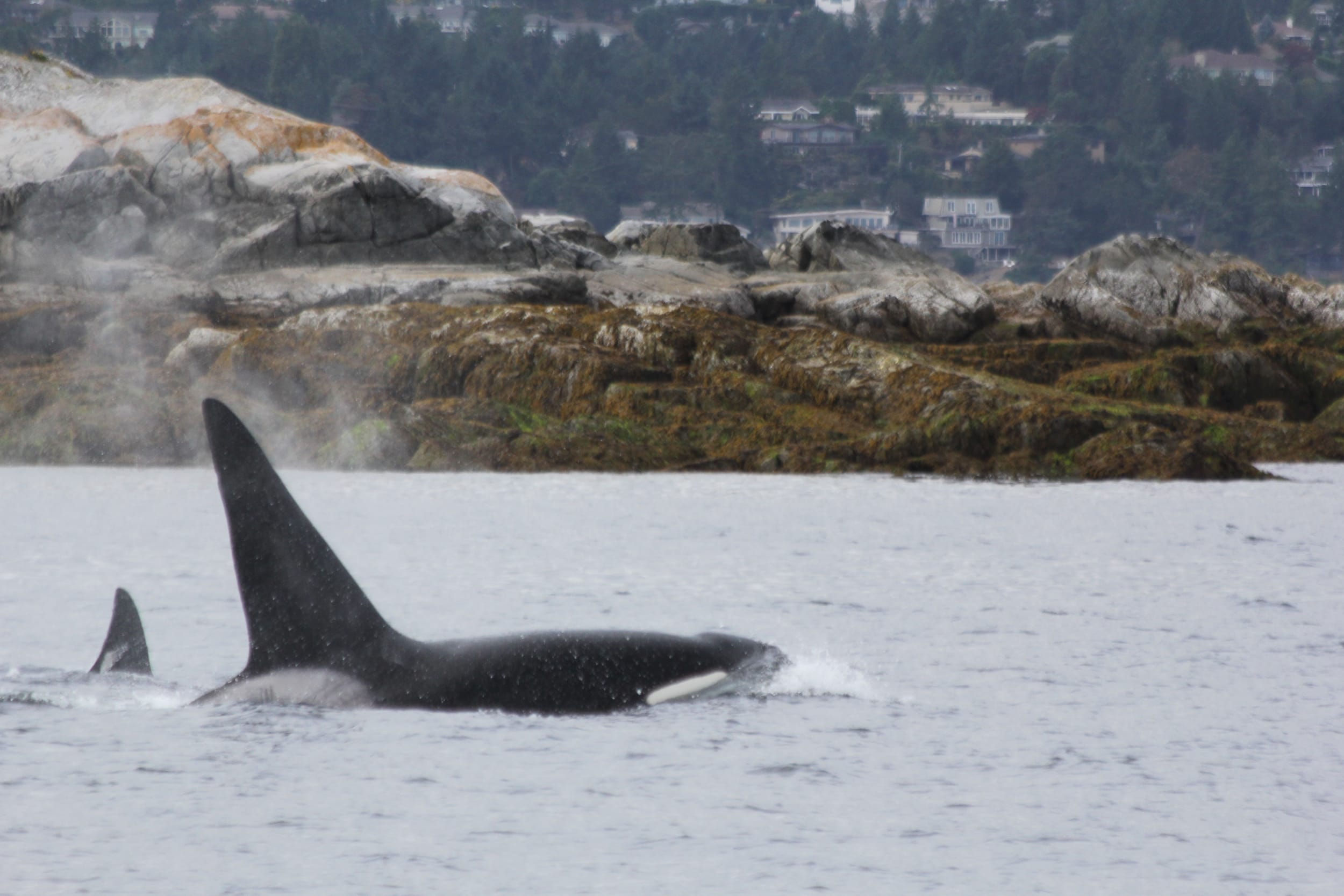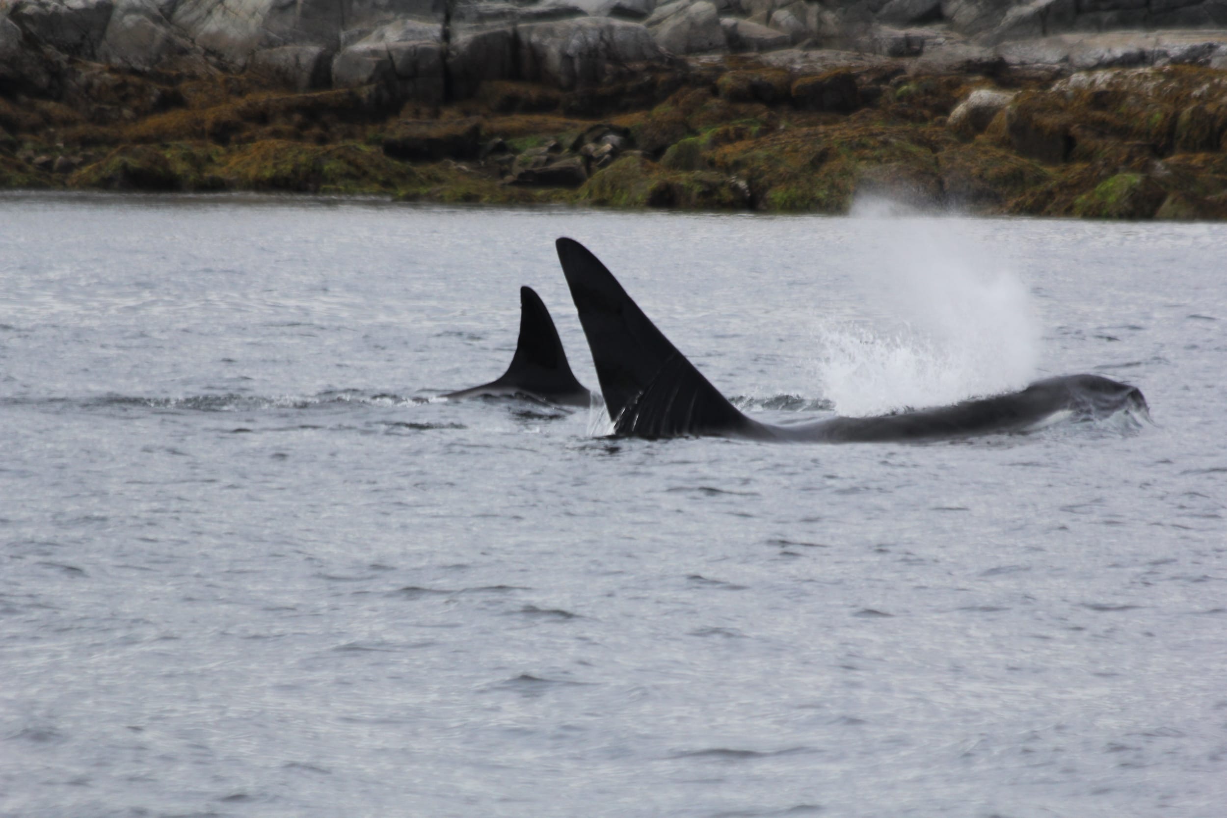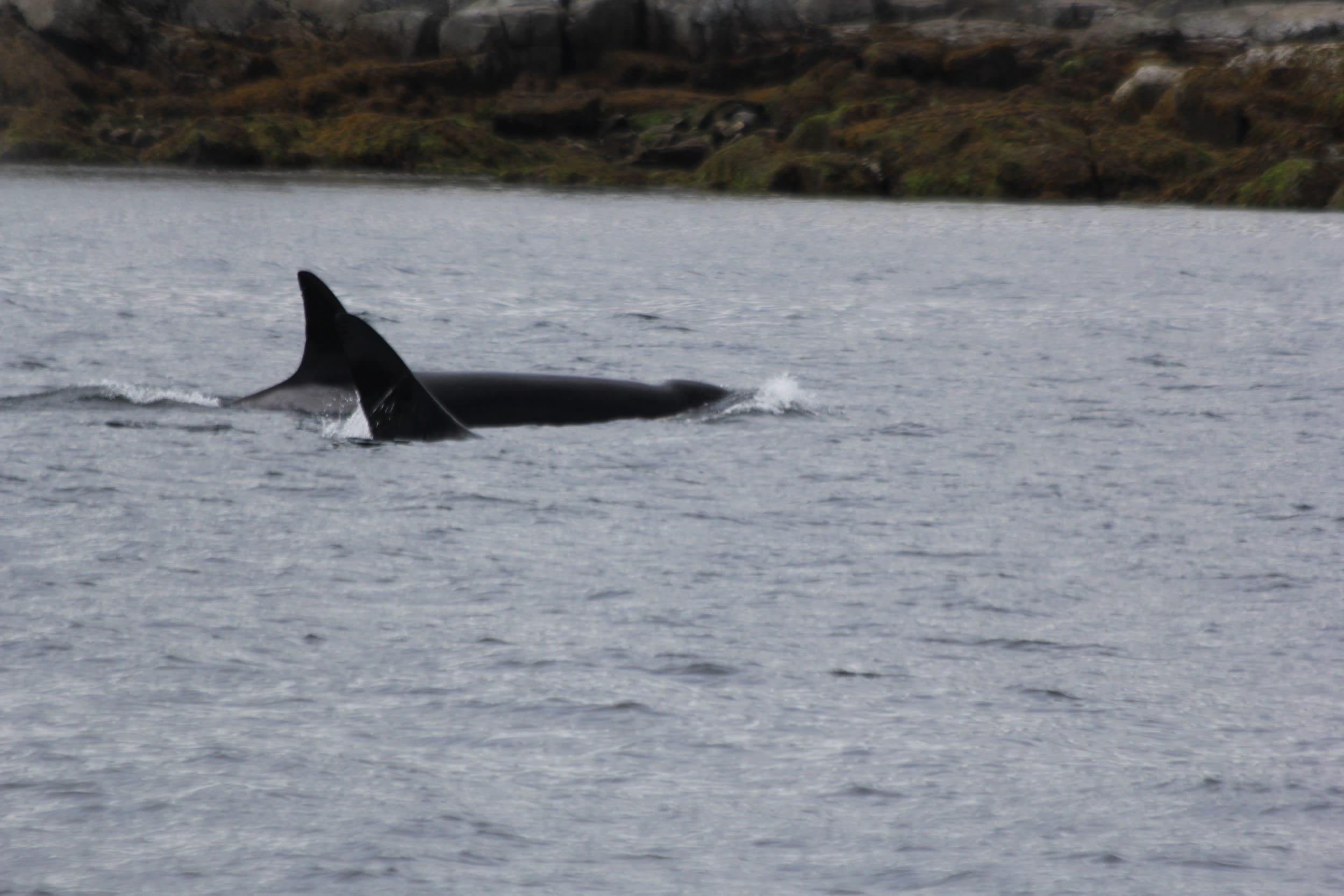 Not long after we passed by the training ground, we saw Orcas! They were just inside of a small island and they swam right up to us. We counted 6, but there may have been 7 or 8. At least three looked like juveniles. Very cool to see them since we have been so deprived of Orcas on this trip - and to see them so close!