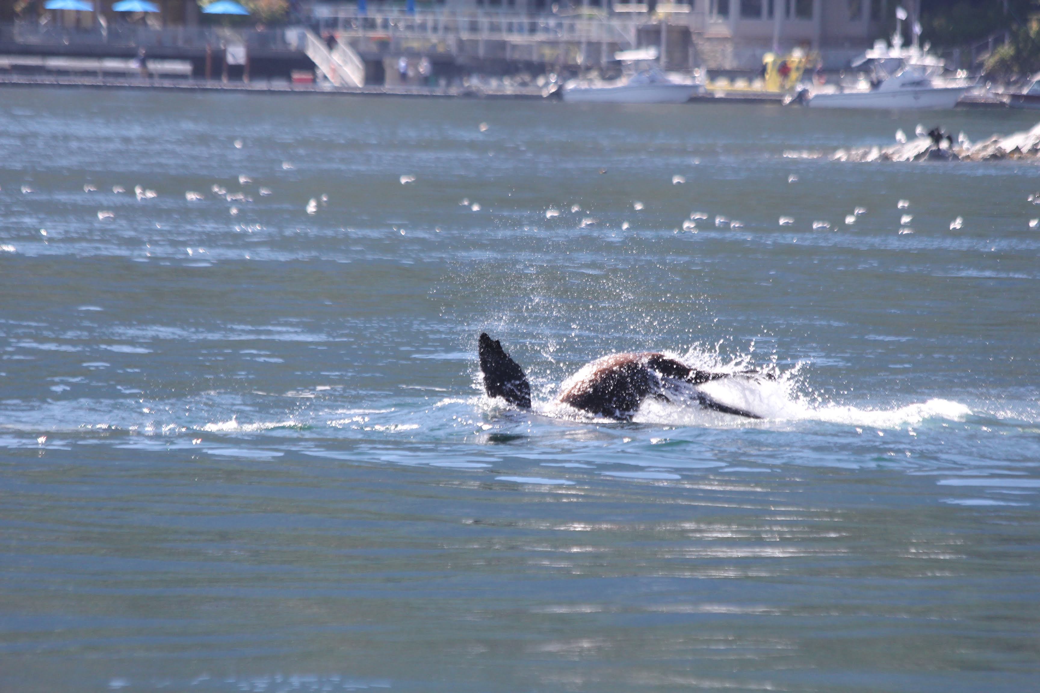We left Cortes early, aiming to finish the 45 nm to Garden Bay (Pender Harbour) in one day. We had a great first couple of hours - great wind at our stern. Around 10a, the wind flipped and we had a head wind all the way to Westview - our lunch spot. Right before we arrived at Westview, we saw some very active whales - fin slaps, fluks and a few breaches.