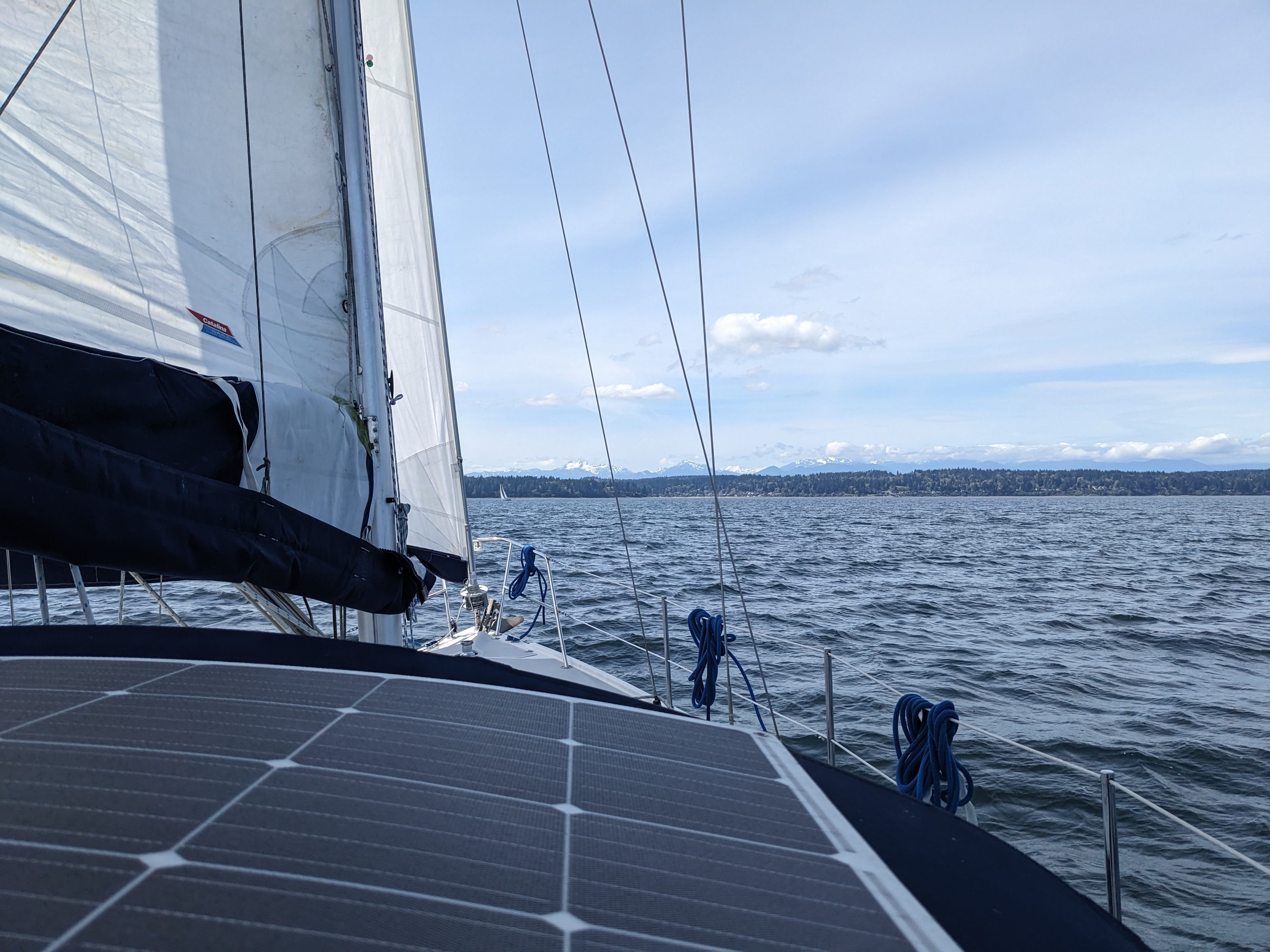 Sara had her Spring break last week and we decided to take a very low key sailing trip for the week. Our original plan was to sail up to the San Juan’s for the week, but the combination of inclement weather, small craft advisories during 2 of the 5 days, and other commitments had us put that plan on hold for the actual summer. Instead, we just bumped around the Puget Sound for the week. On the plus side, we had lots of wind and we able to sail for all of the trip (except for the few minutes for docking and undocking). It felt really good to be sailing given how little we did on the Alaska trip last summer.