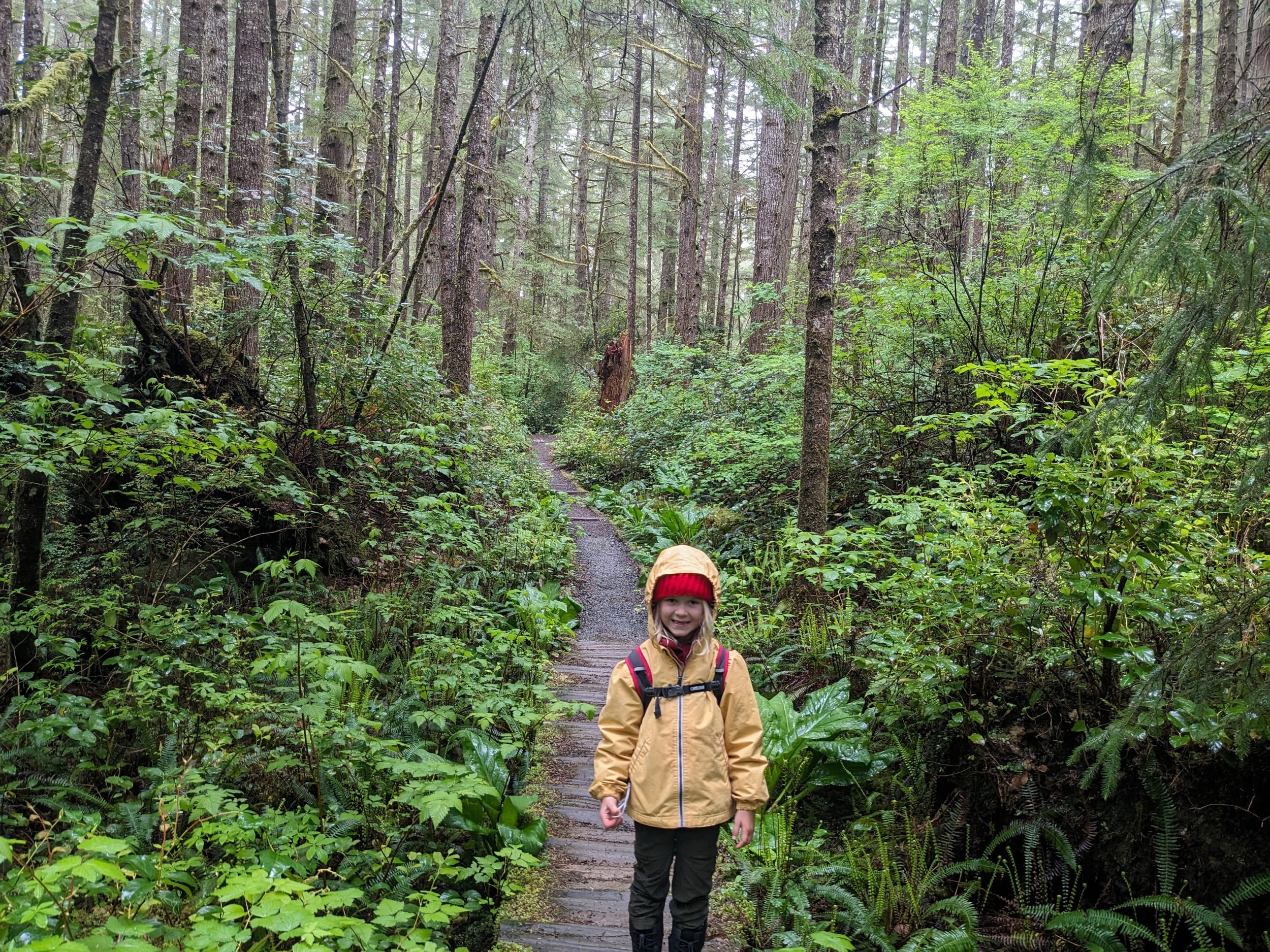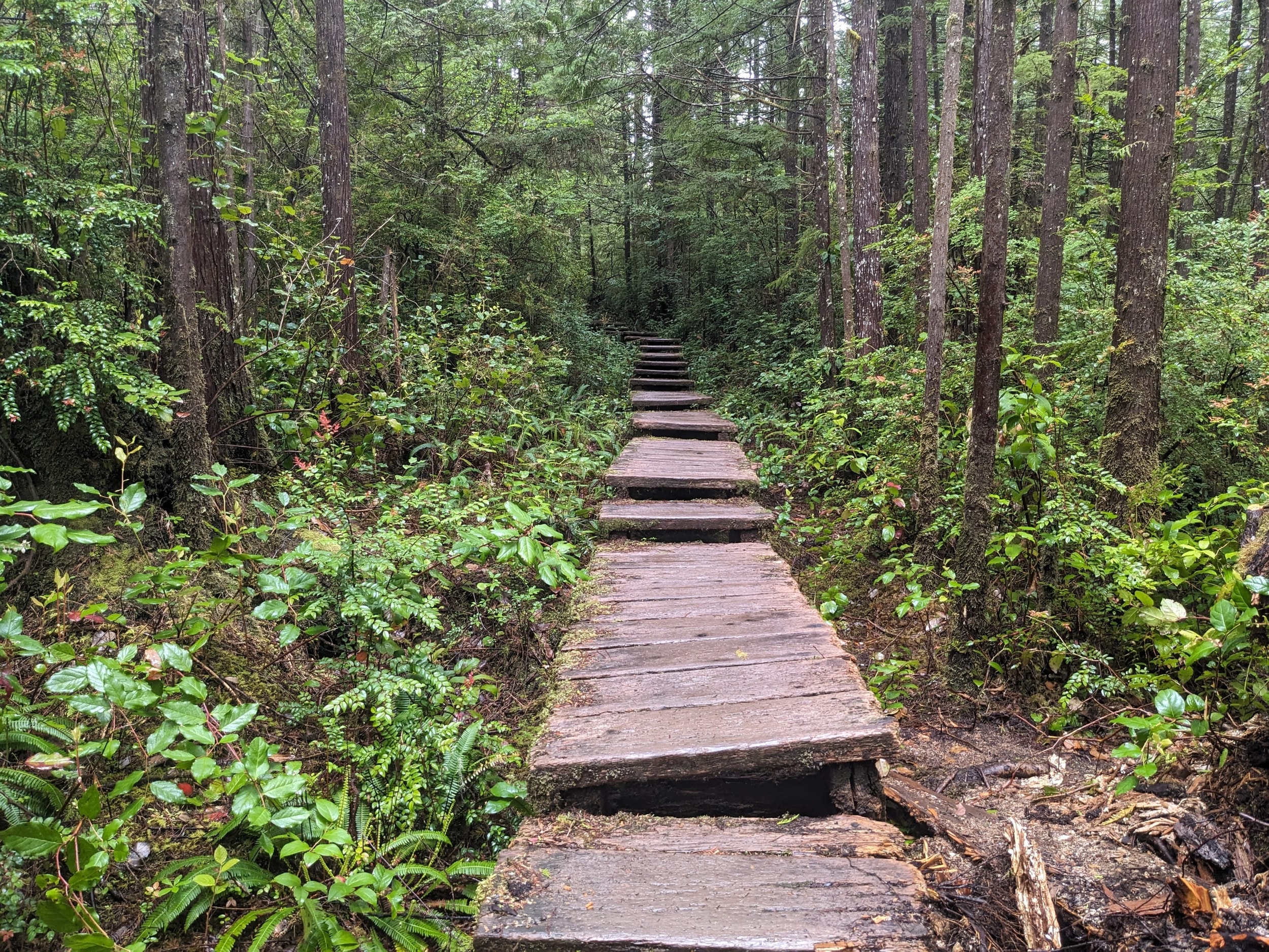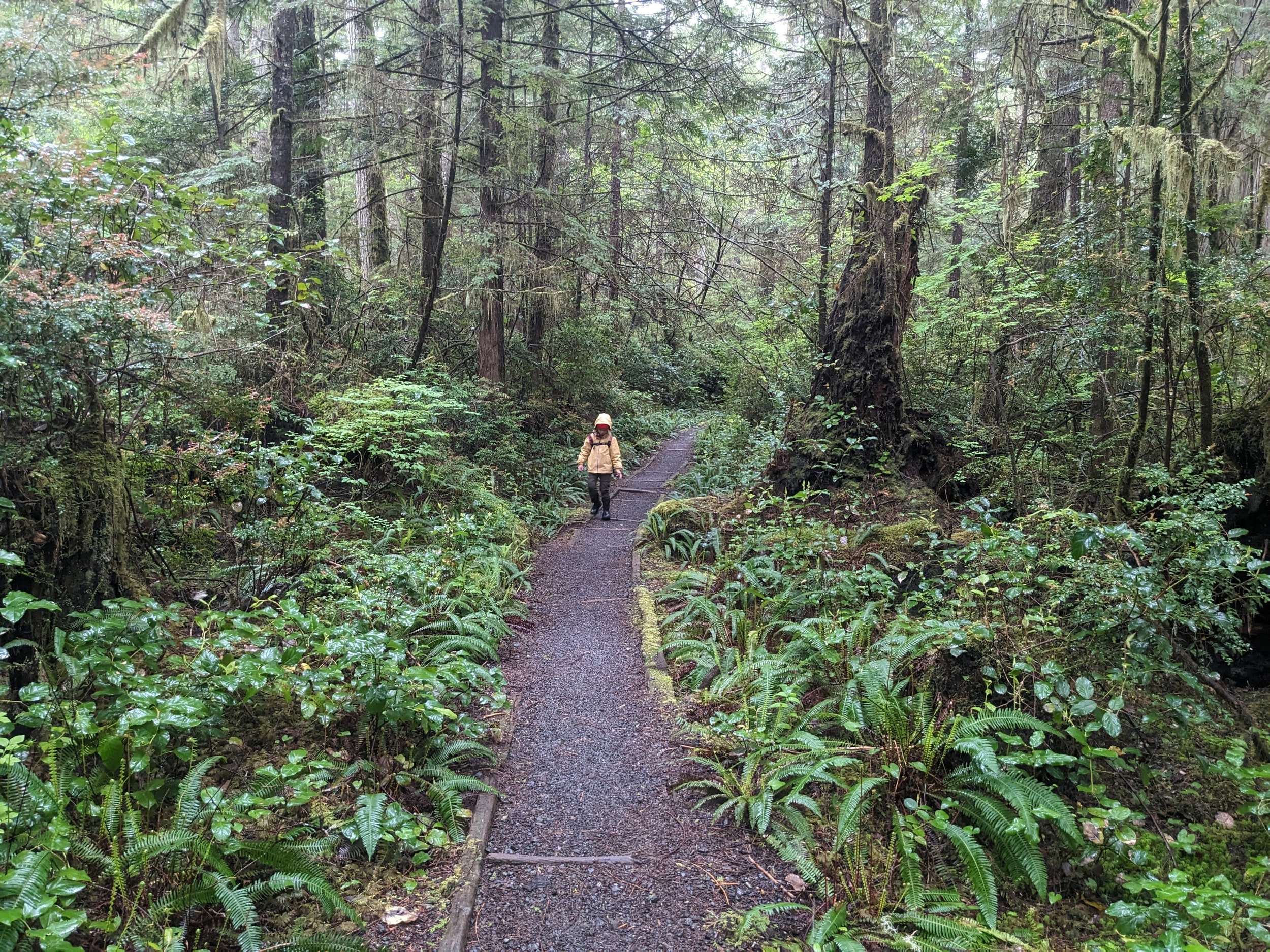 The first leg of the trail is through the dense rainforest - with about half the trail on boardwalks over wet bog/swamp land. As it’s still early in the season, we didn’t see any berries but we found blueberry, salmonberry, and salal berry plants all along the trail with the little flowers that will become the berries in a few months.