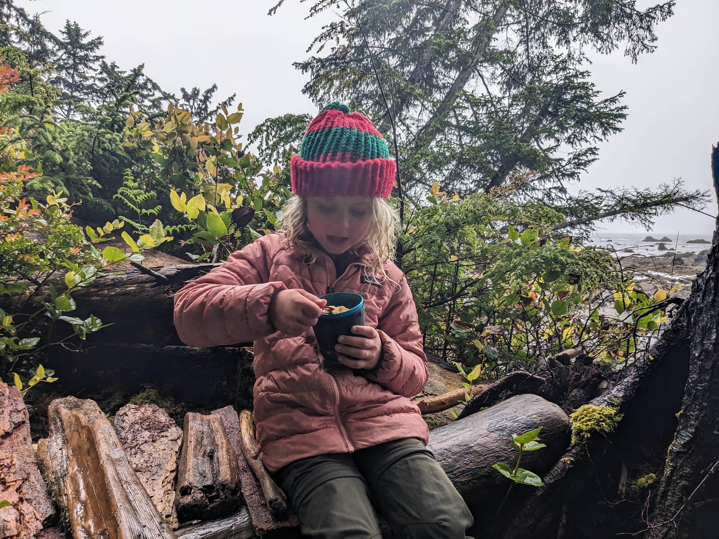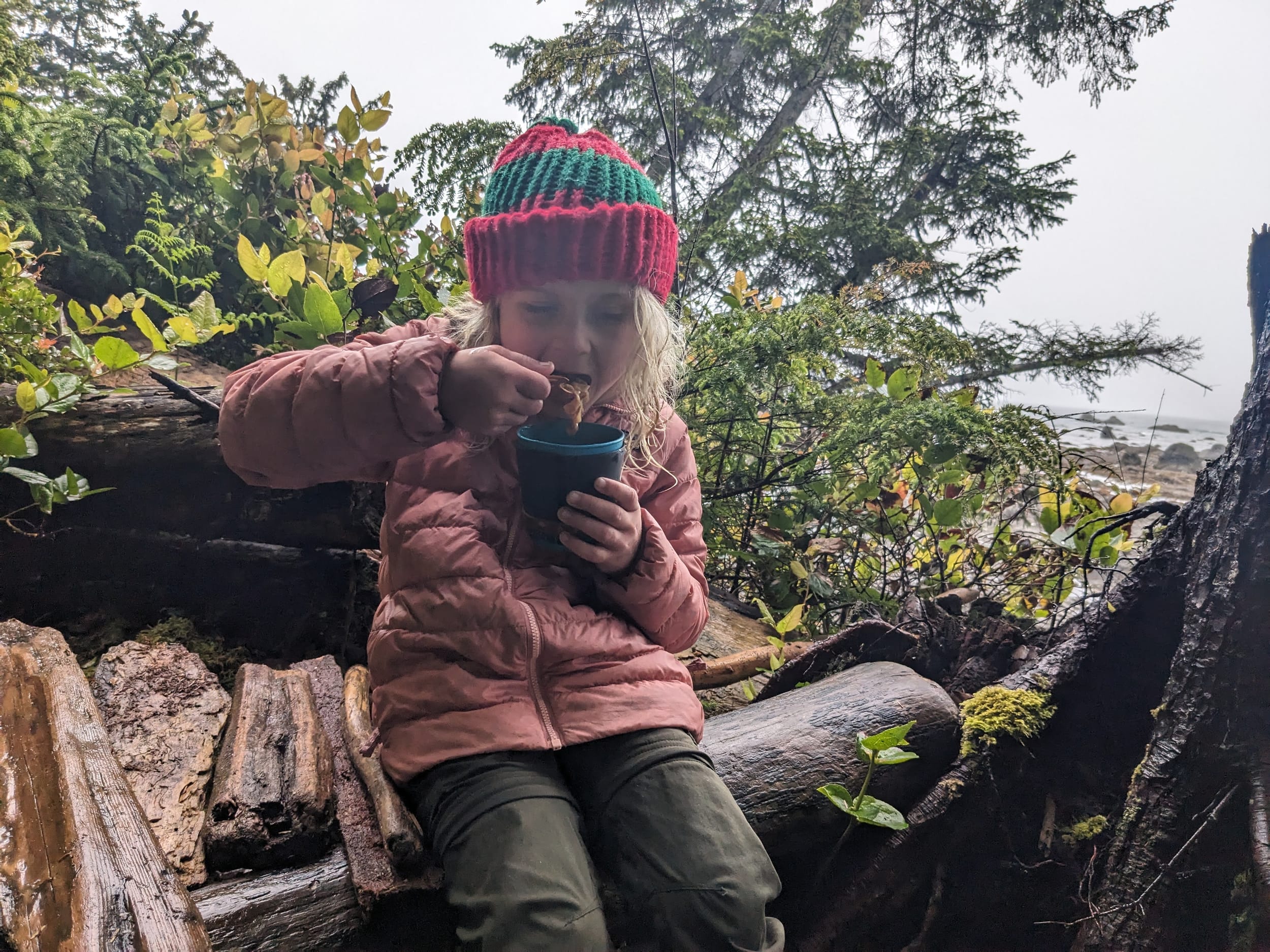 The water on the Olympic Coast is dark red from tannins leaching from leaves/wood in the forest that the water flows through. It’s safe, if treated, and Sara was a big fan of the novelty of it. I had a little bit in my water bottle when I got back home, here it is.