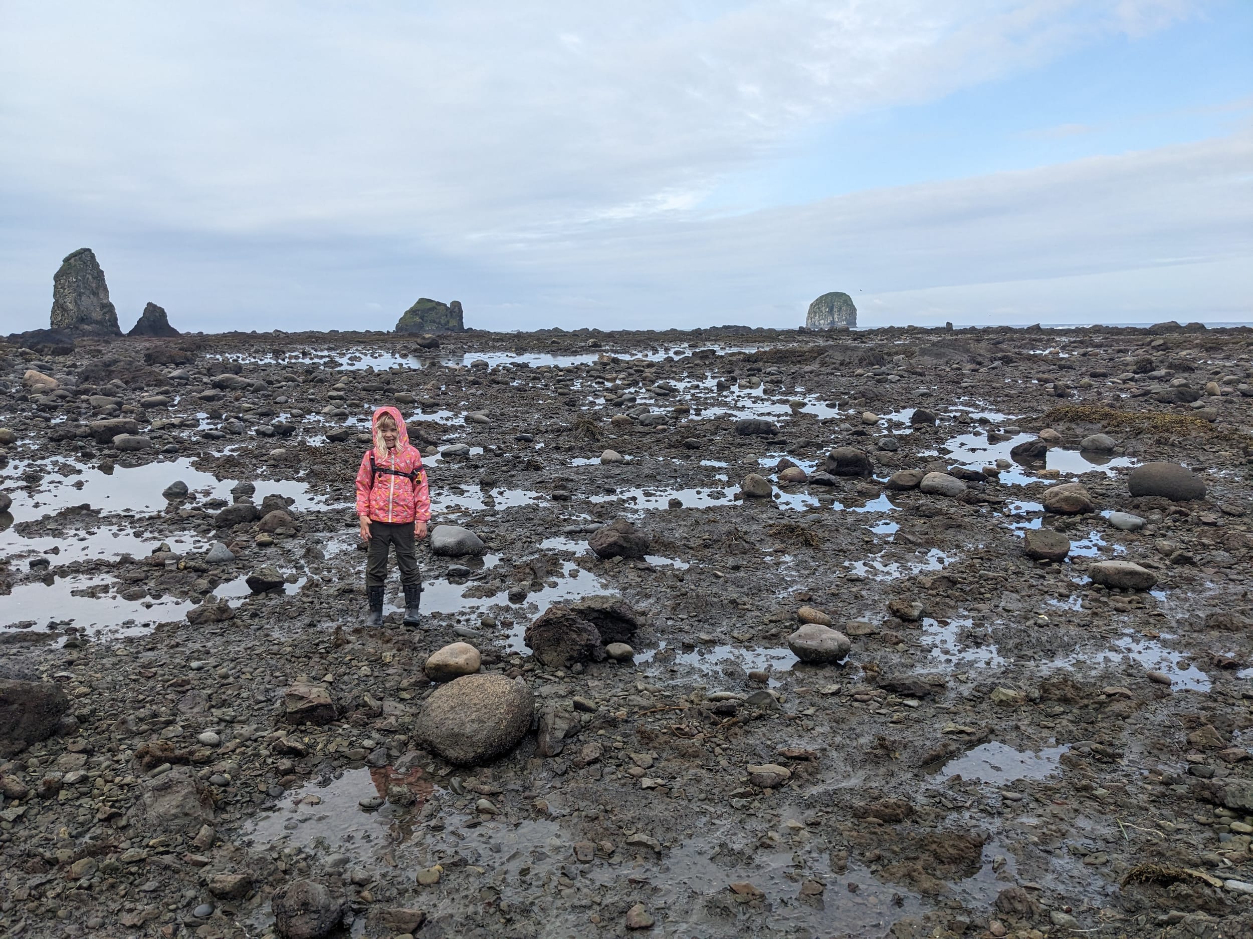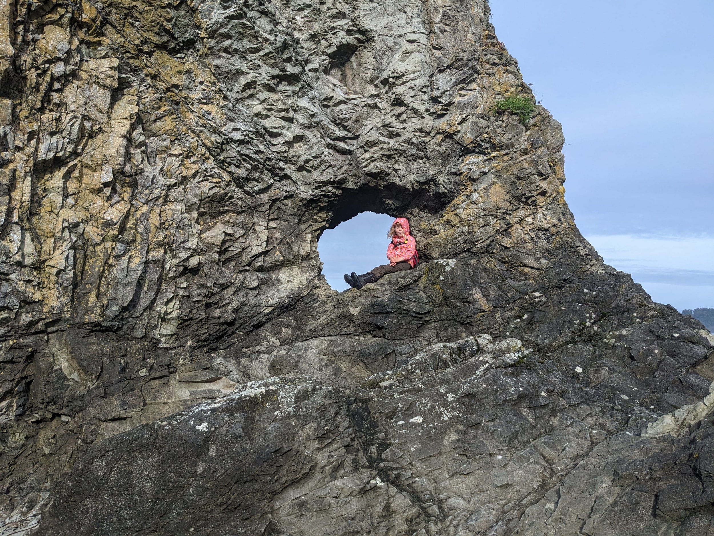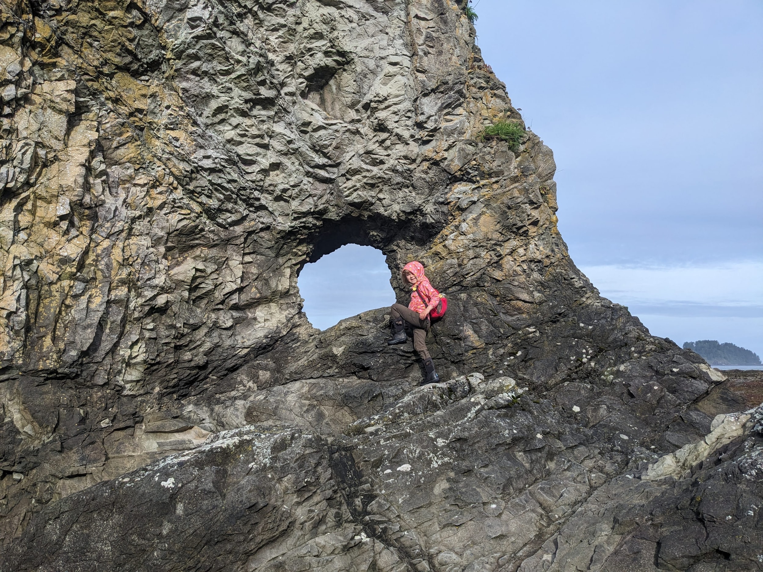 We had a rough night in the tent - the last time we did this Sara was a lot smaller and the system we had back then no longer works. I decided in the early morning that I was going to be investing in a Sara sized backpacking backpack so she could carry her own sleeping bag and pad. We had our breakfast of oatmeal and pop-tarts before breaking camp. We were on our way by about 8a and continued down the beach for another few miles. The tide was way out (I think it was only a +1/2 tide) and there was tide-pooling for days. We spent several hours going only a few miles down the beach.