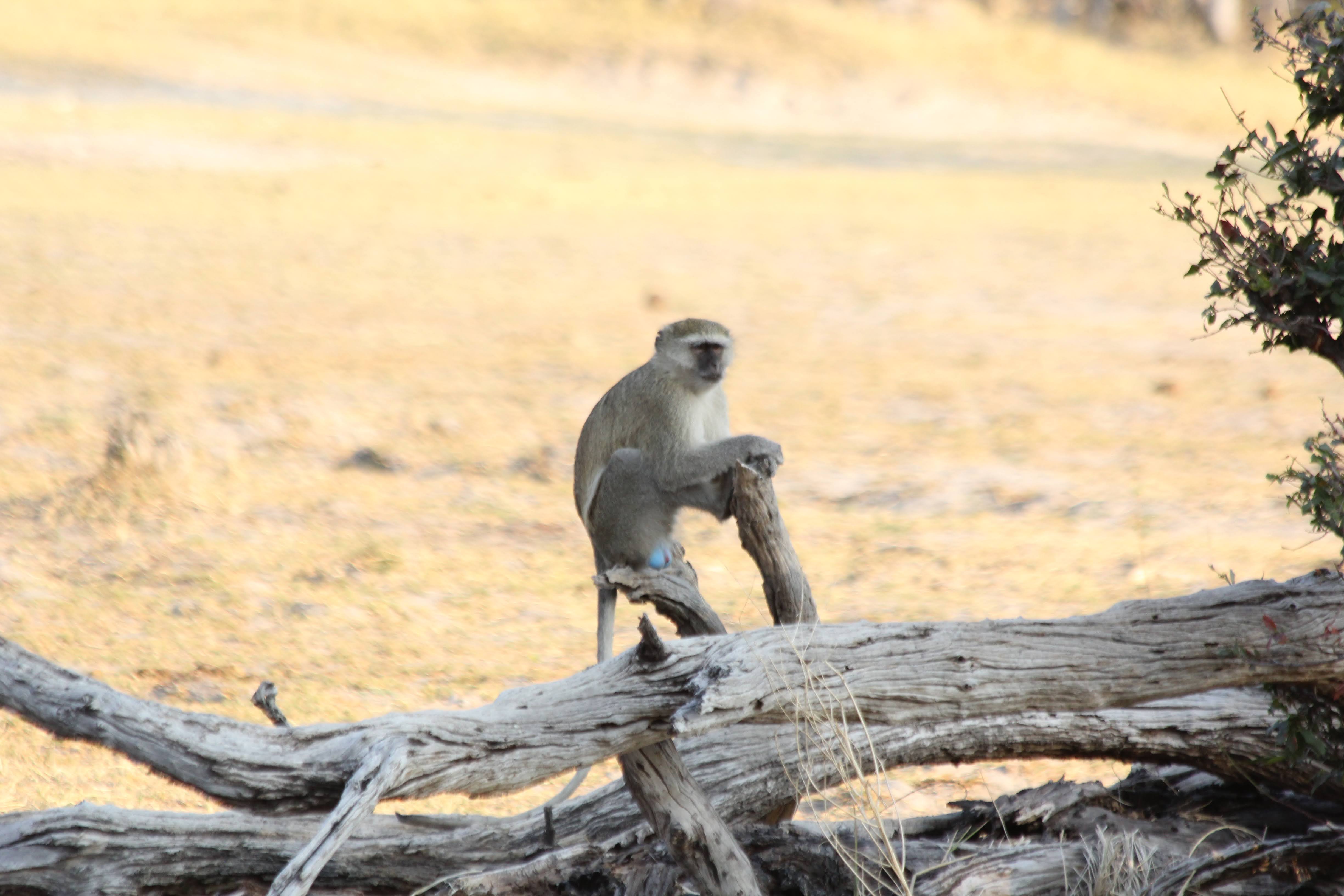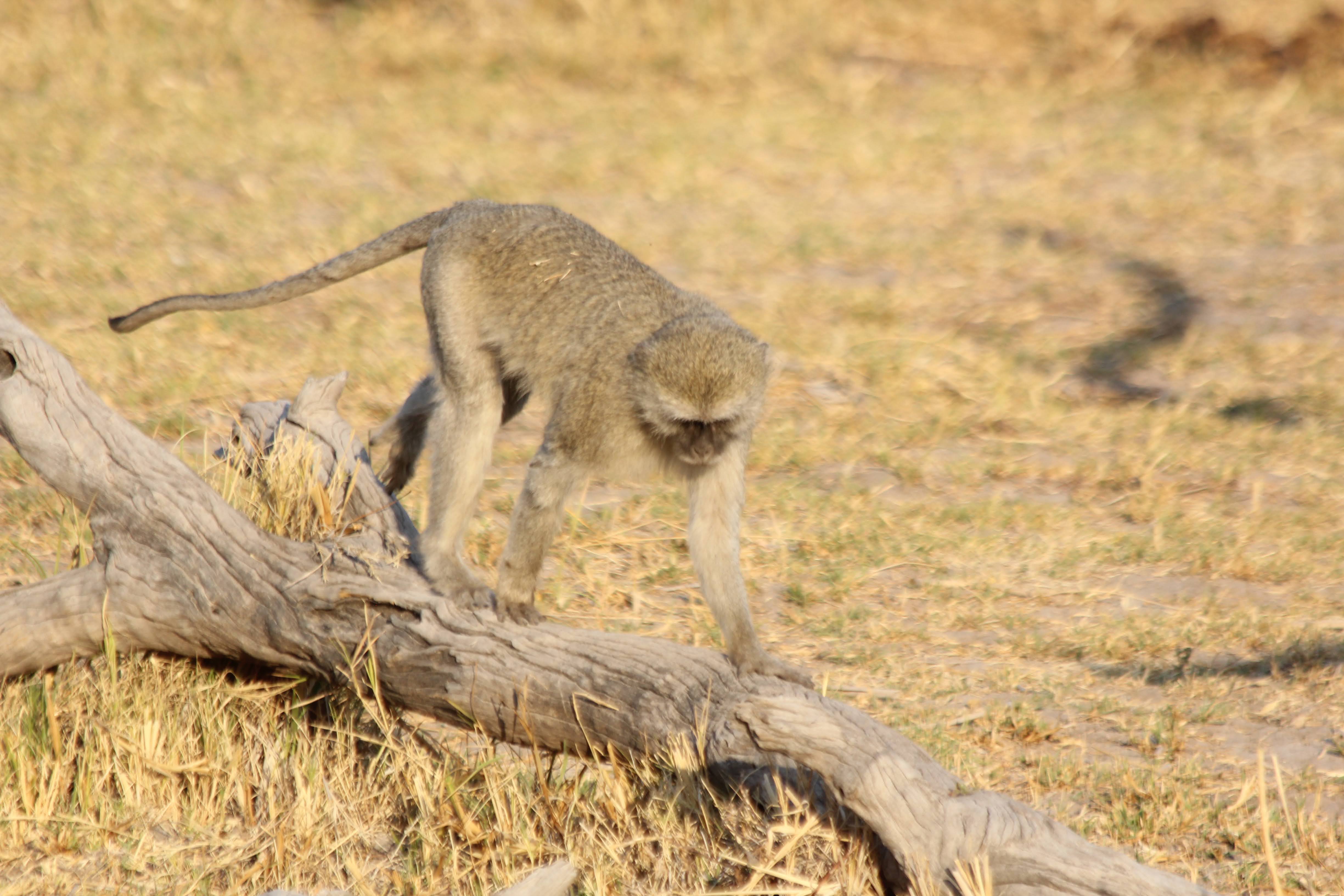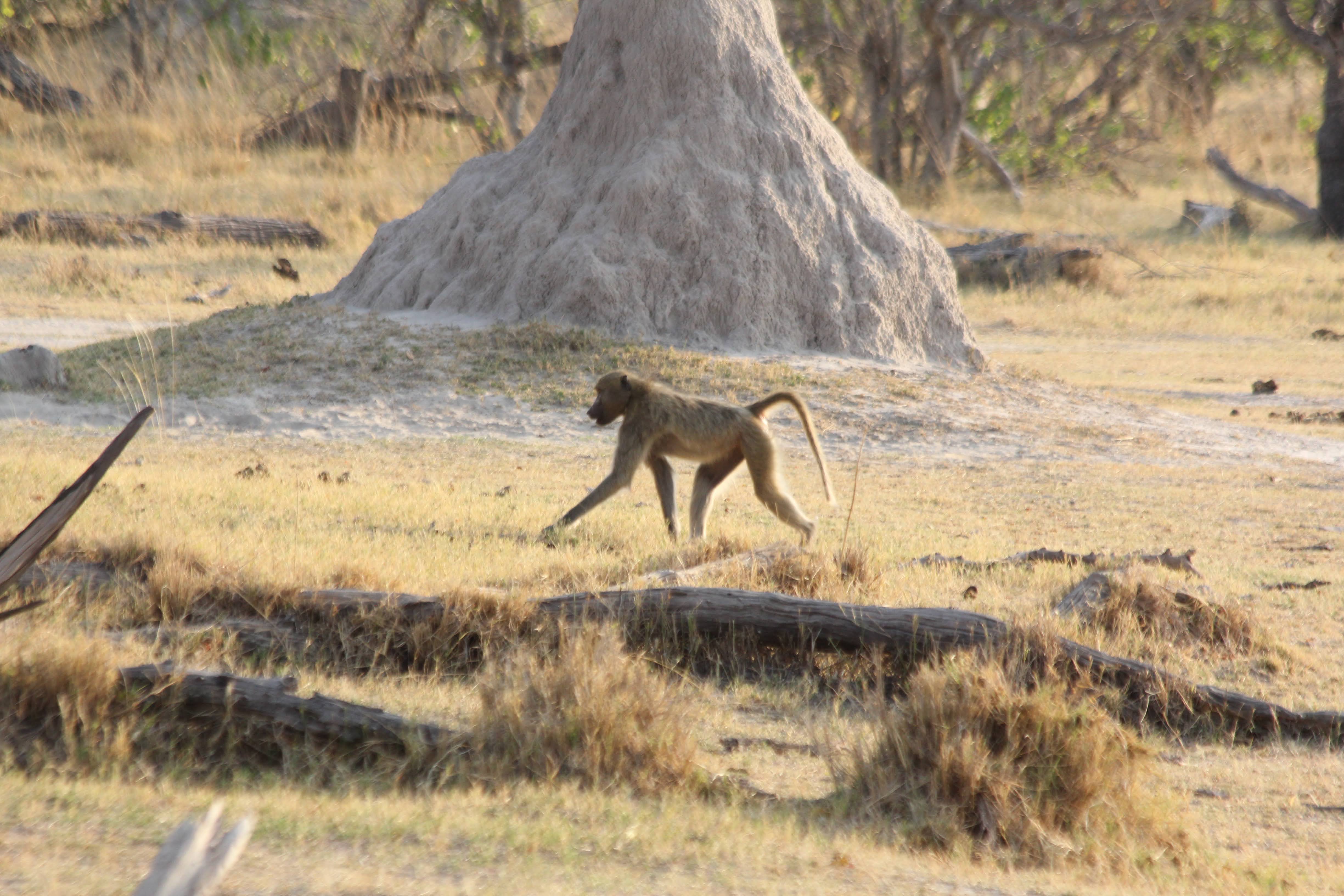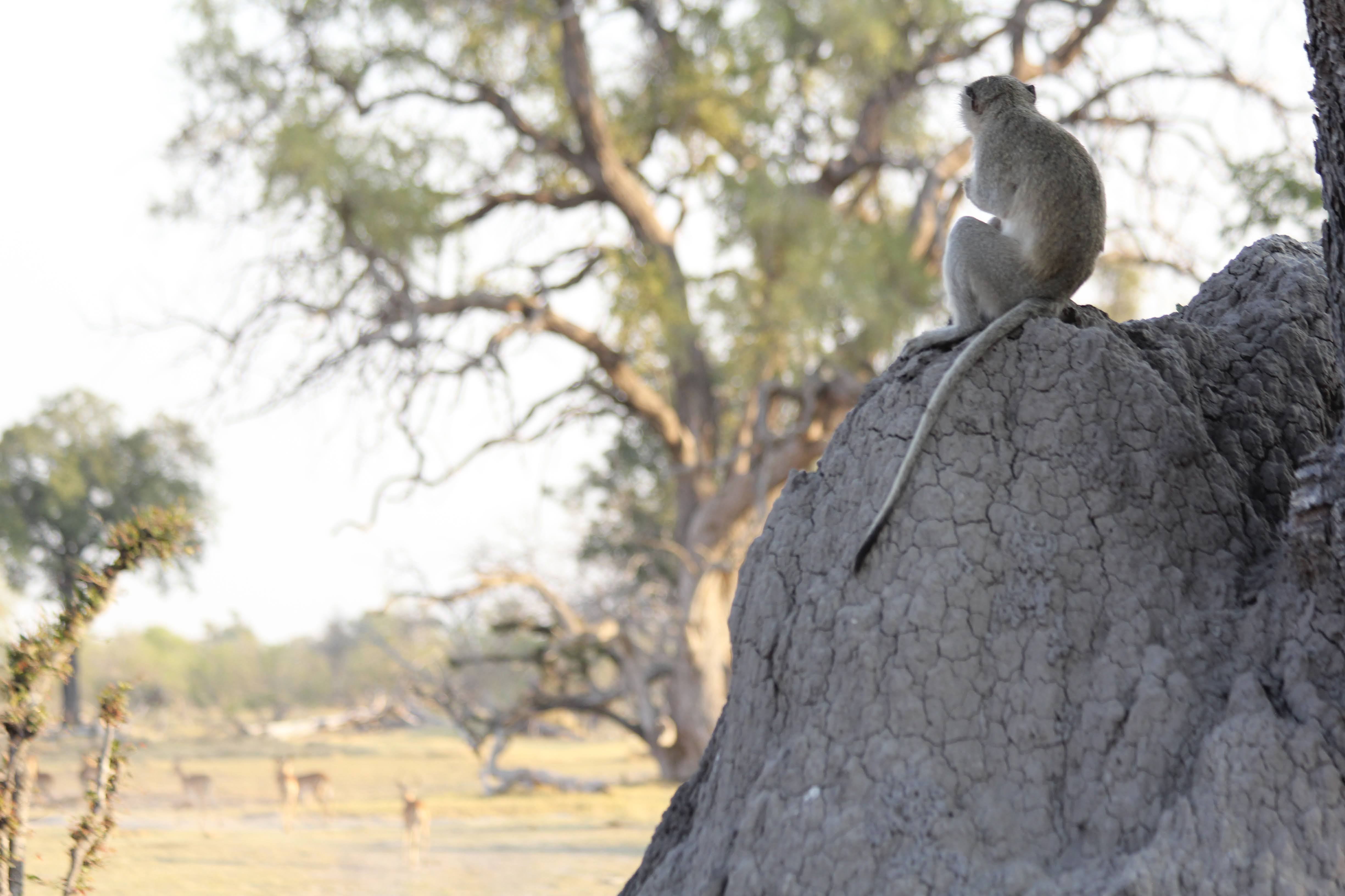We spotted some monkeys across the pond from us and went over to visit for a while. They are very active - running and scampering all over the place. There was always at least one monkey posted up on a high point - termite mound or tree - to watch out. Often there was more than one and they were usually the most still for pictures. Apparently there is a saying that monkeys never lie - if you hear them going crazy making all kinds of noise, then there is a predator nearby. No such luck today.