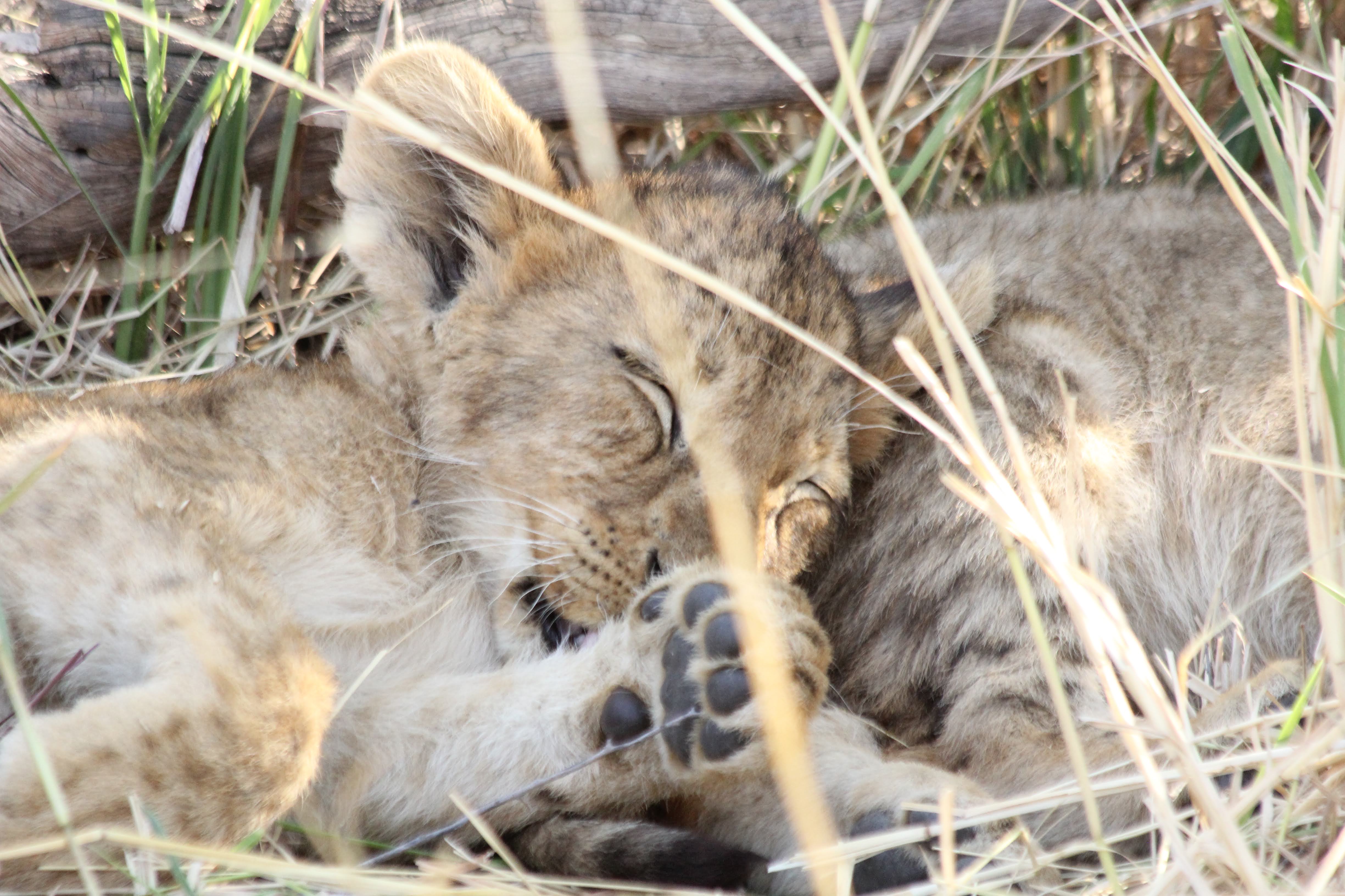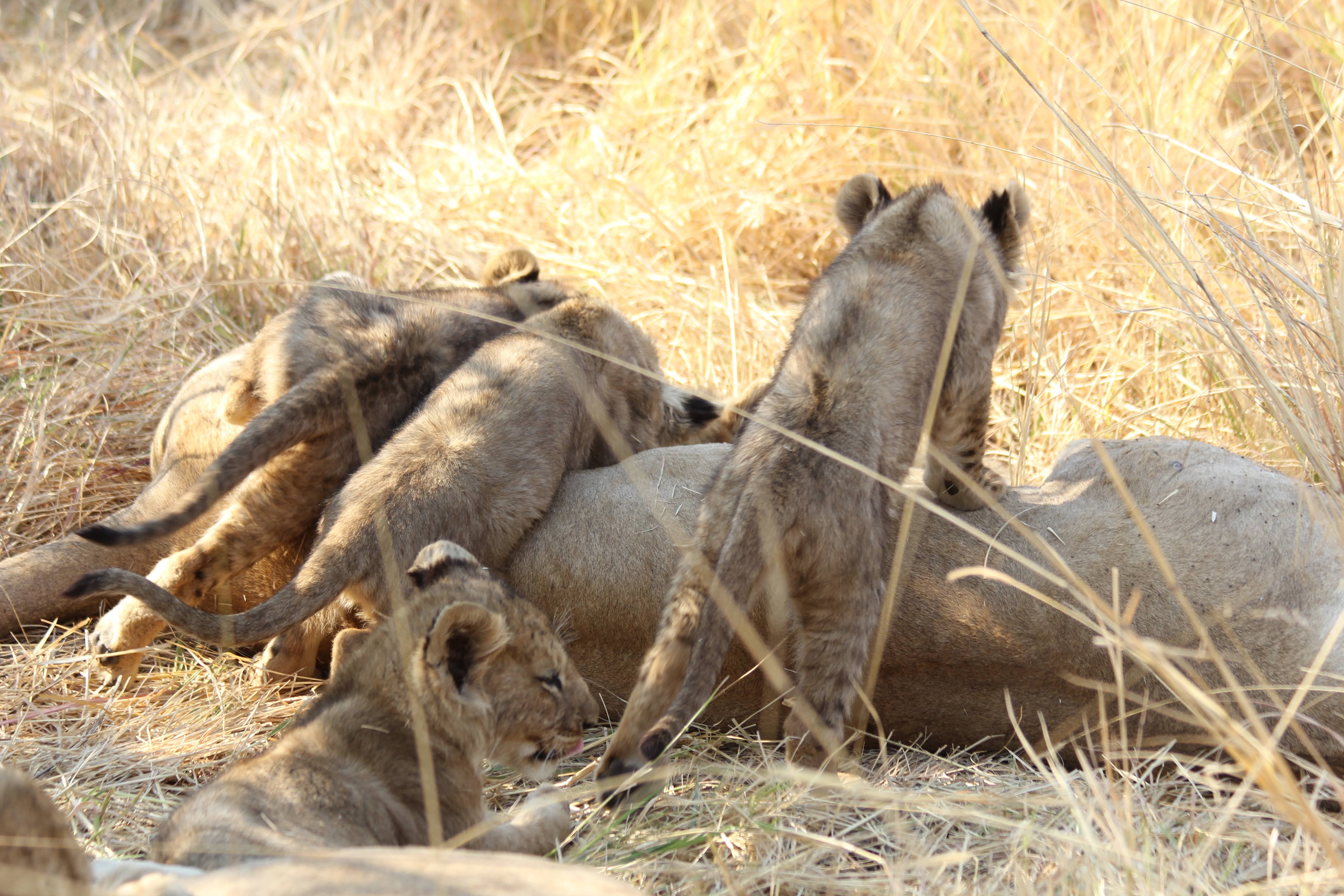 We arrived at camp at noon and took off on our first game drive right away. About 10 minutes out of the gate, we found a lion pride with 3 females and 8 cubs - 4 from each of two mothers. They were still napping (it was early afternoon at this point), but you could tell they were starting to stir and wake up. Once they got going, they were quite the rambunctious little crew - crawling all over their mommas and creating quite a bit of havoc. It’s apparently quite uncommon to have this many cubs in one place - 4 is sort of the maximum that one female can have at a time and having two females giving birth and nearly the same time is also a rarity.
