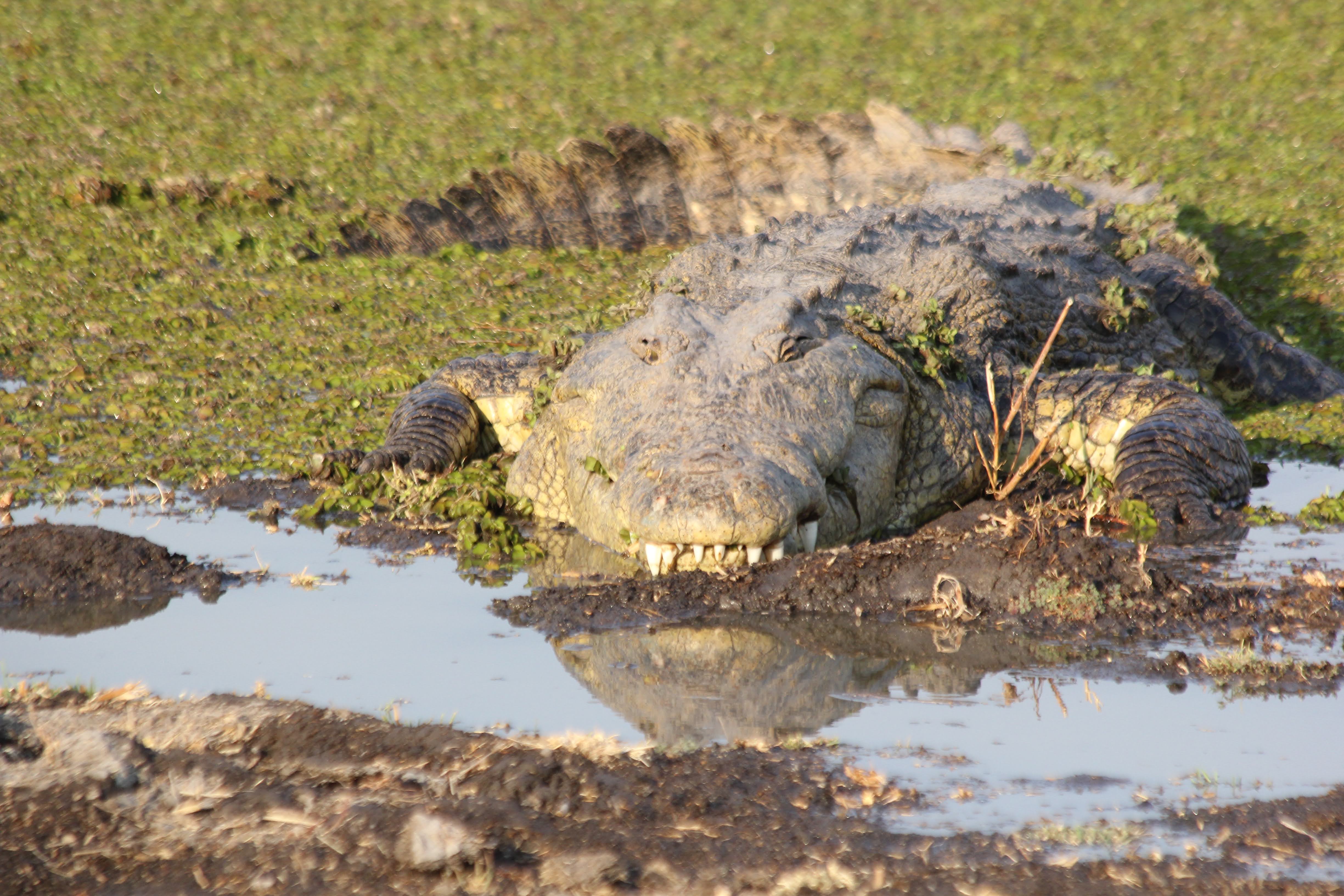 And this is why you have to be careful going swimming… near one of the deeper pools, we found this massive croc - easily 7 feet long. The little ones look kinda cute, but this big boy looks nasty. We did end up going swimming later in the trip, but not in this pond!