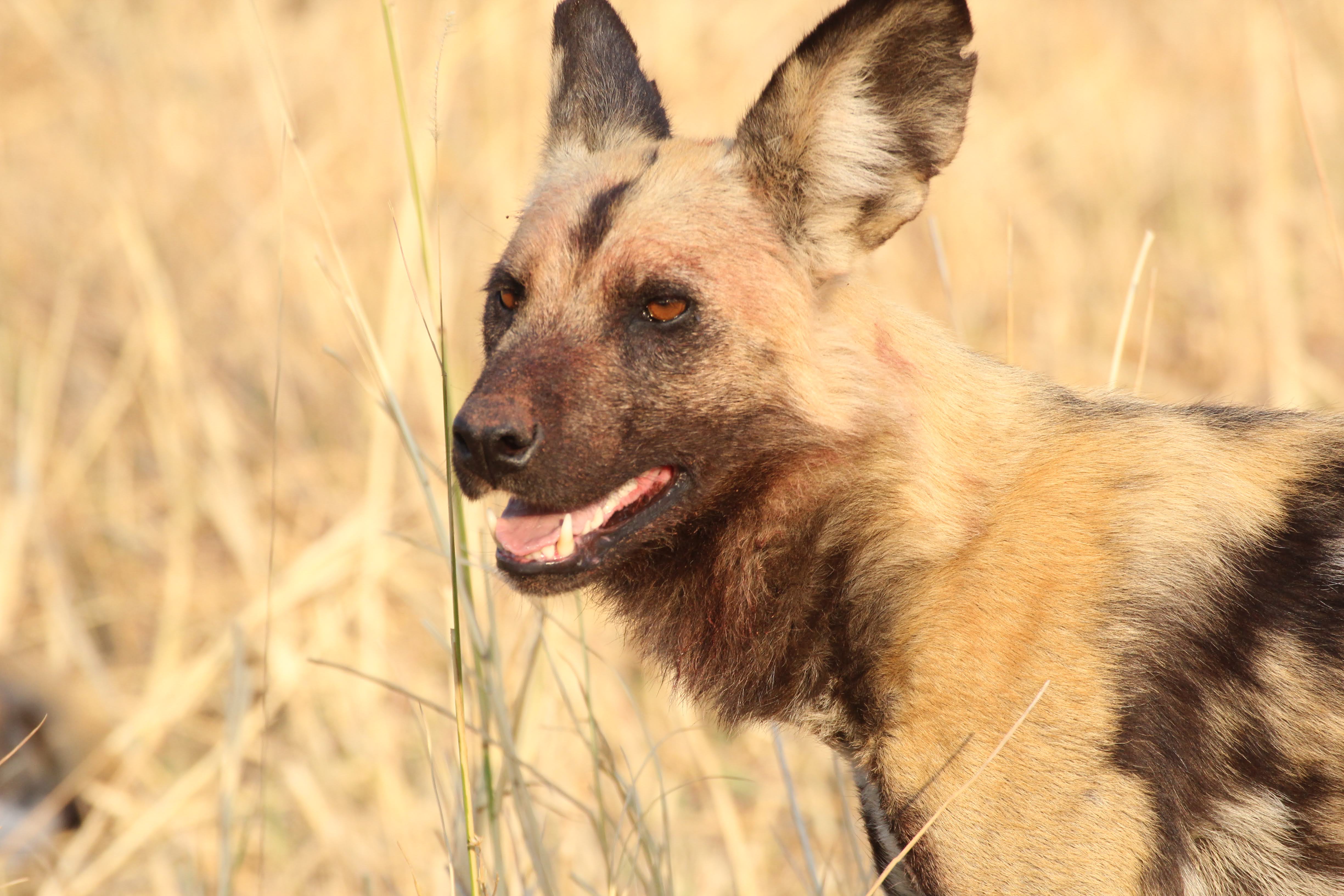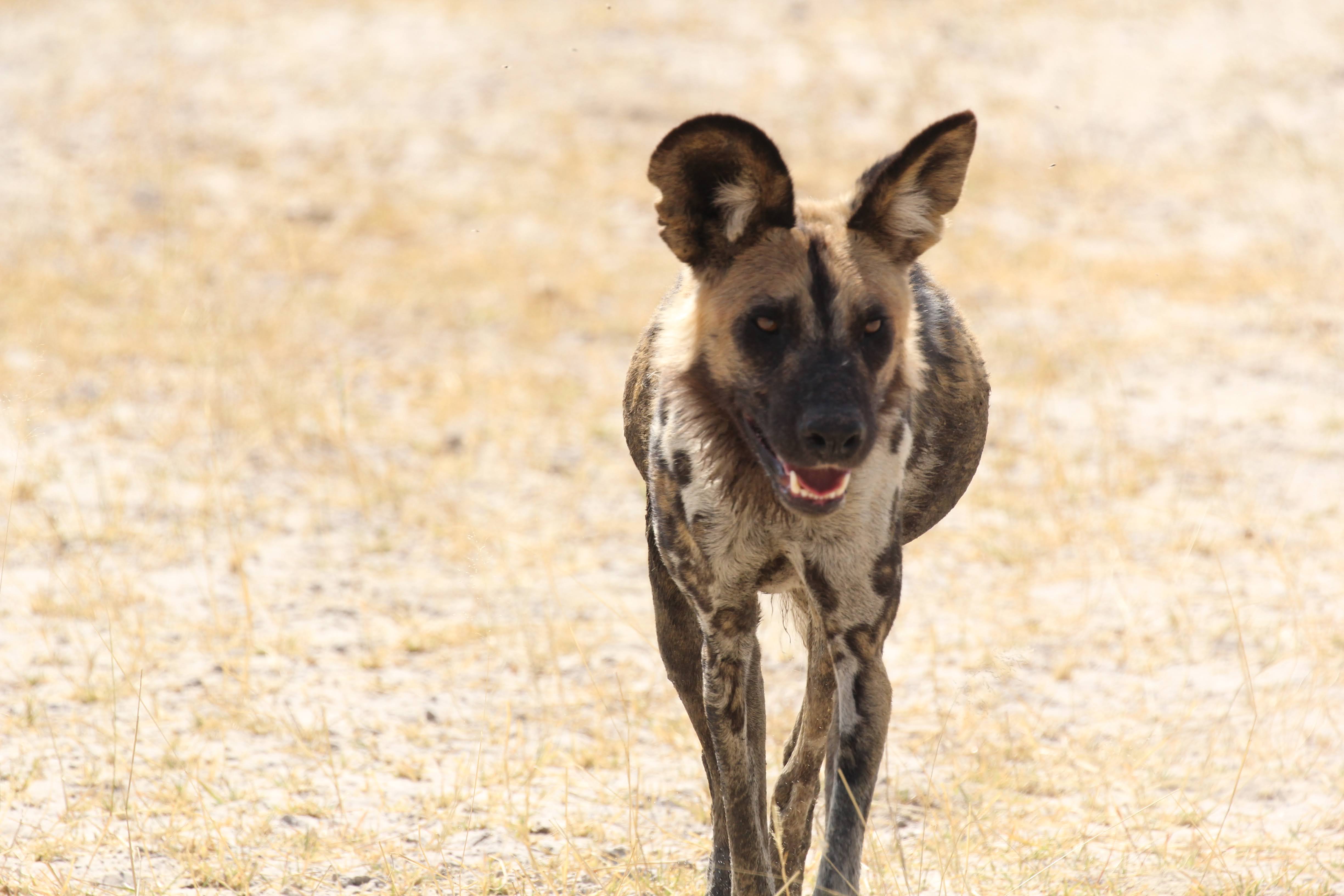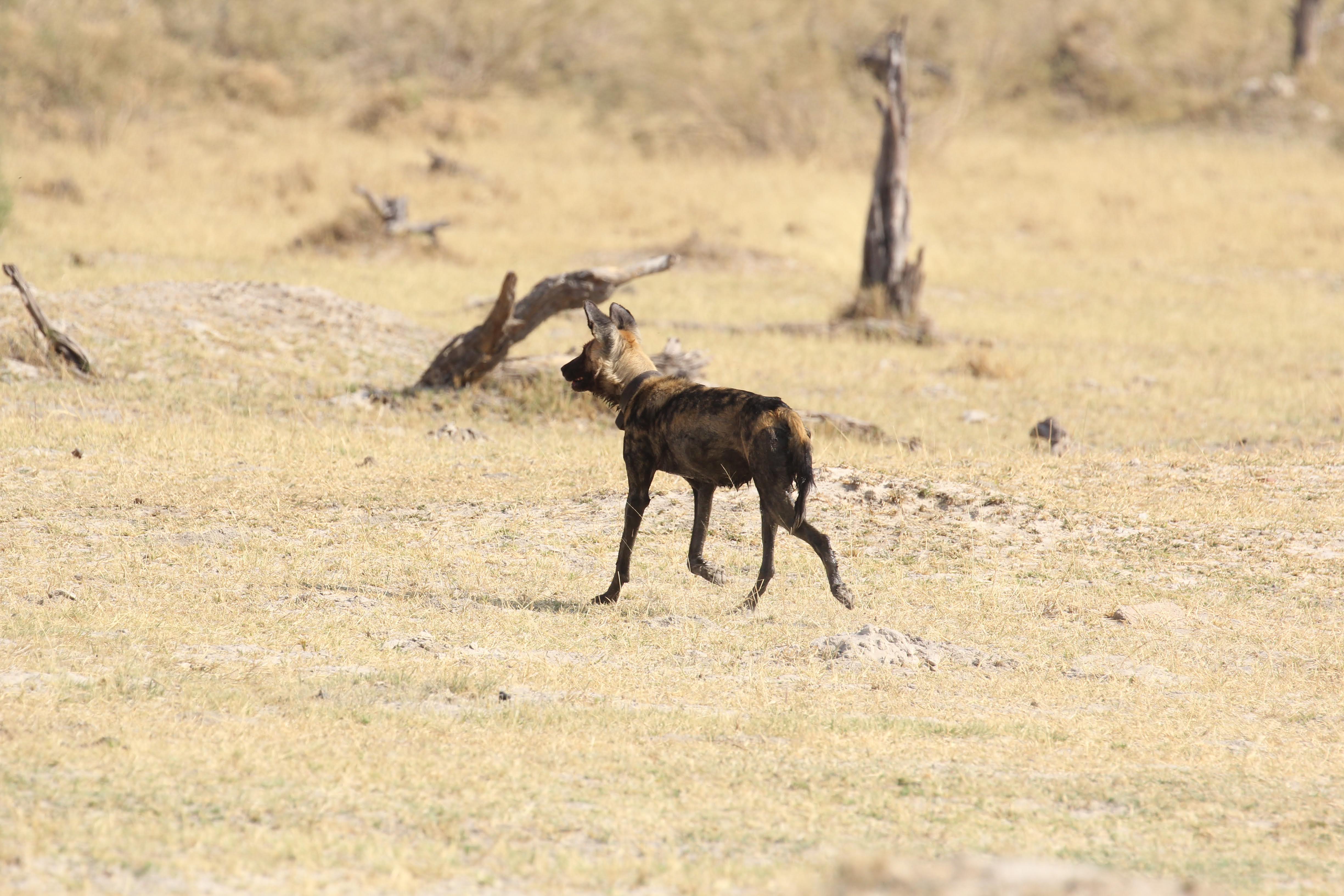 And as we were just thinking things were wrapping up for the day, another wild dogs kill. We raced to the scene, but got there right as they had finished gorging themselves and were running away from the kill. 5 dogs this time, one of them appeared to have a tracking color on. They can really run even when they are carrying probably 10 pounds of meat in their stomachs. Quite impressive animals.