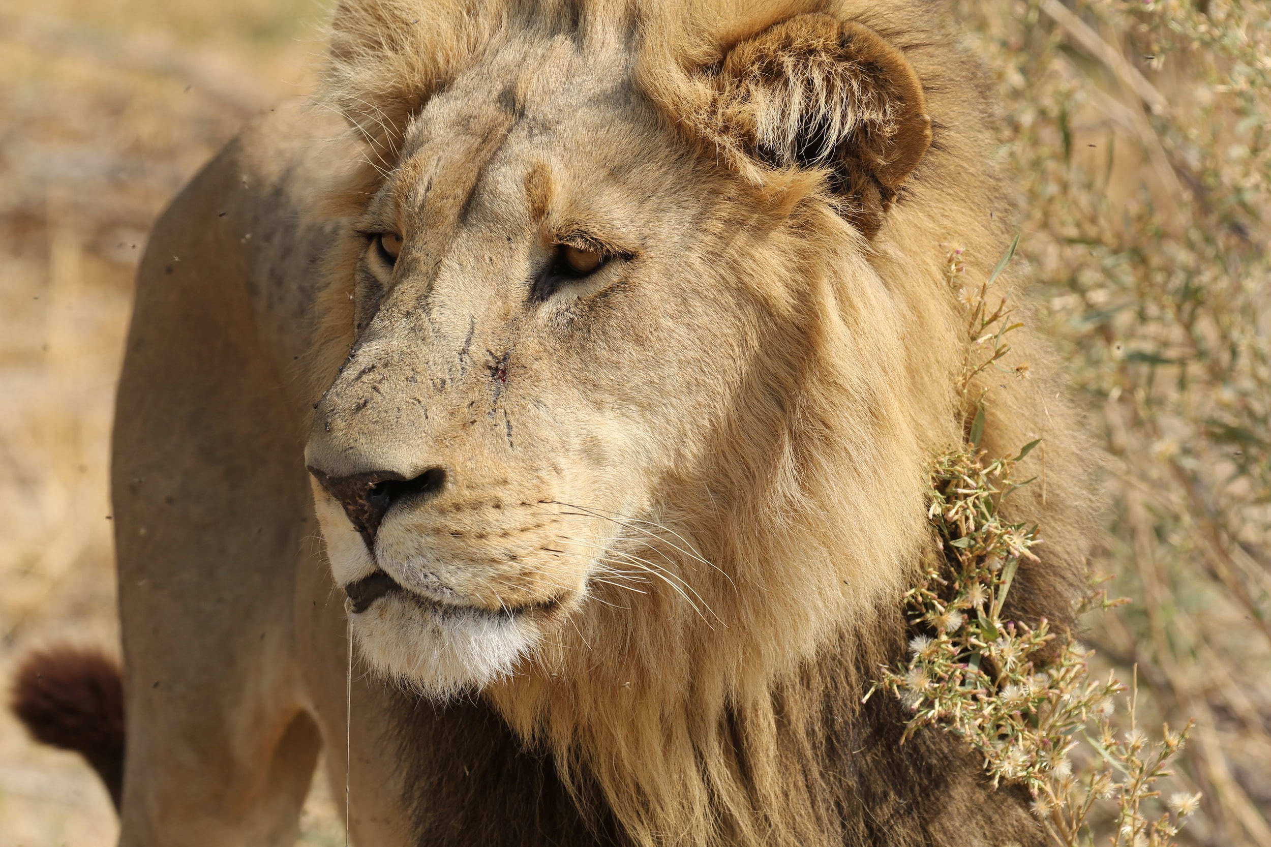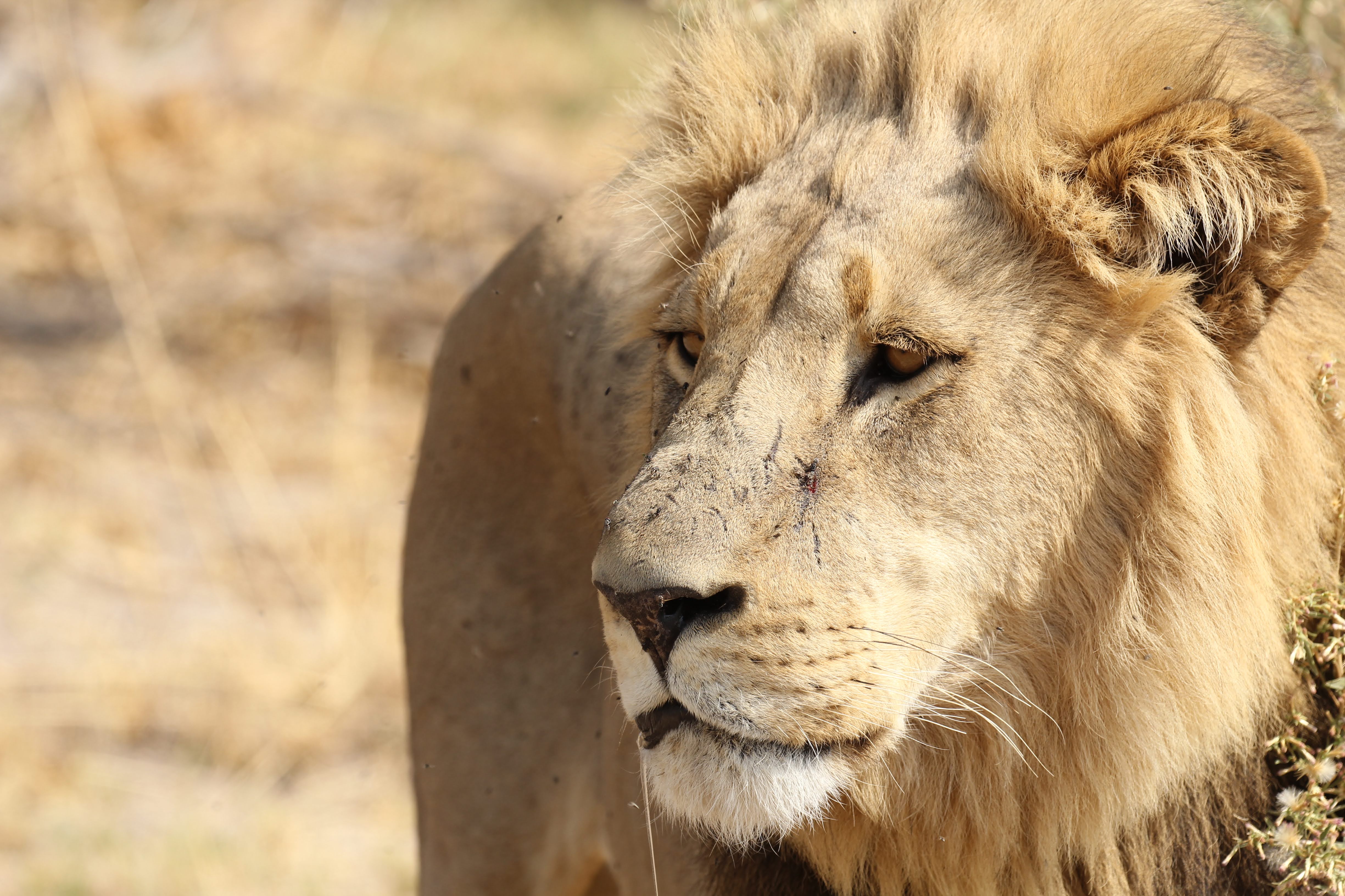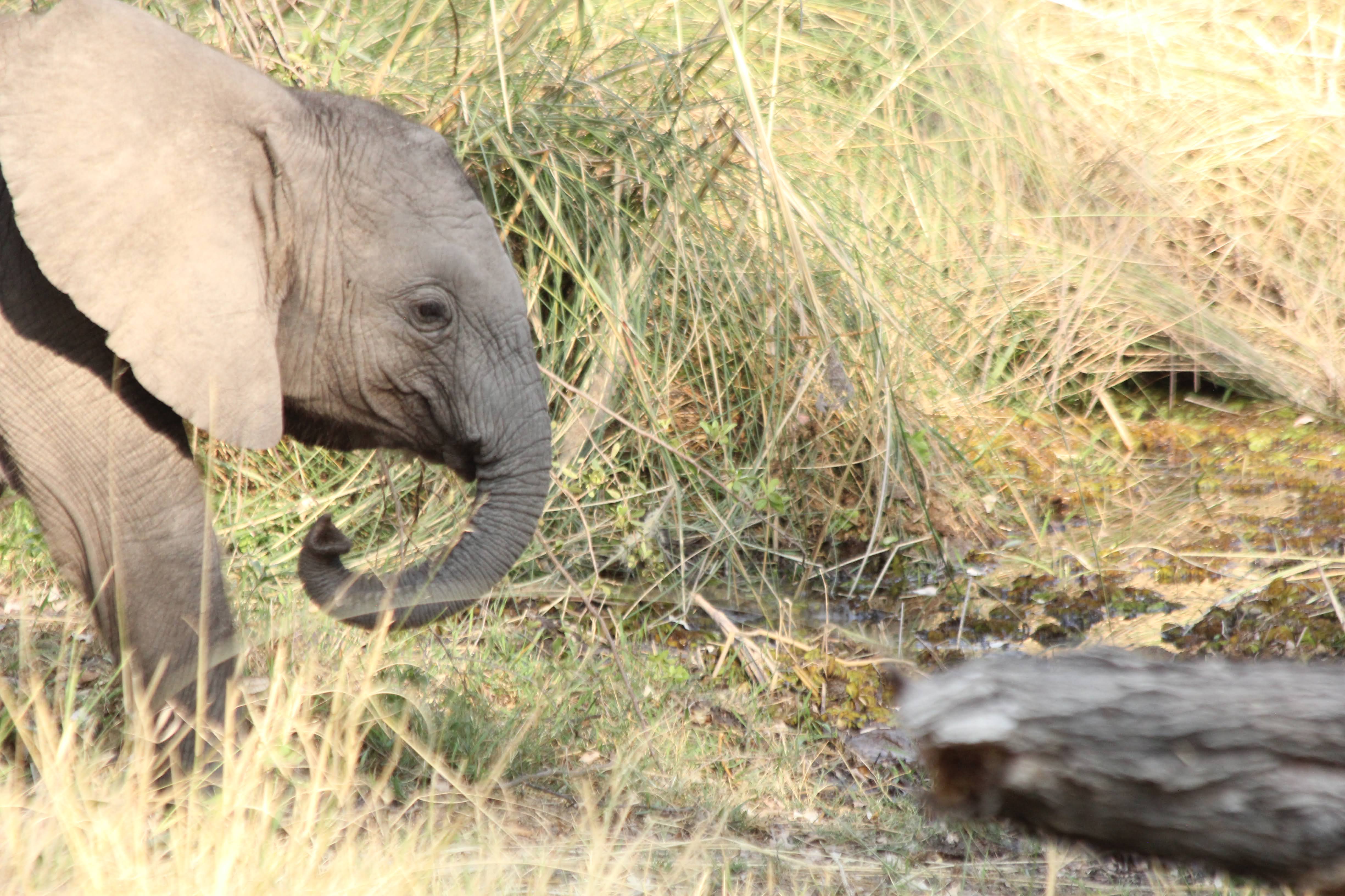 We continued driving and ran across another very sad sight, a trunk-less baby elephant. Apparently some of them are born that way, but it also could have been a lion that took the trunk off. This baby can live for a while in the wild, but his chances of long-term survival are pretty low.