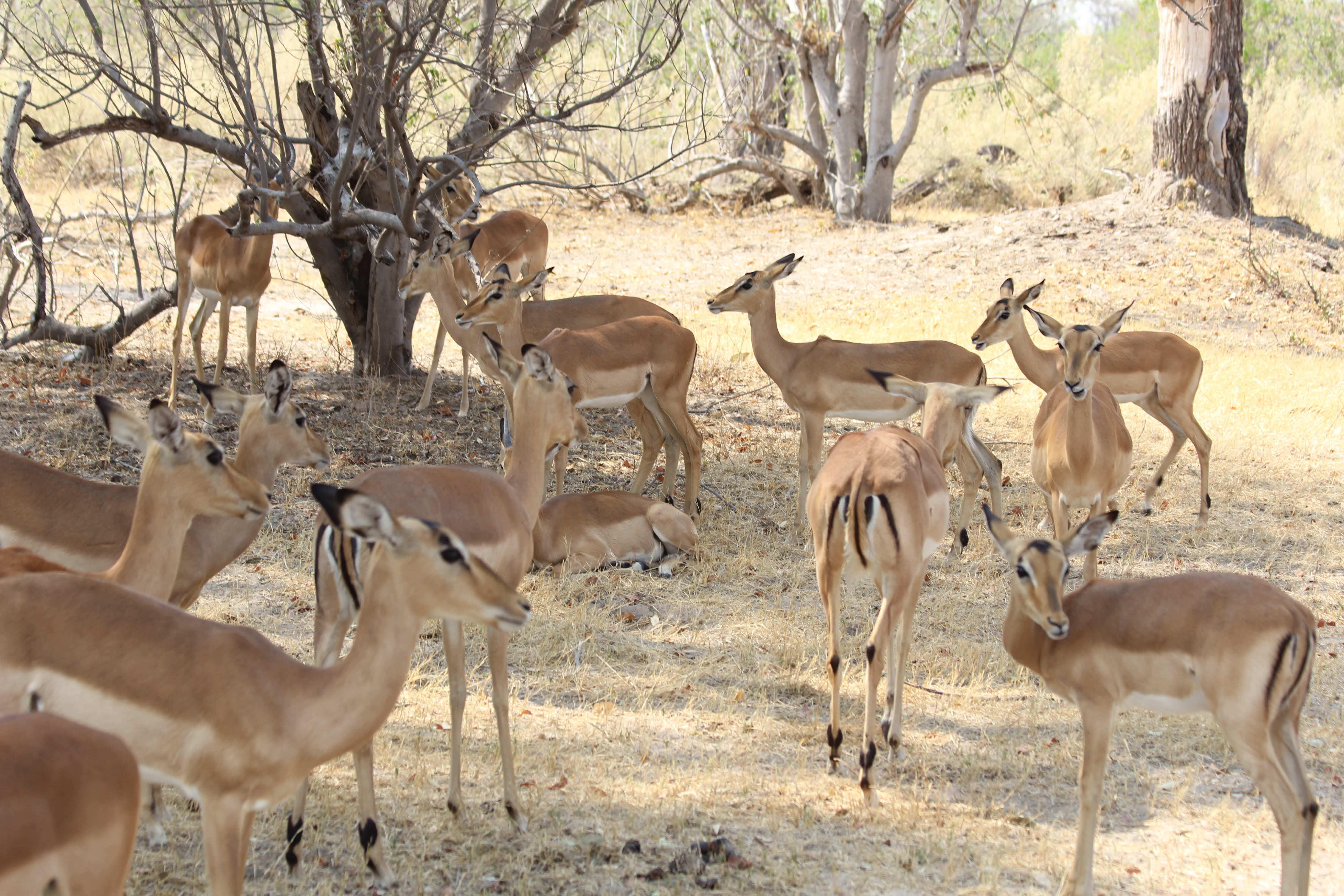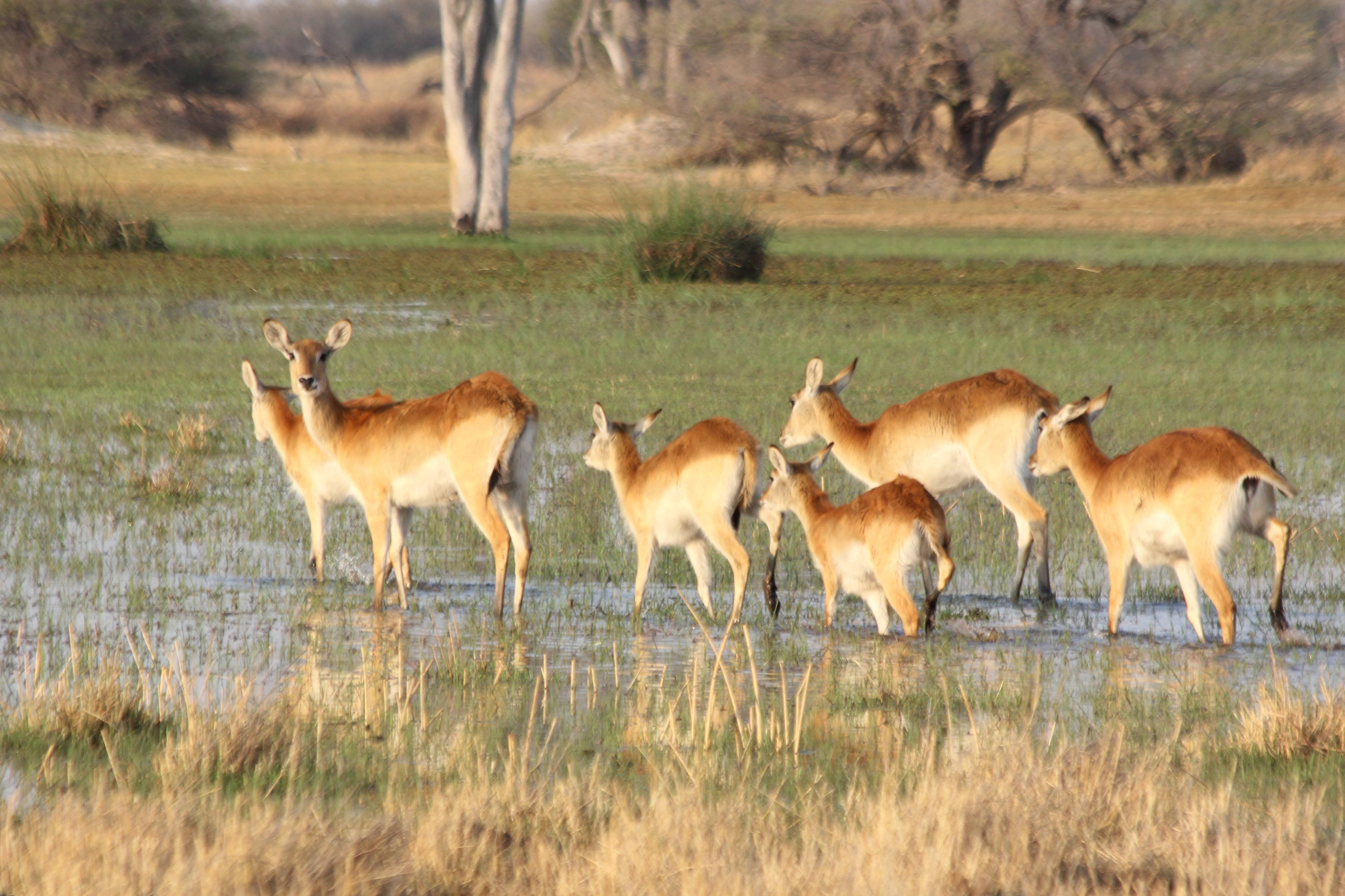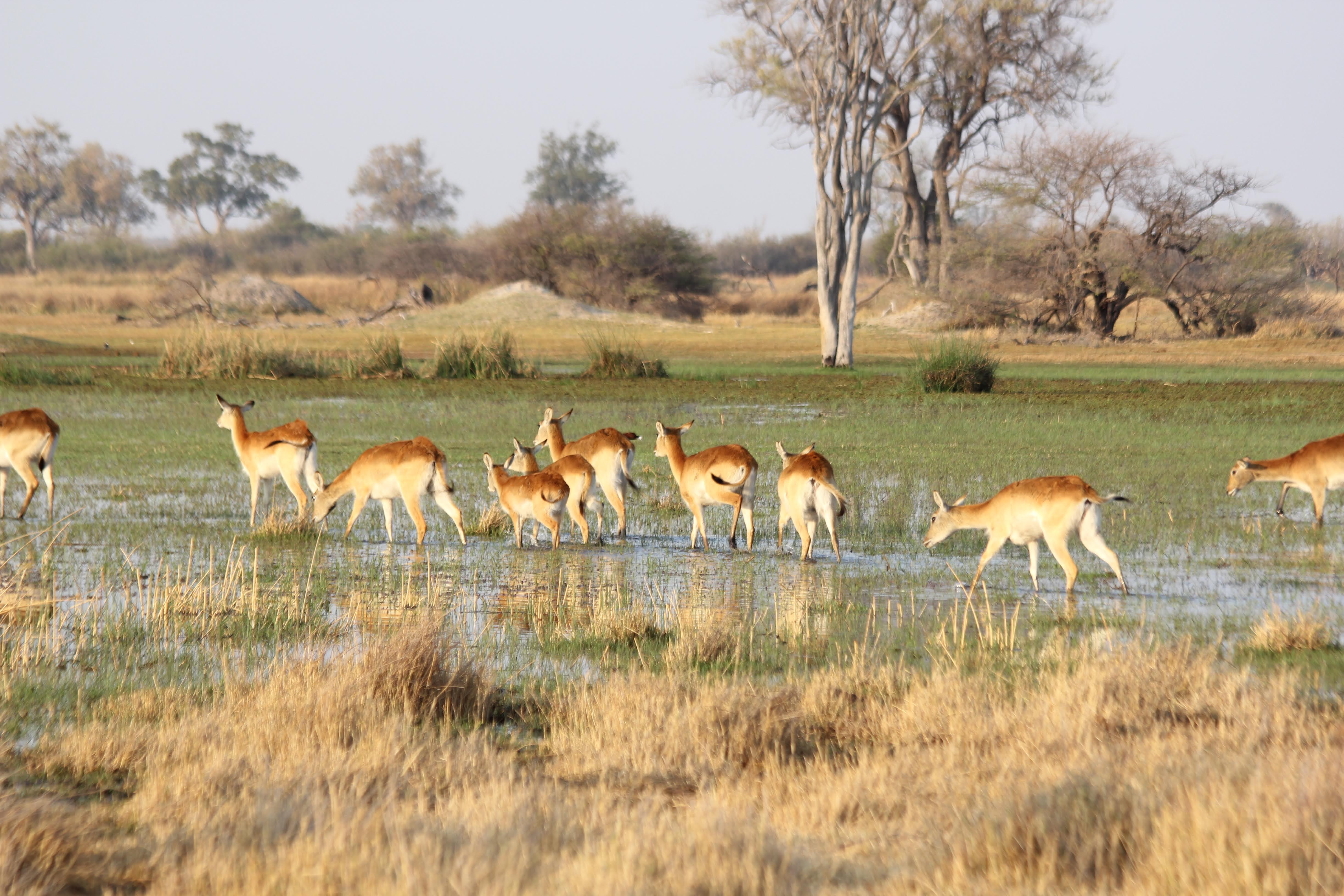 We kicked off the day with another game drive, but with the promise of something different in the afternoon - taking the boats out on the lagoon. Our guide talked to us about Lechwe, which is a type of antelope with a really powerful set of back legs that help them push through (and jump through) the water. They spend the majority of their time in the water, so this is a big help. My favorite thing about these little antelope is that when they look right at you, it looks like they are smiling… Their back legs are so long and powerful that they look almost funny compared to their front legs, which are much shorter.