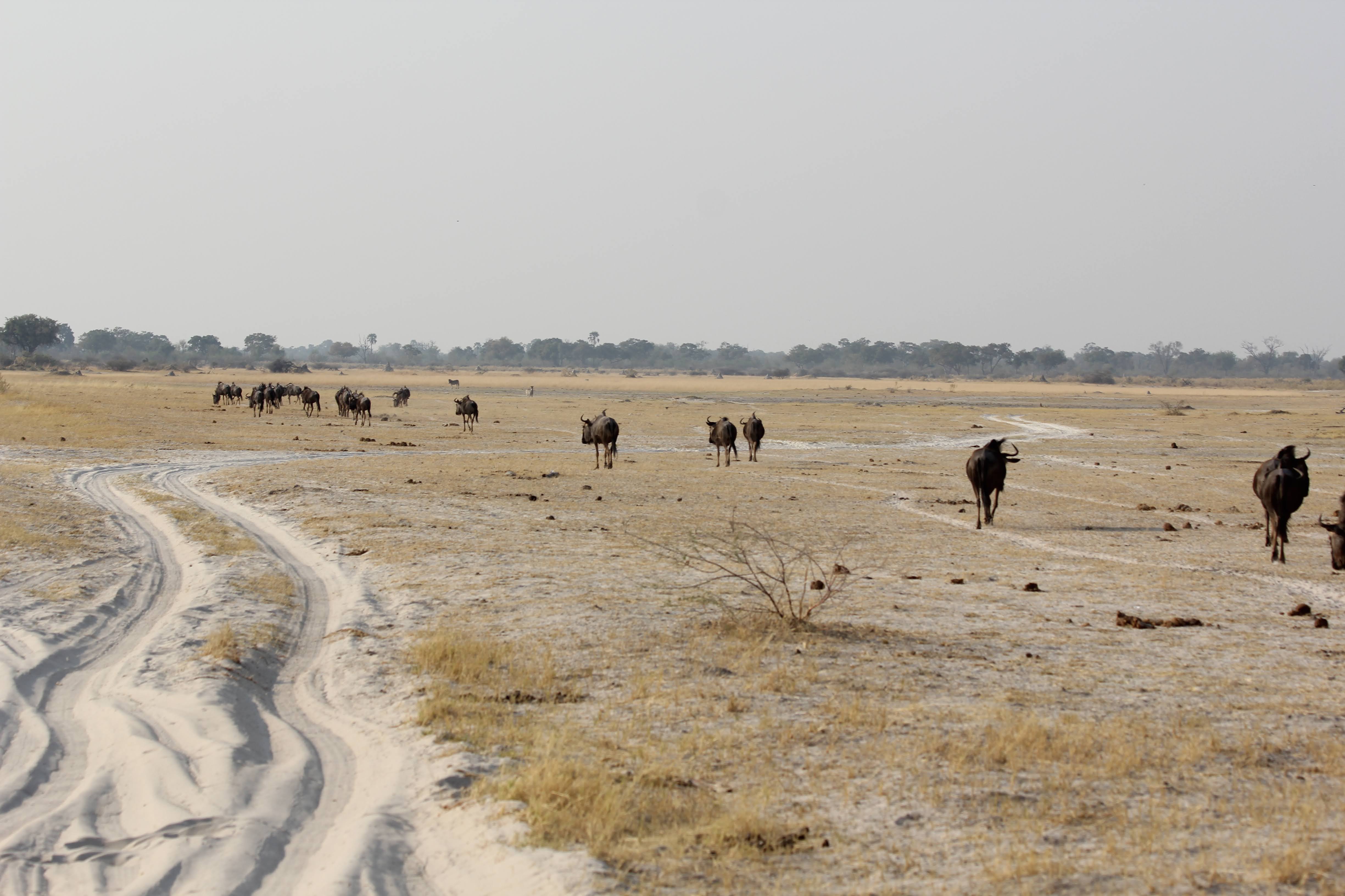We had a long drive after the Hyena. There was some wildlife to be found - Warthogs, Giraffe, Kudo, and a herd of wildebeests - the biggest we had seen yet, but probably no more than 100 total.