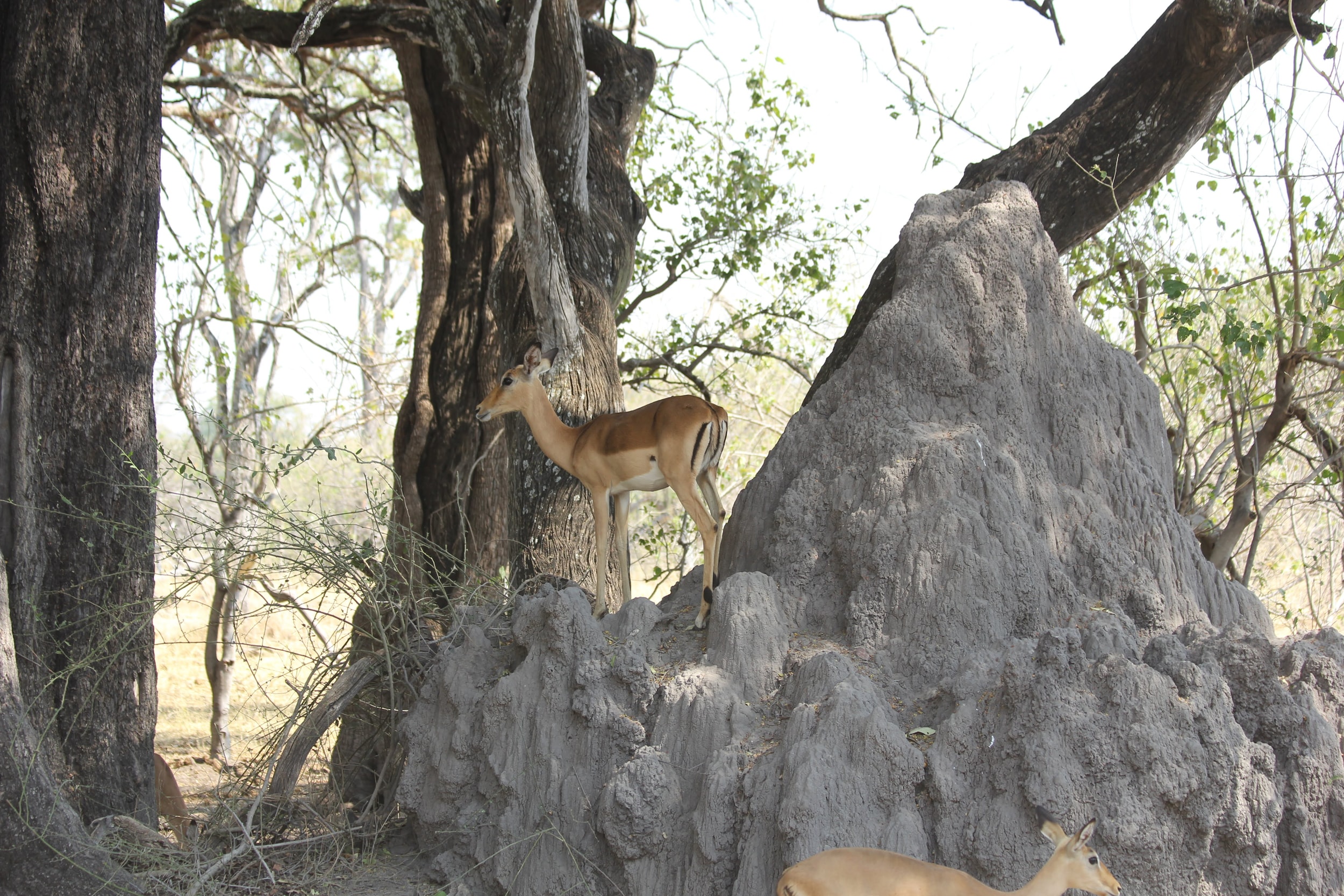 We spent the afternoon in east side of the park on a much shorter game drive. It was a good opportunity to learn a bit more about the termite mounds we have been seeing. There are over 1000 species of termites, but three types of Termites - wood eaters, harvesters, and fungus/mound building termites. The mound building termites collect up dried leaves and grass and bring them into these huge mounds that they create. The fungus grows on the leaves and they eat the simple sugars that the fungus produces. The mound is produced by combing the sand with their saliva which dries hard as a rock - they may look like piled of dirt, but they would actually do some real damage to a jeep if you ran into one. They are also water tight - for when it floods - and they can be vacated when a queen dies and then reoccupied by a different queen later on, so mounds can be hundreds or thousands of years old. We learned a lot more about these little guys later in the trip, so… stay tuned.