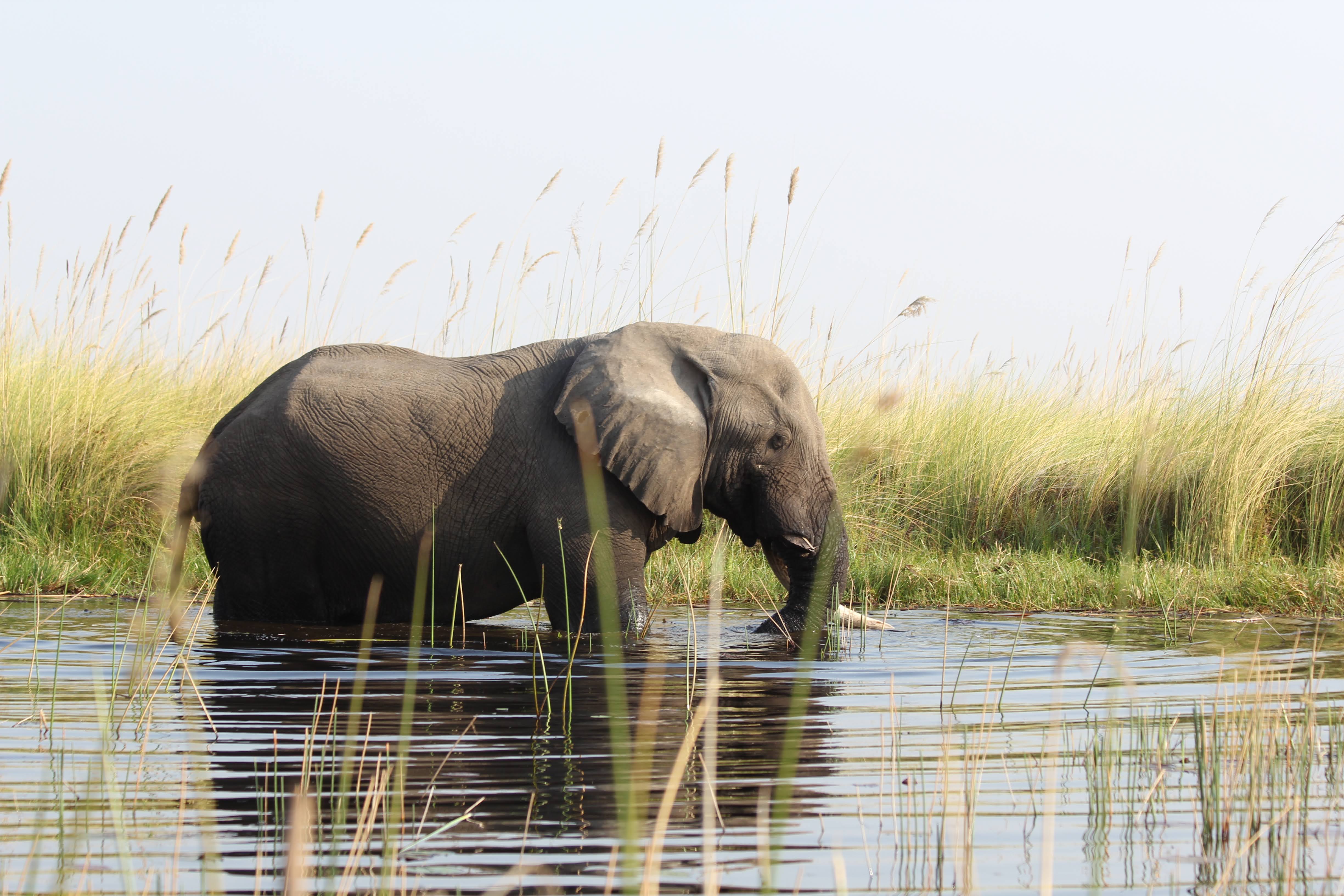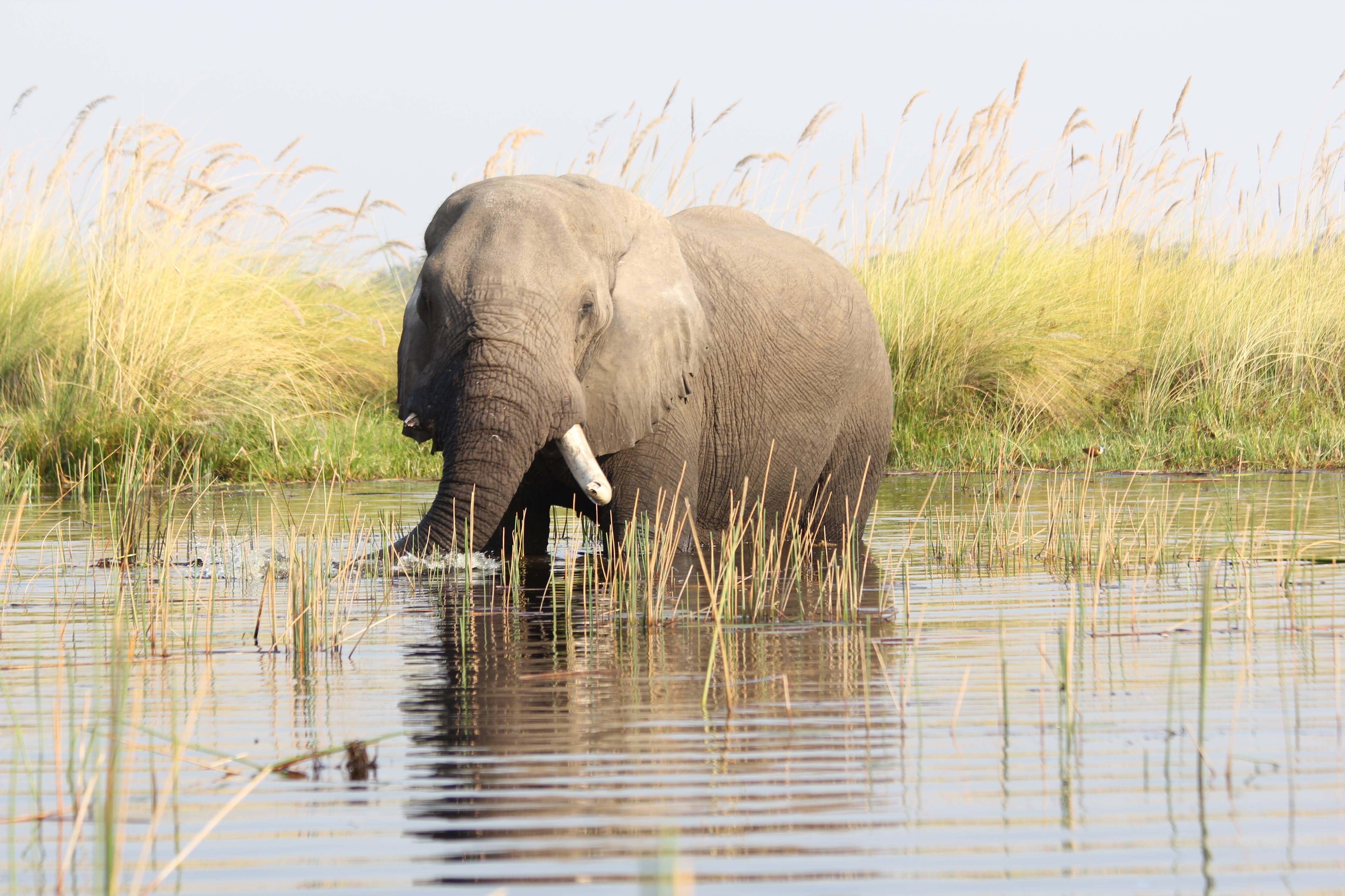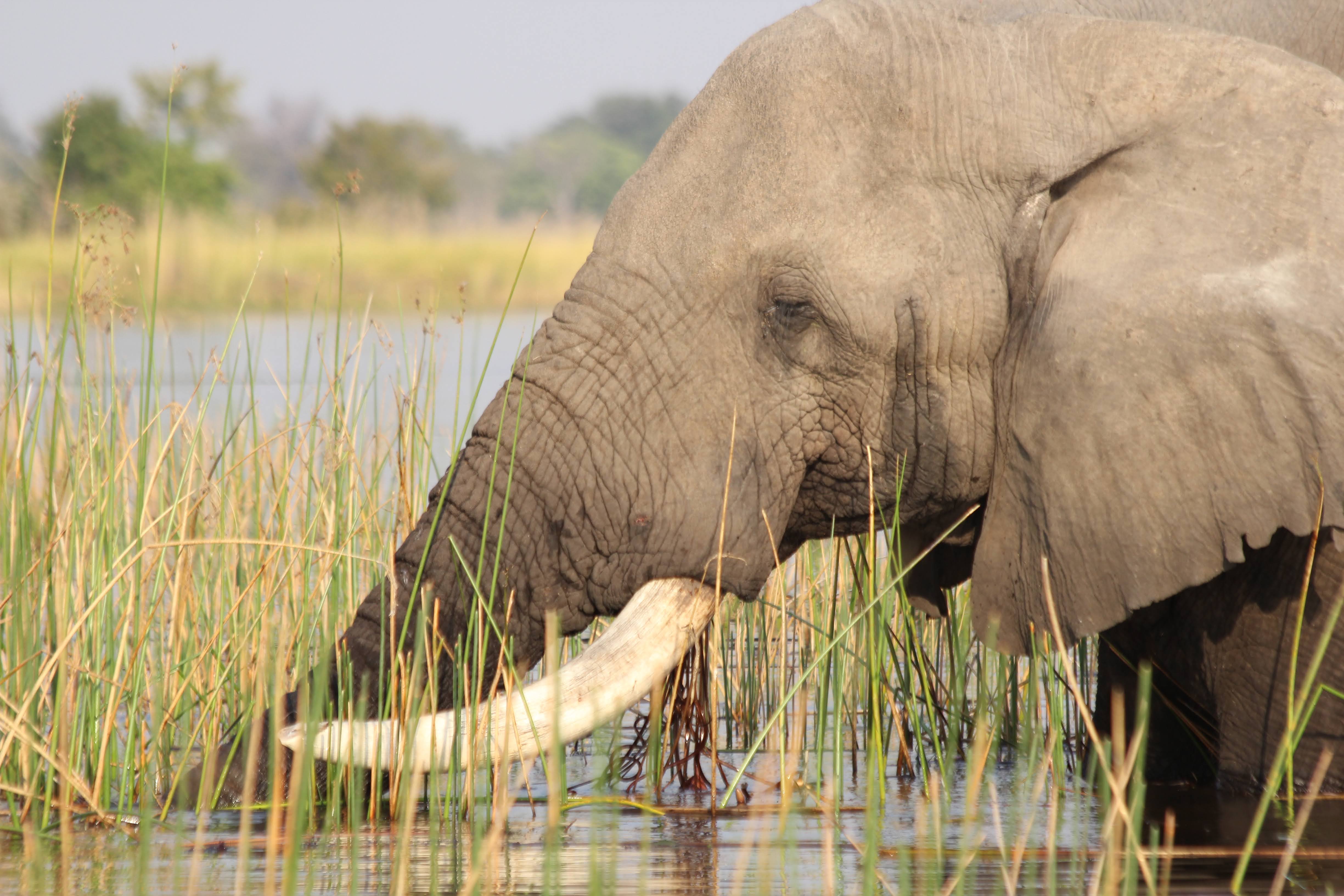 The deeper water in the big lagoons is frequented by the older elephants - an elephant retirement home of sorts. Elephants only get 6 sets of molars in their life, each set being used until it gets worn down by chewing. When they get older and they are down to their last set, older elephants come here to eat. The soft grasses allow them to do less damage to their teeth, but they don’t have the same nutrients that they get from the trees so they only come here as a last resort. Once the last set of molars is worn down, they can no longer eat - so making that last set last as long as possible is a priority for them.