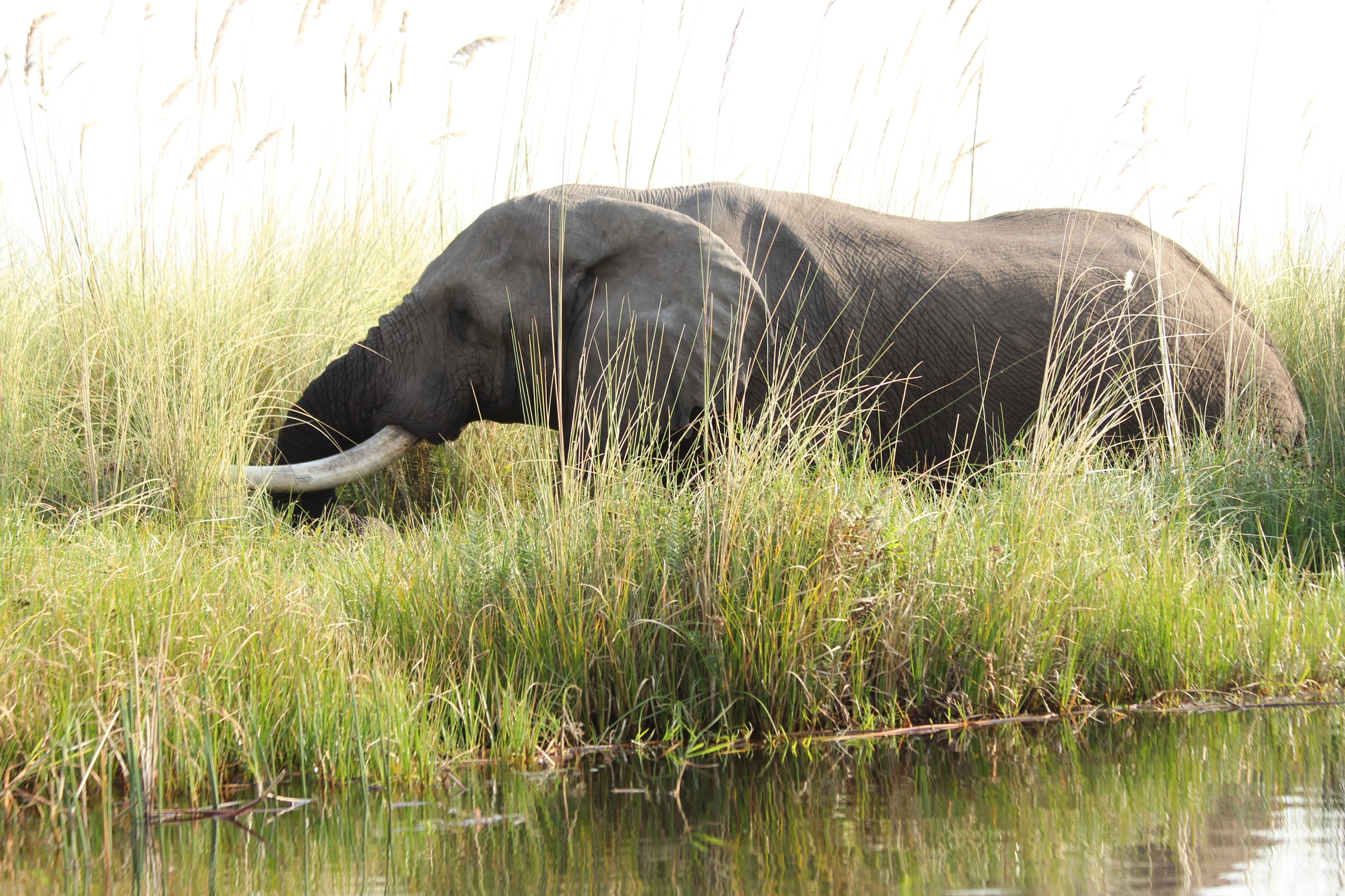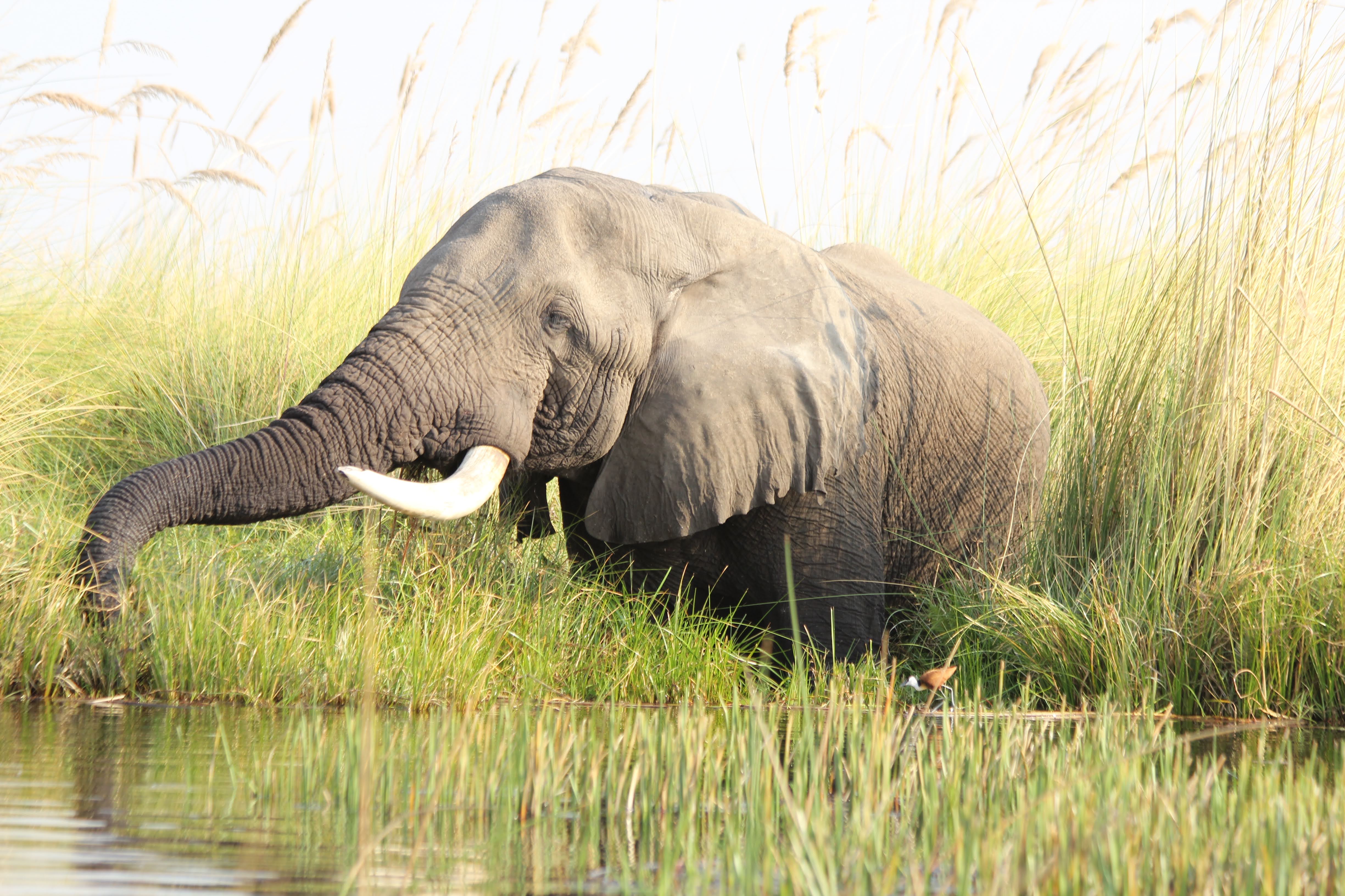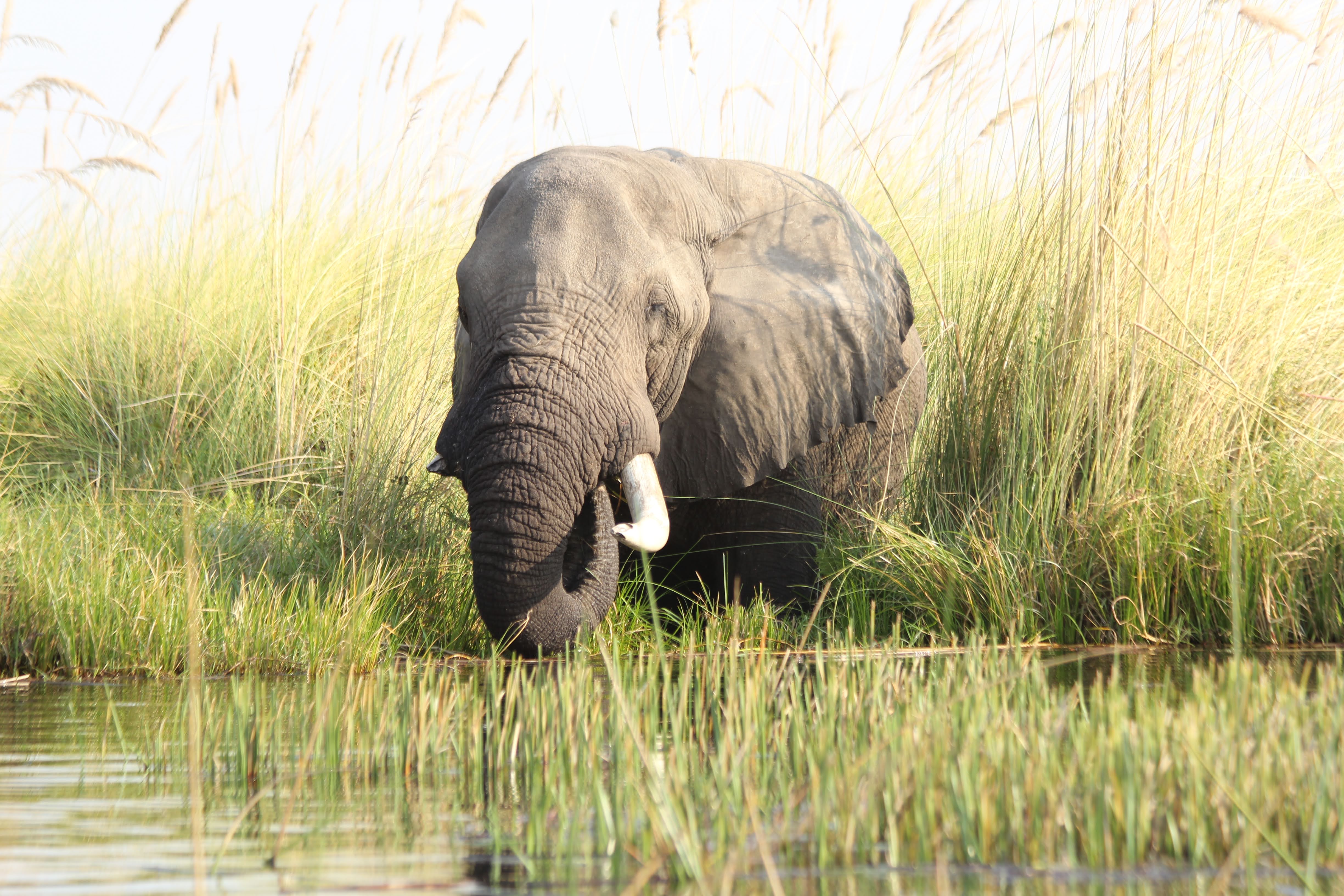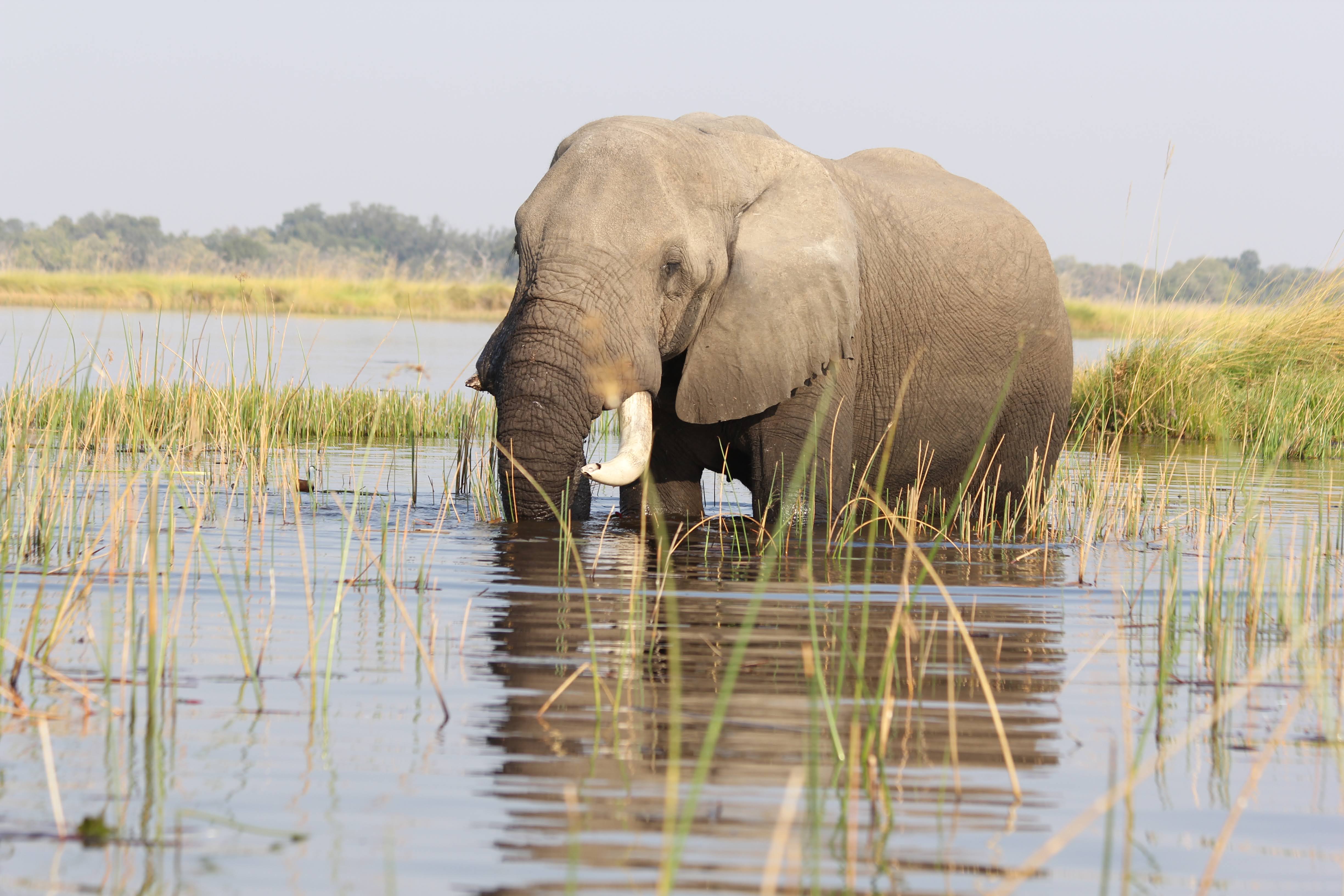The deeper water in the big lagoons is frequented by the older elephants - an elephant retirement home of sorts. Elephants only get 6 sets of molars in their life, each set being used until it gets worn down by chewing. When they get older and they are down to their last set, older elephants come here to eat. The soft grasses allow them to do less damage to their teeth, but they don’t have the same nutrients that they get from the trees so they only come here as a last resort. Once the last set of molars is worn down, they can no longer eat - so making that last set last as long as possible is a priority for them.