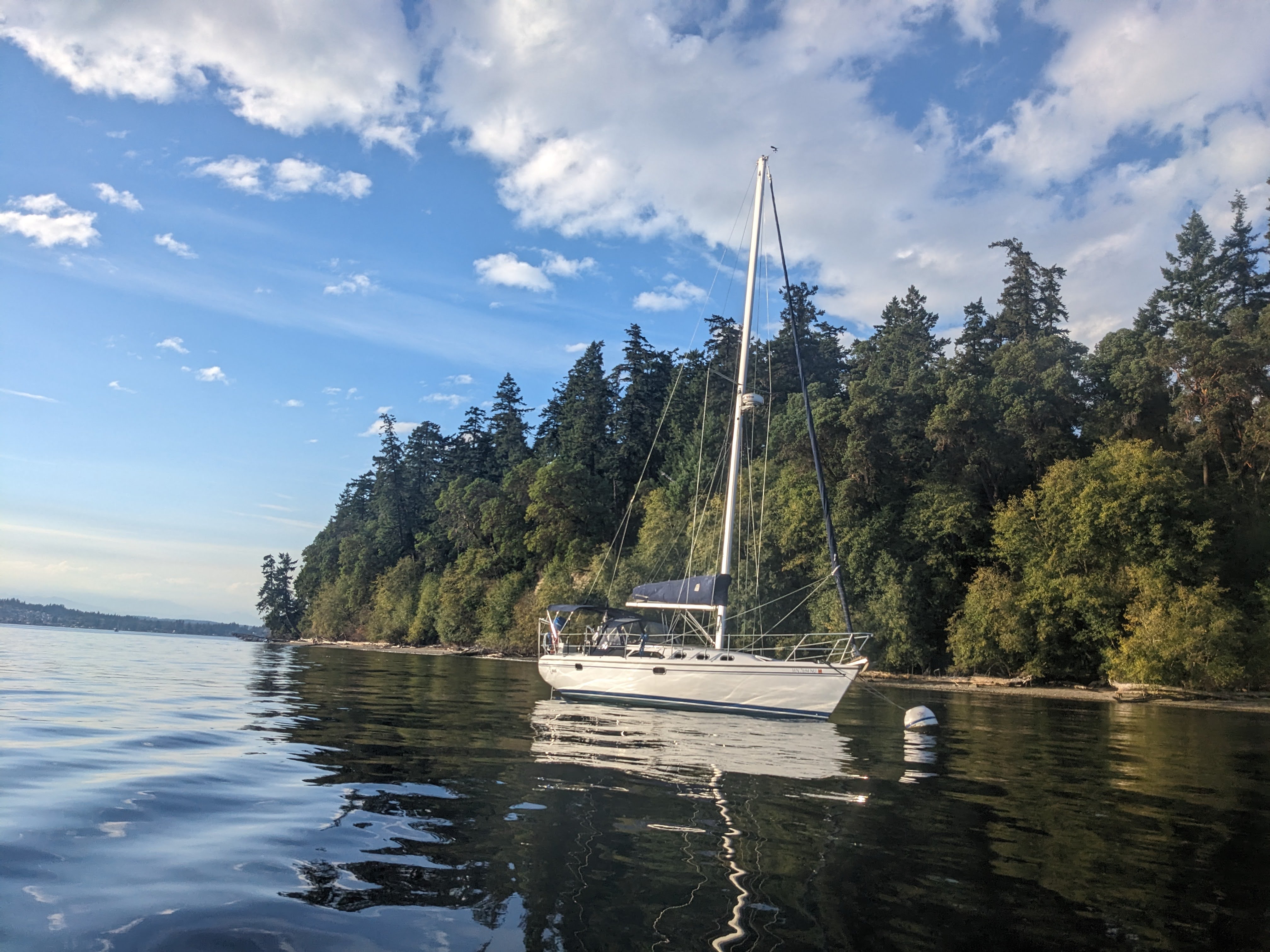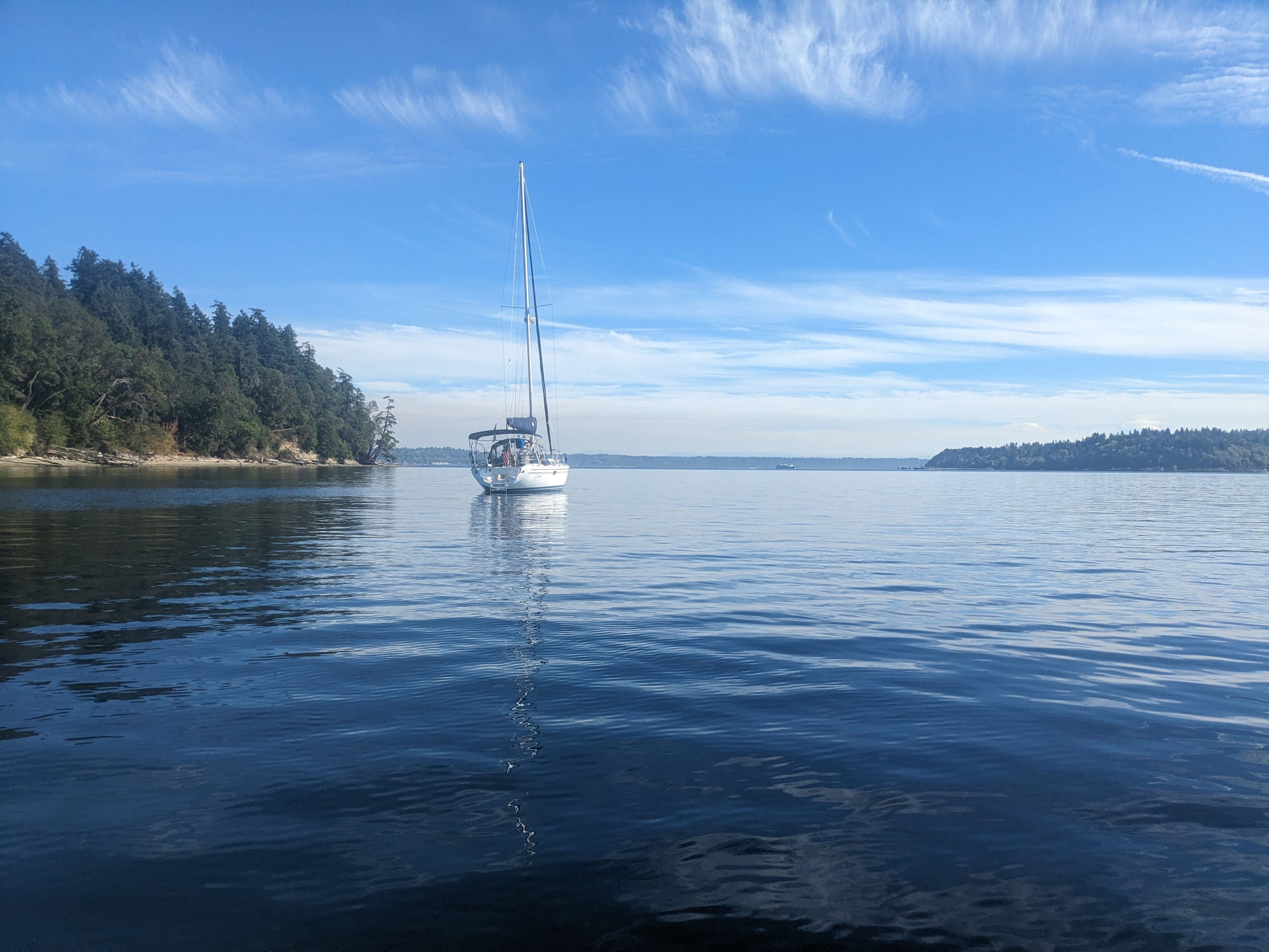 It’s about an hour and a half sail/motor from Eagle harbor to Blake island. We departed at around noon and, after a bit of puttering around to find the mooring we wanted, we were all set by about 2p. It had been a while since we have done a mooring ball and, with Sara at the helm, there was a misunderstanding on what reverse vs neutral meant and the end result was a dropped boat hook - thankfully after I got a line on the moorning ball.