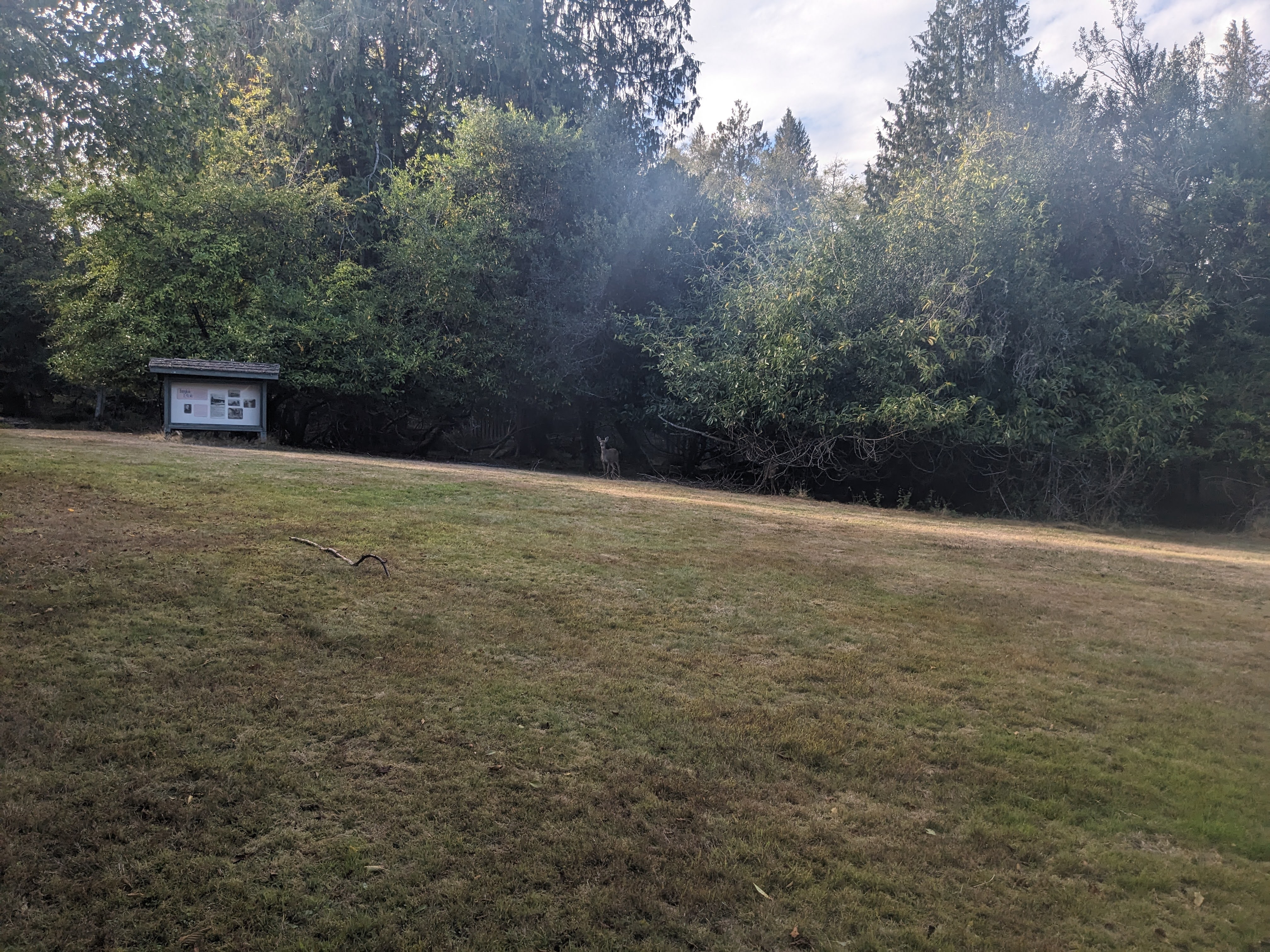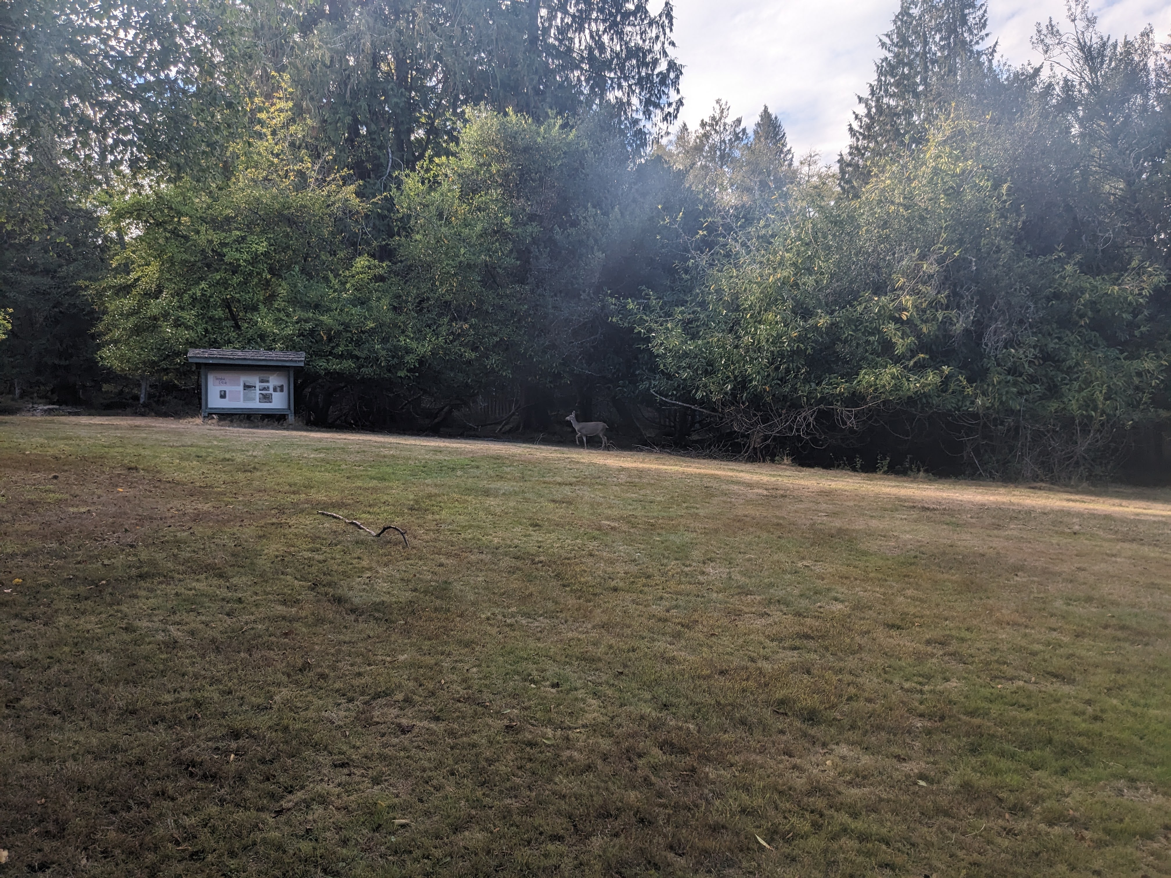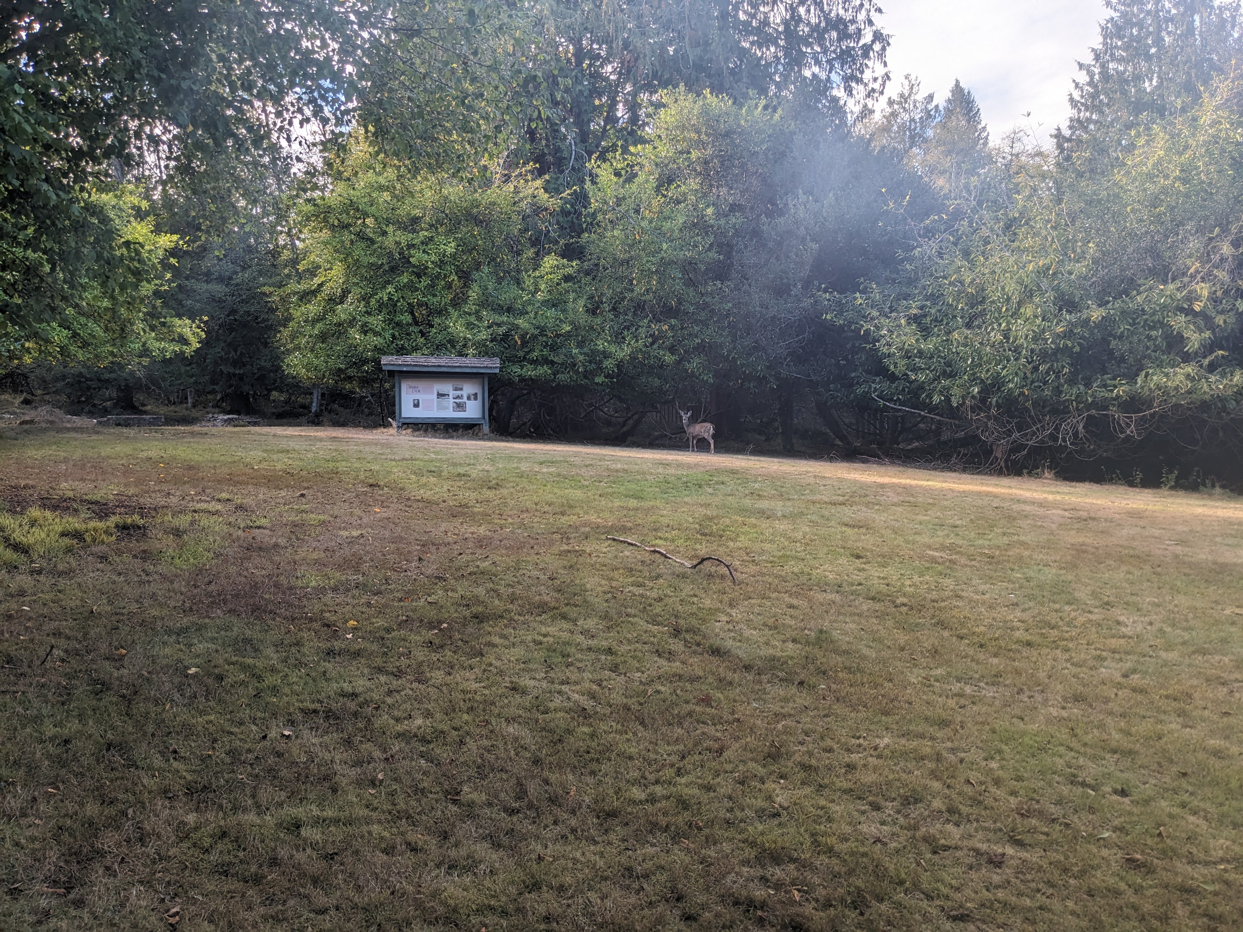 We headed back to the marina again, but taking a slightly different route - a loop route that took us over the middle of the island on the way back. When we were almost to the marina, we saw a little family of deer grazing. I think they probably come down to the marina (and nearby campsite) to scavange for any scraps that us humans leave behind.